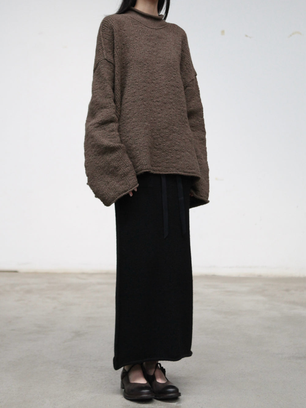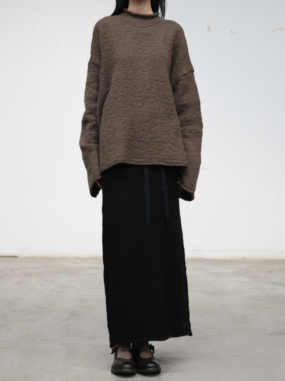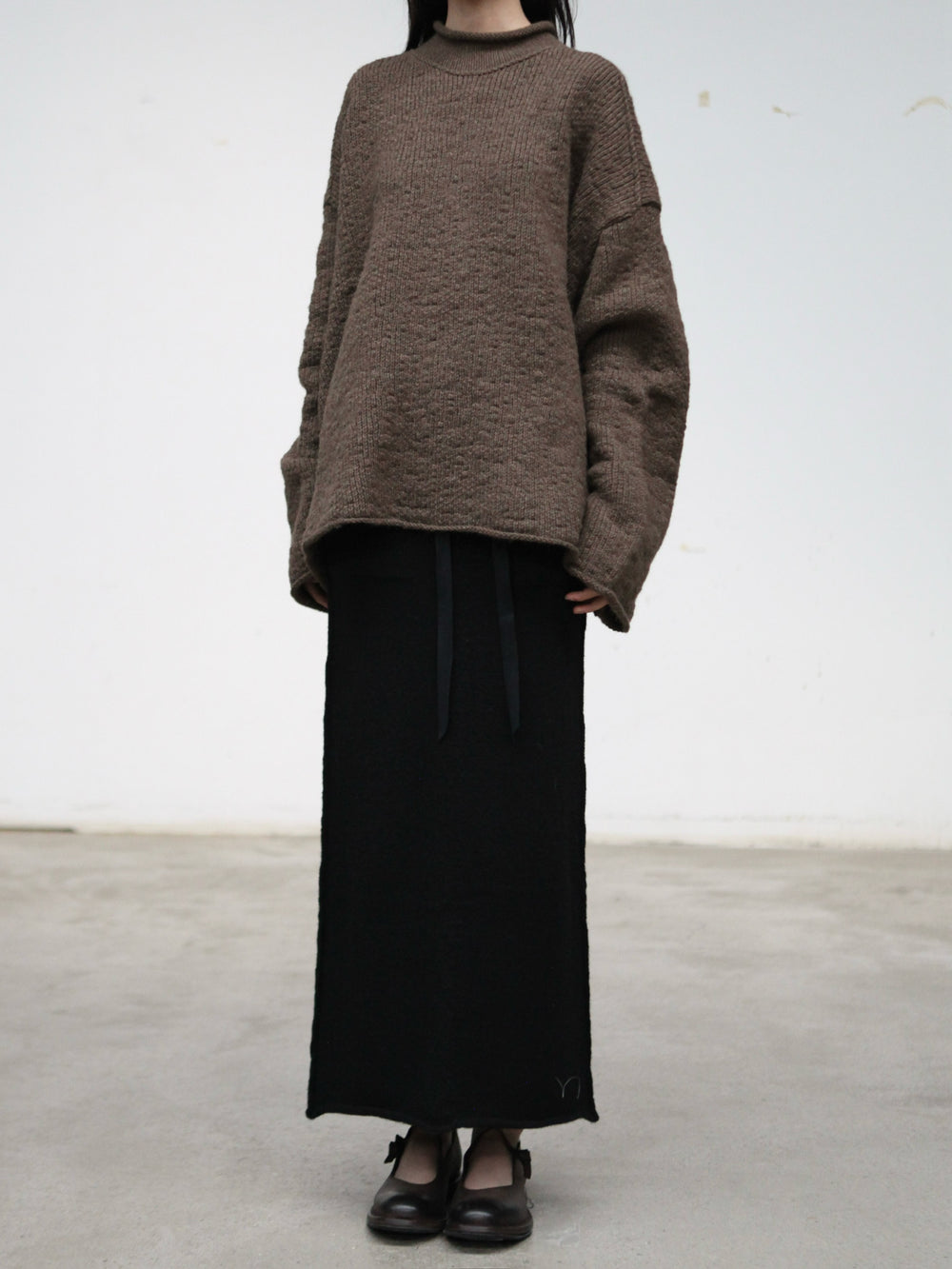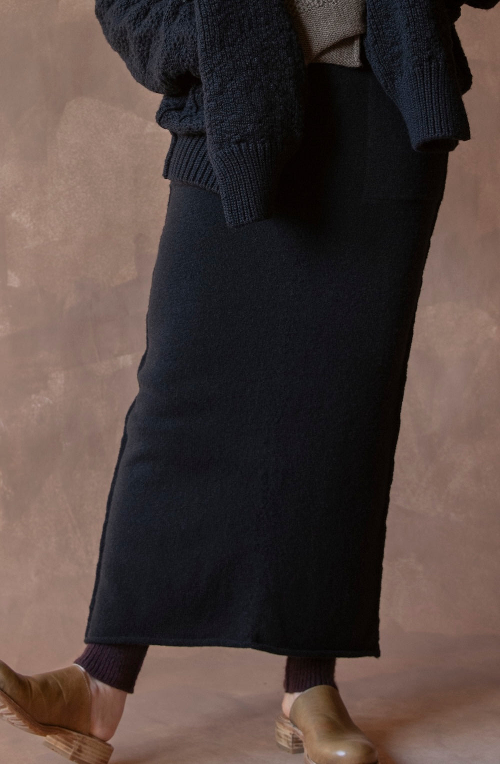 Daniel Andresen Fall/Winter 2025 Long Fitted Yak Wool Skirt with Pockets, Hand-knitted DA-tacoma-black