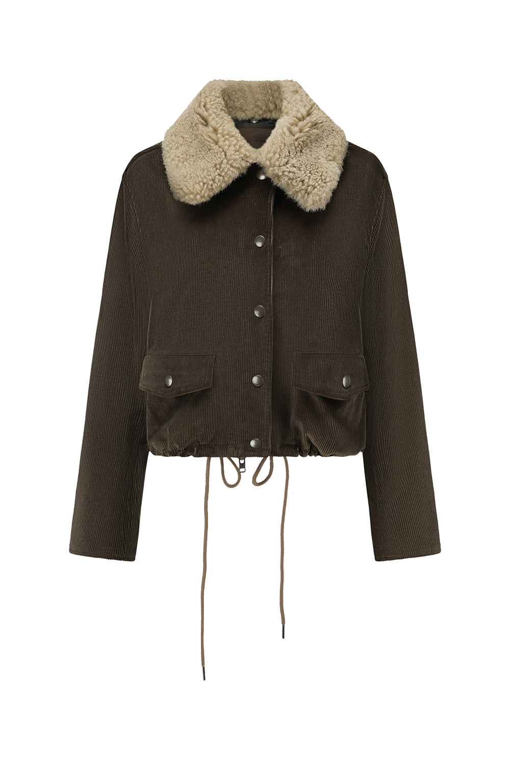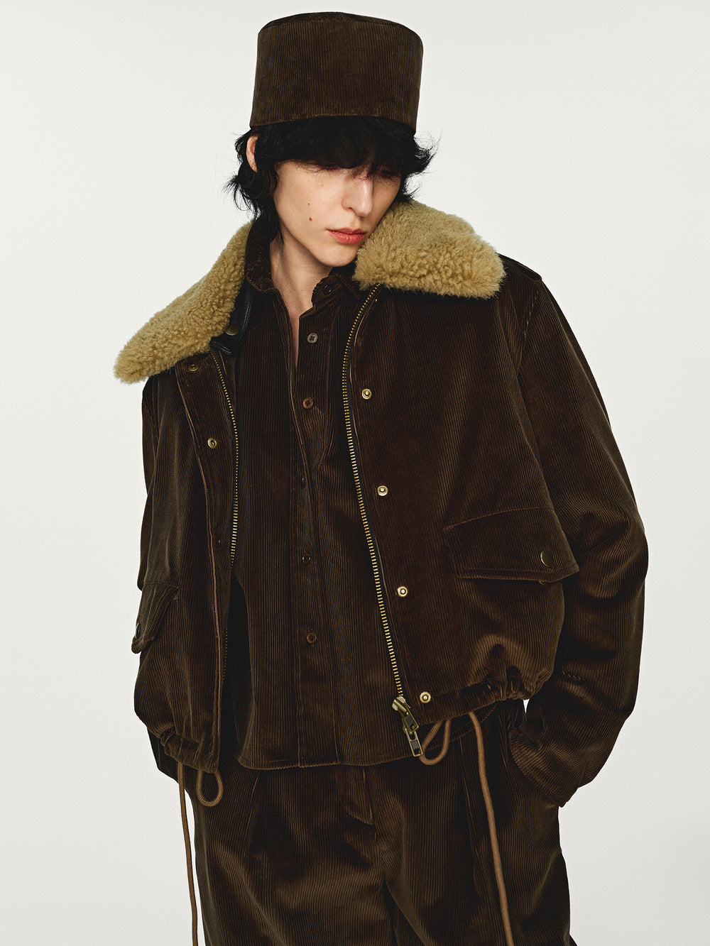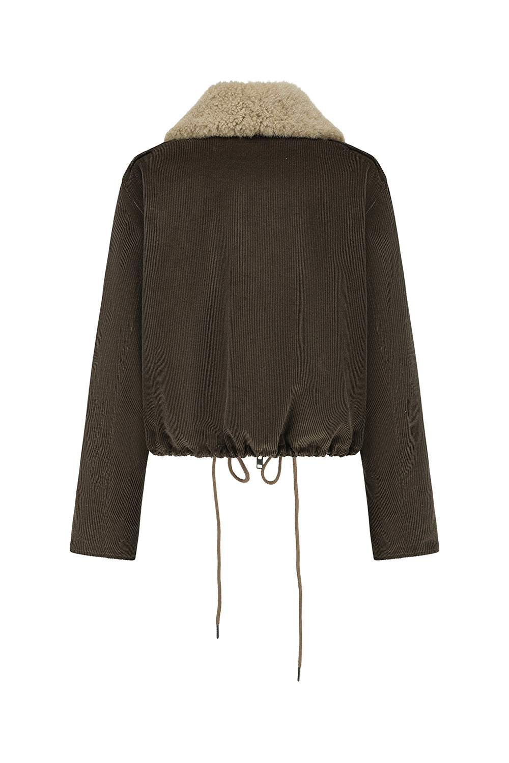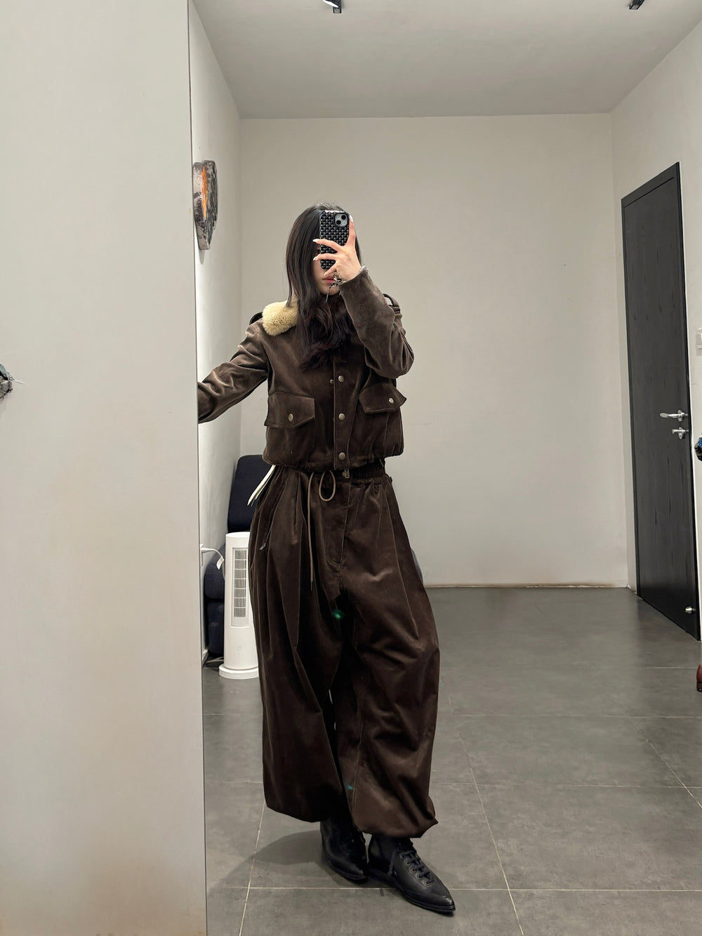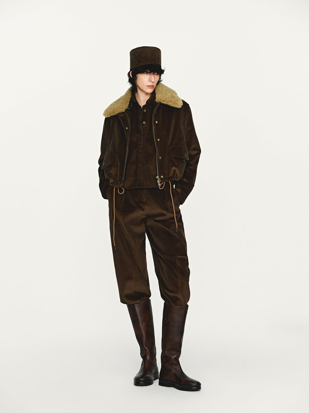 INTO THE EAST 2025 Autumn/Winter Deep Moss Green Fur Collar Two-Piece Short Jacket Set ITE-E1DGAW036GR20JK-LV Green