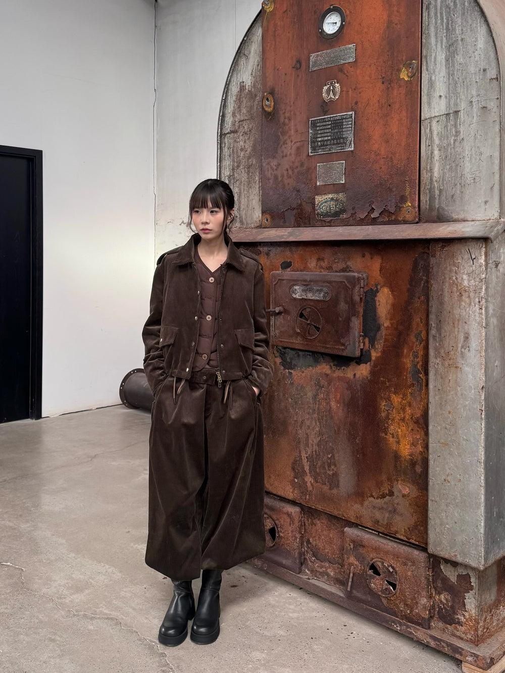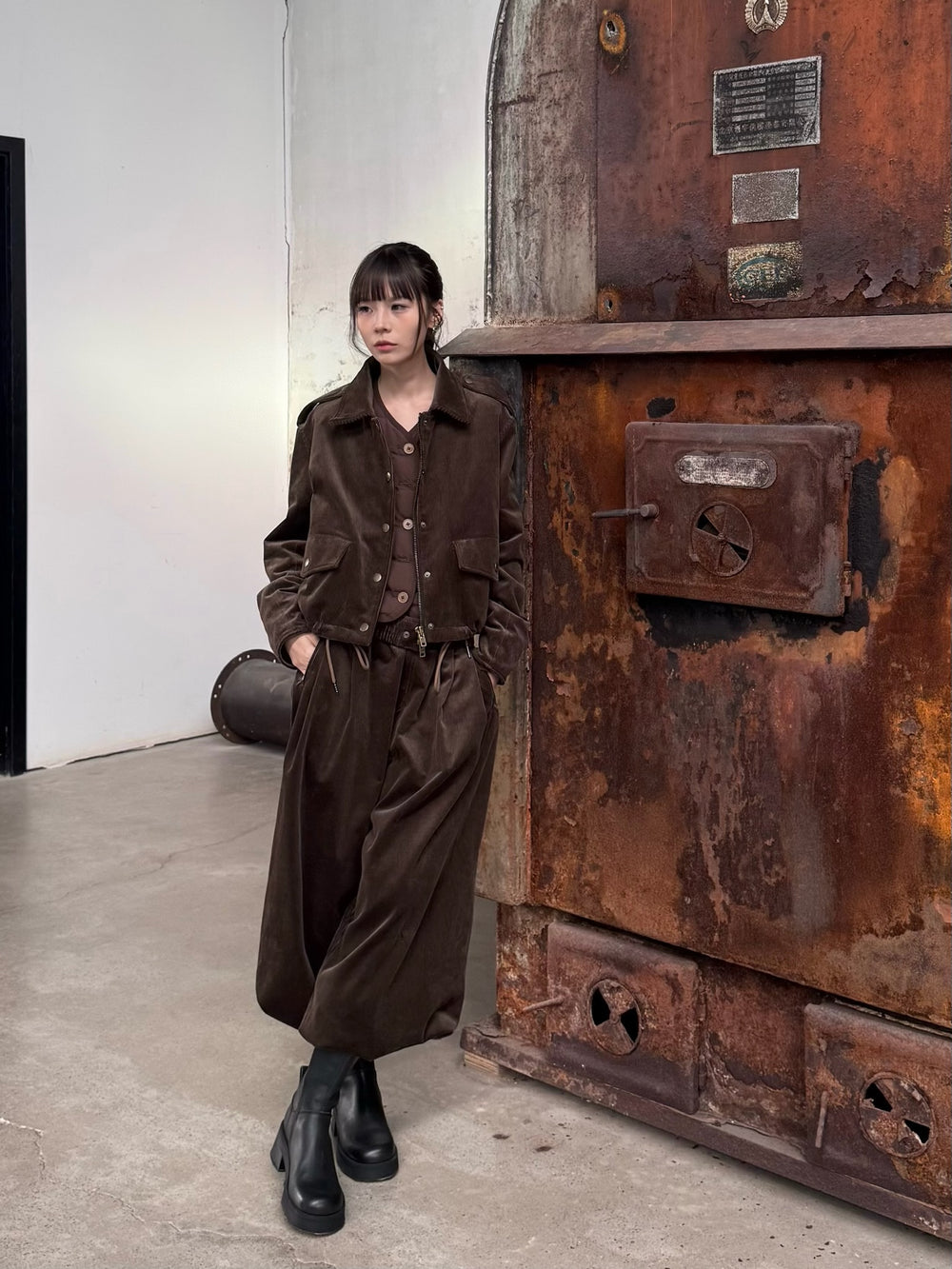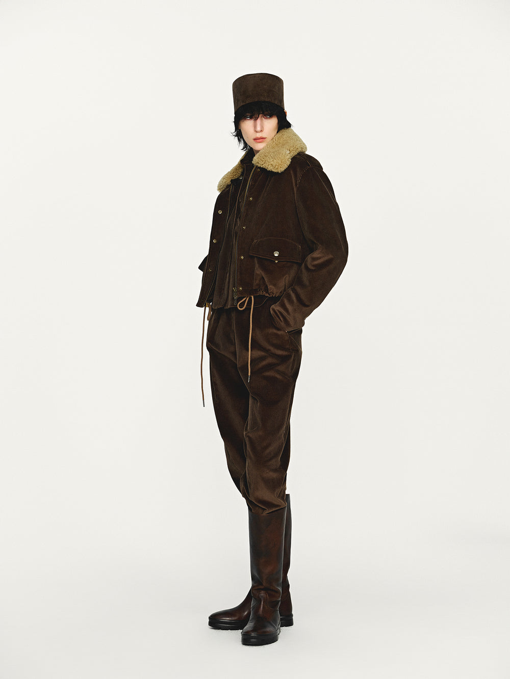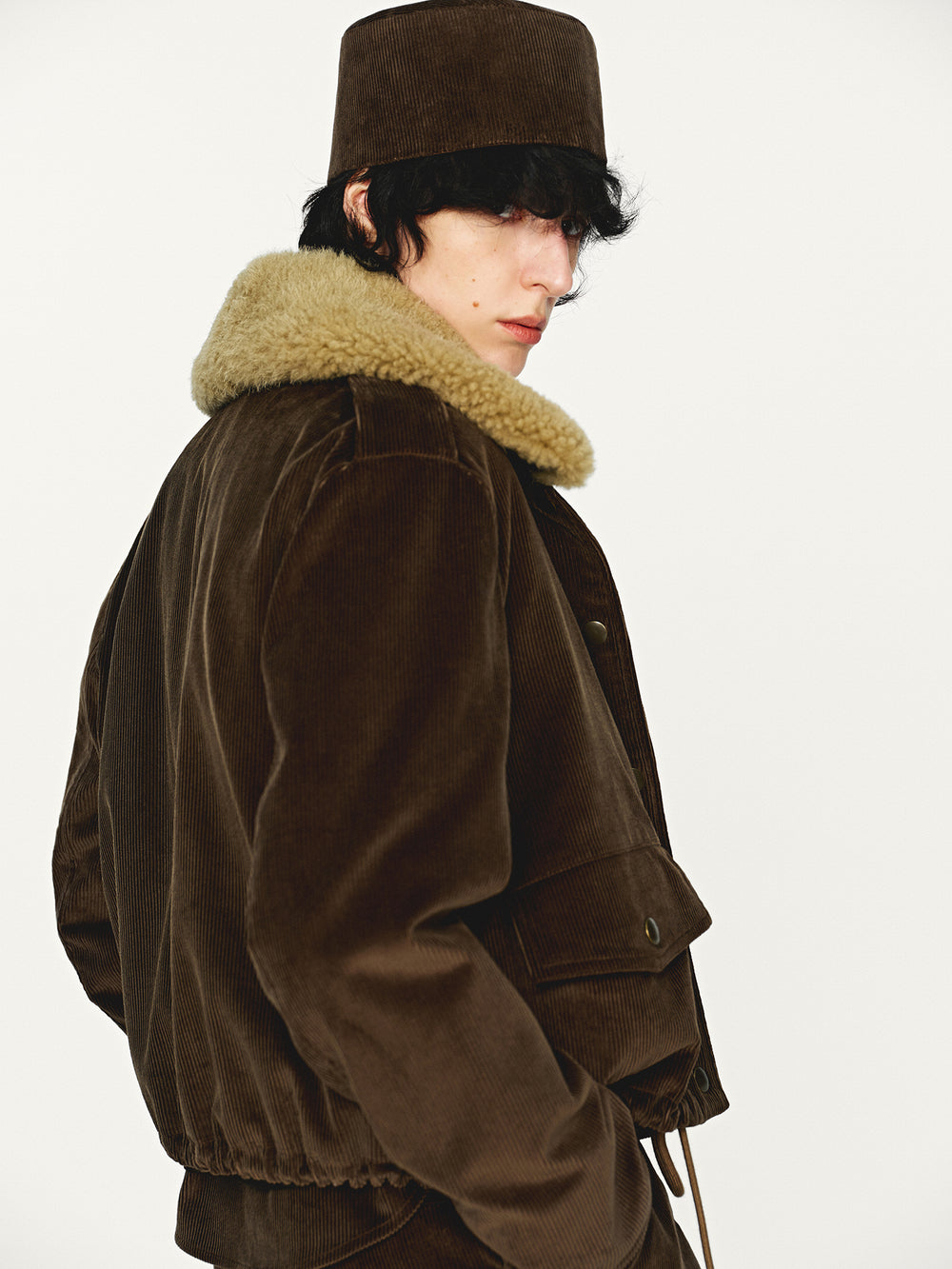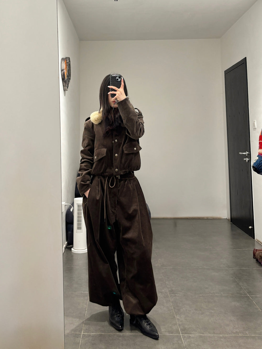 INTO THE EAST 2025 Autumn/Winter Deep Moss Green Fur Collar Two-Piece Short Jacket Set ITE-E1DGAW036GR20JK-LV Green