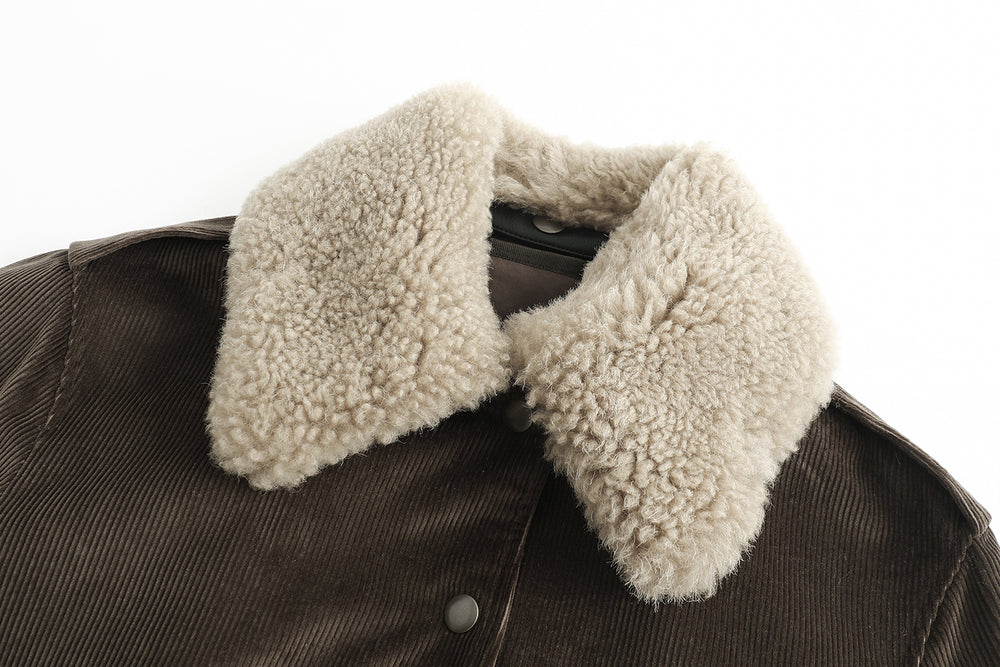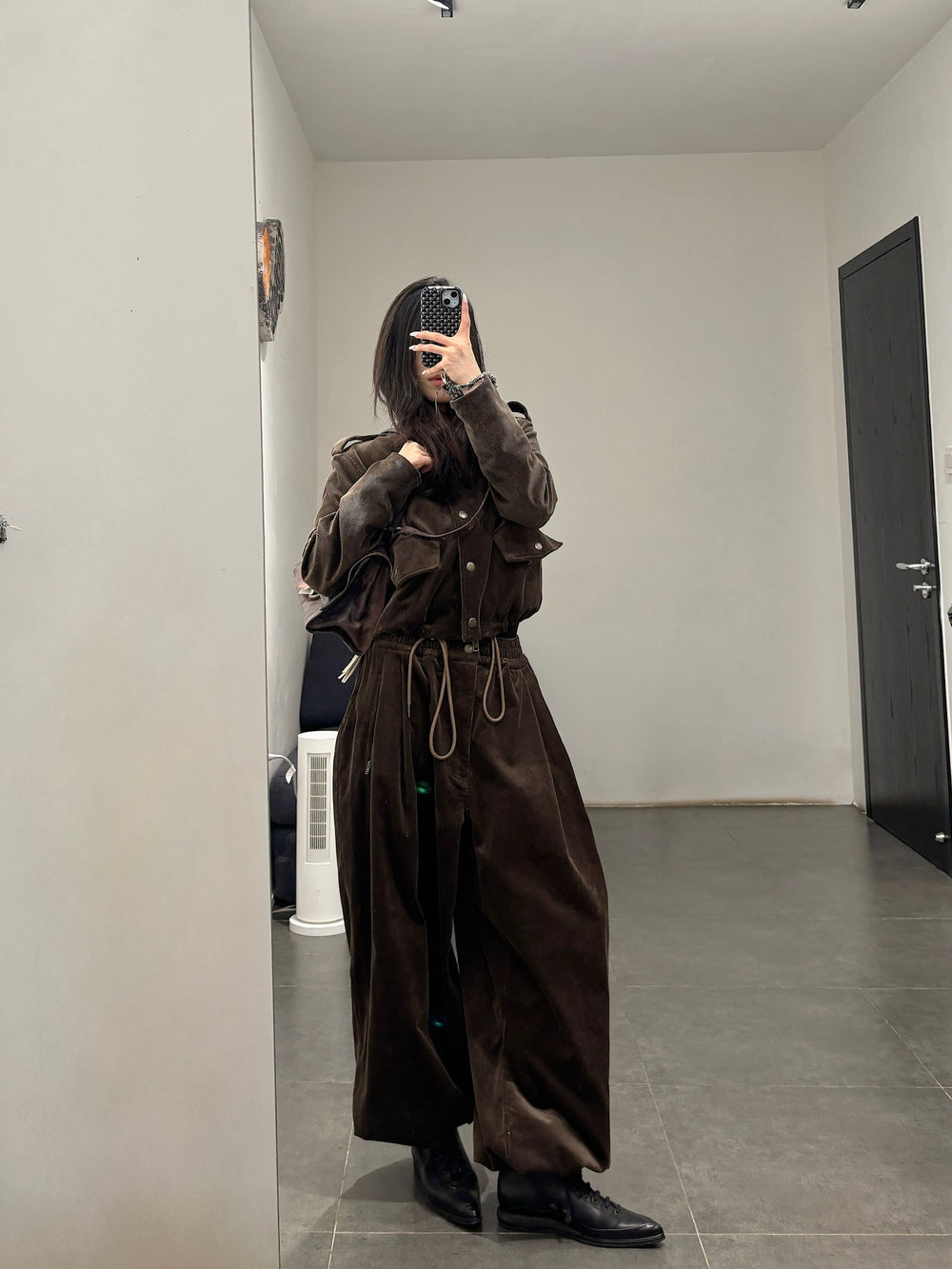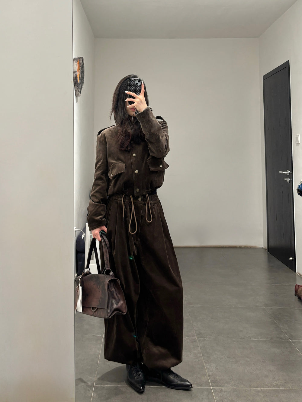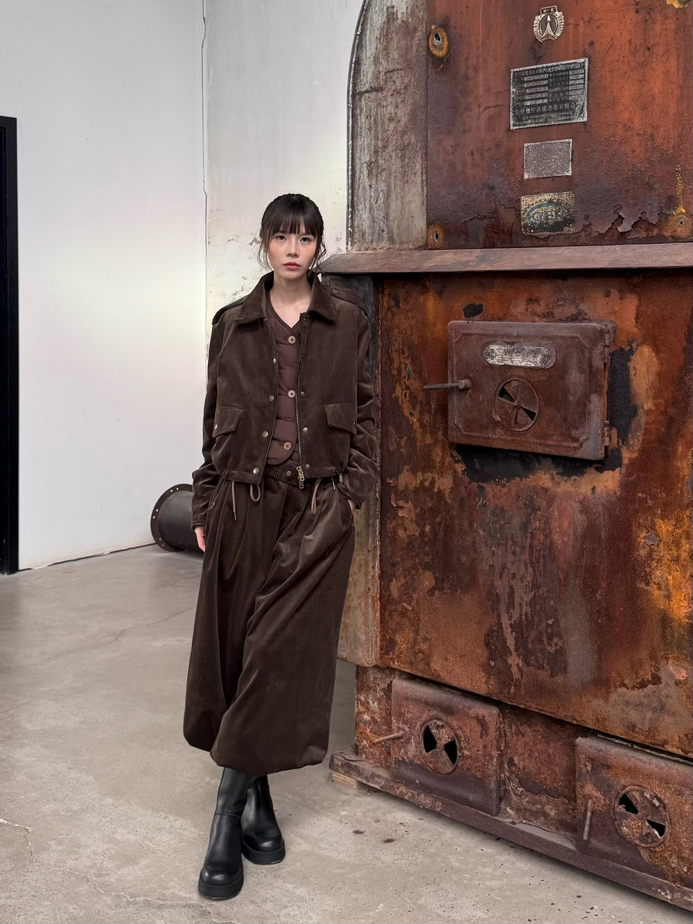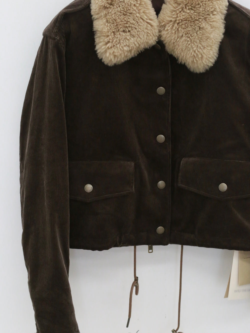 INTO THE EAST 2025 Autumn/Winter Deep Moss Green Fur Collar Two-Piece Short Jacket Set ITE-E1DGAW036GR20JK-LV Green