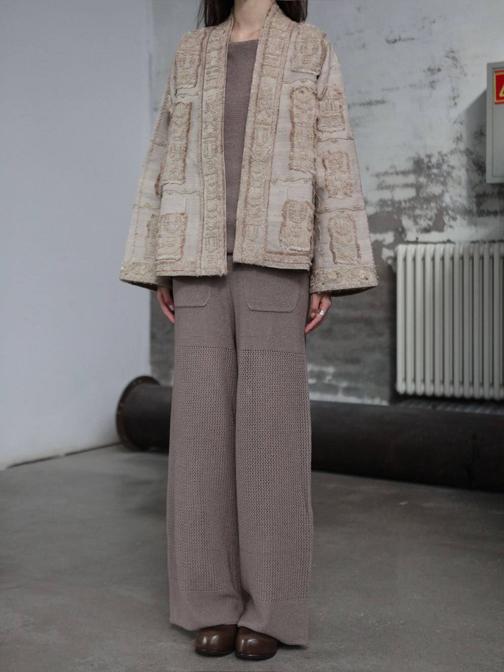 INTO THE EAST 25 Autumn/Winter Khaki/Black Knitted Hollow Straight Pants ITE-E1DGSS020GY20PT-KQH Khaki (E1DGSS027CM20PT)