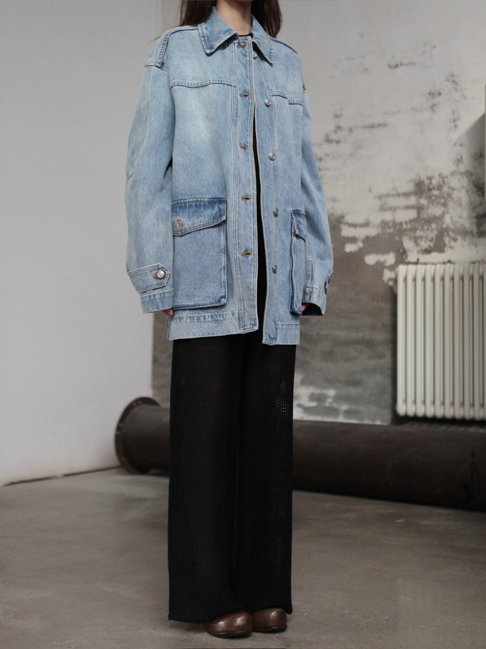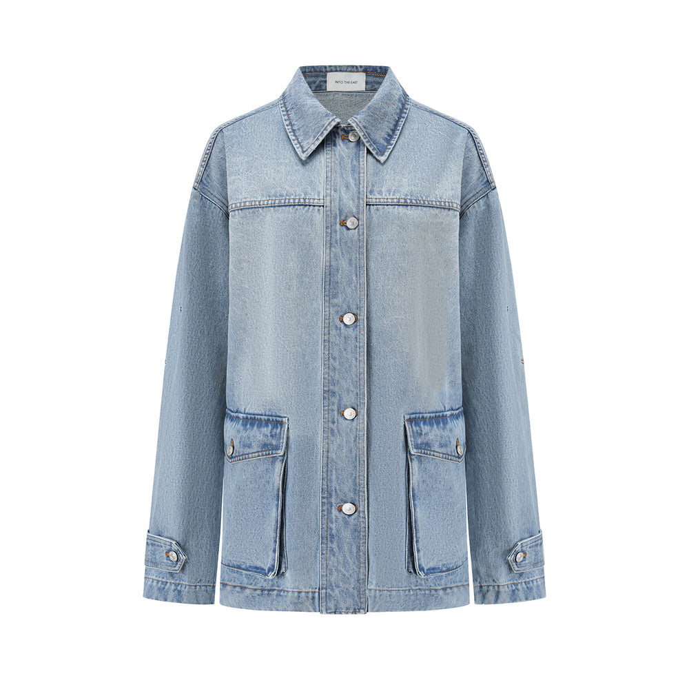 INTO THE EAST 25 Autumn/Winter Mid-Length Large Pocket Denim Jacket ITE-E1DGSS009BU20JK-LAN Blue