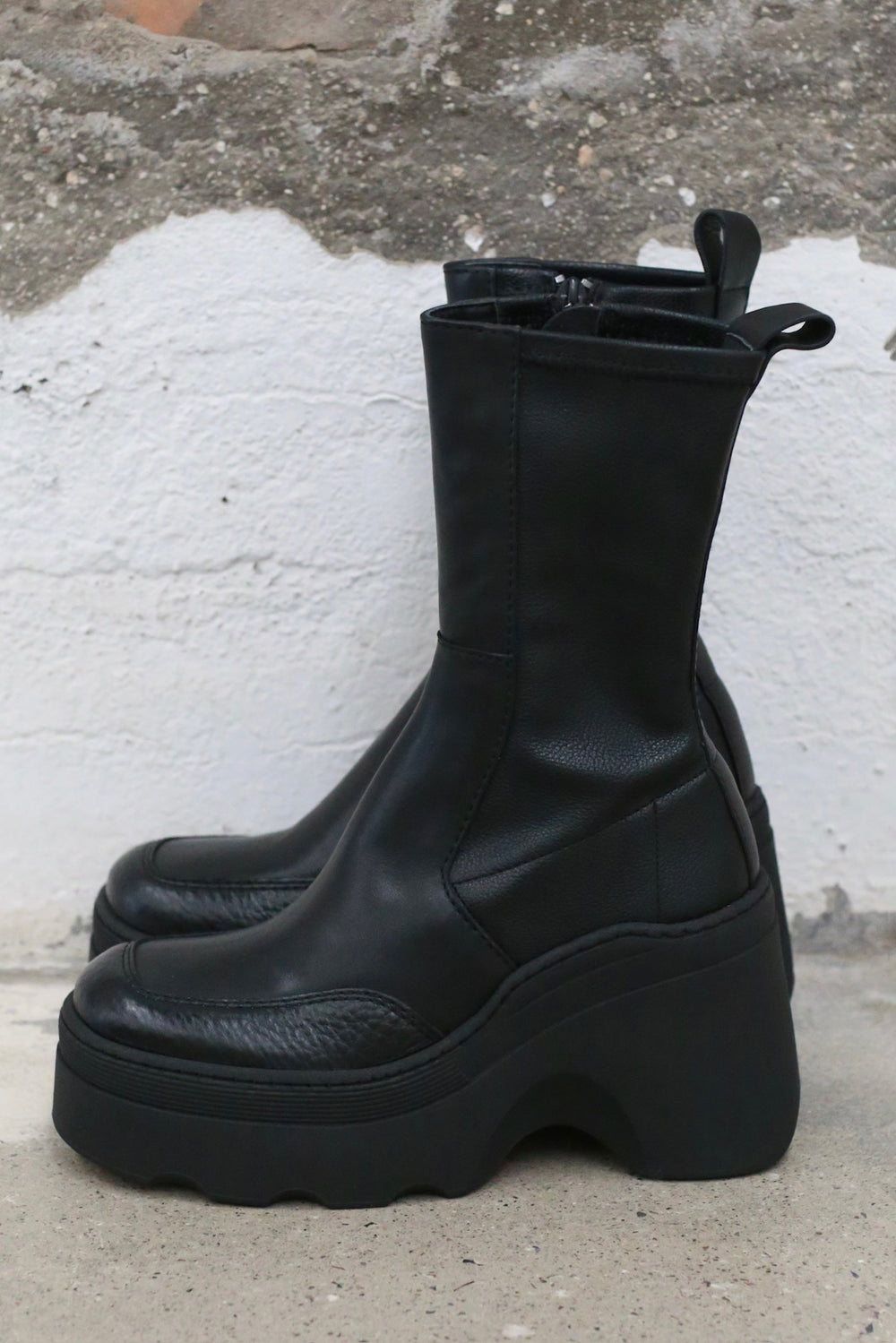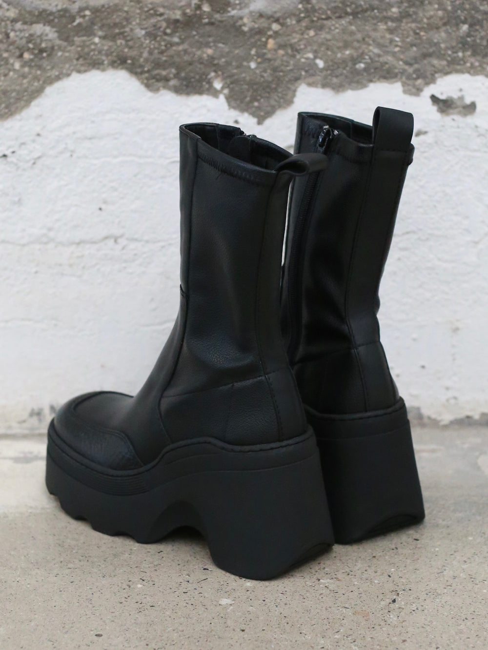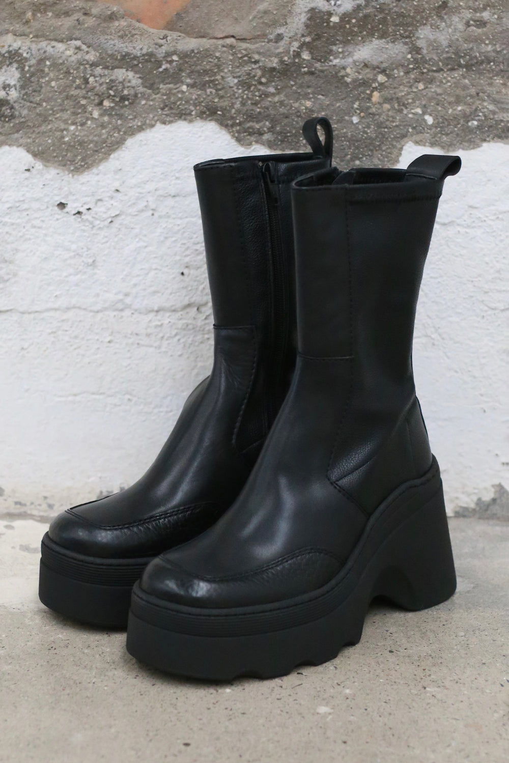 Miista Fall/Winter 2025 Black Wedge Mid-Calf Boots, Spain, MST-E8_4053-HEI (Black)