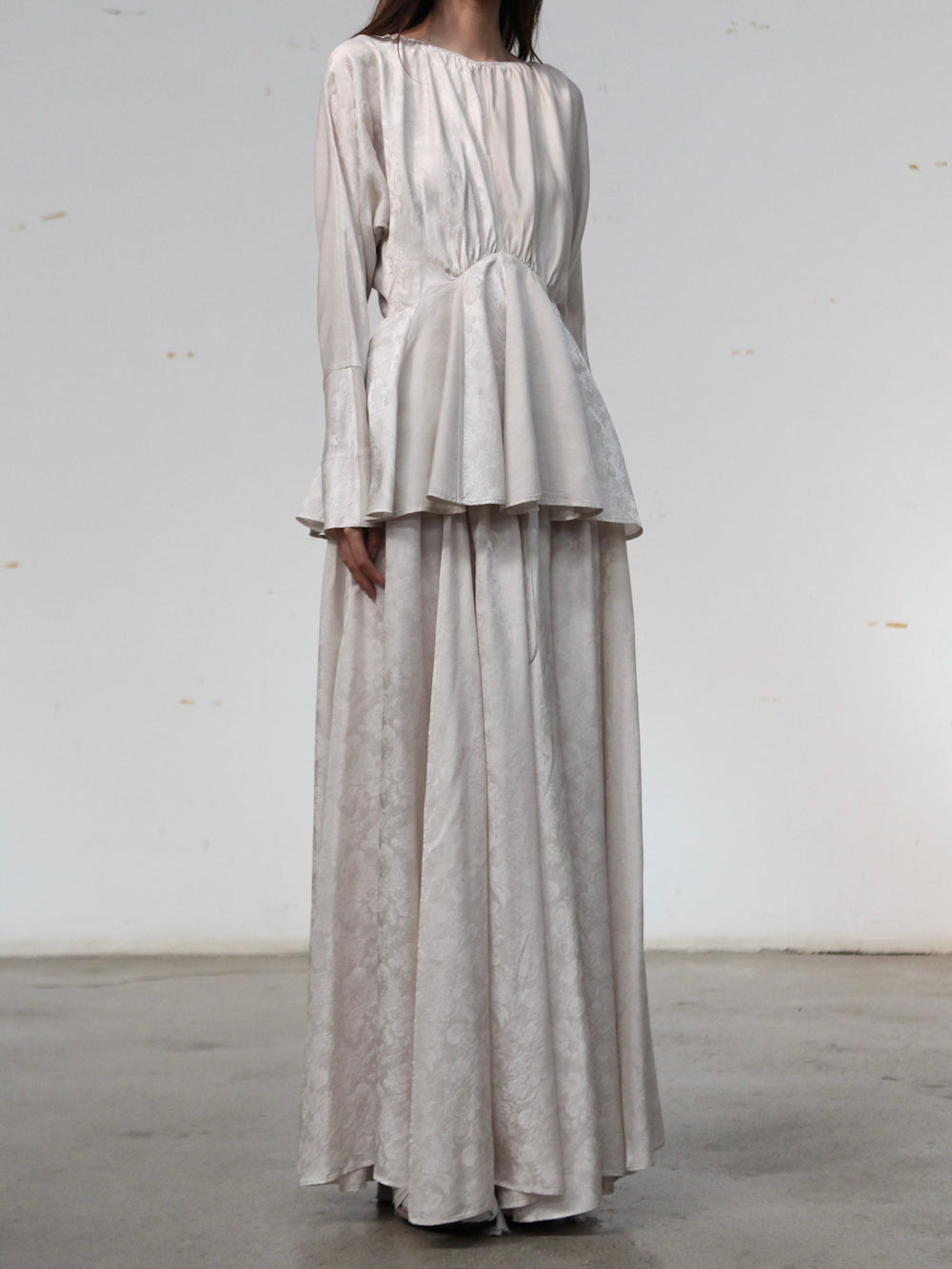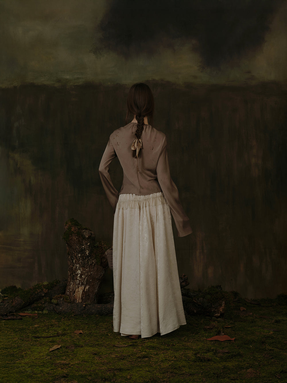 Mutedance 25 autumn and winter double layer drawstring waist skirt vegetable dyed high degree of handmade MD-MD25FW89-beige