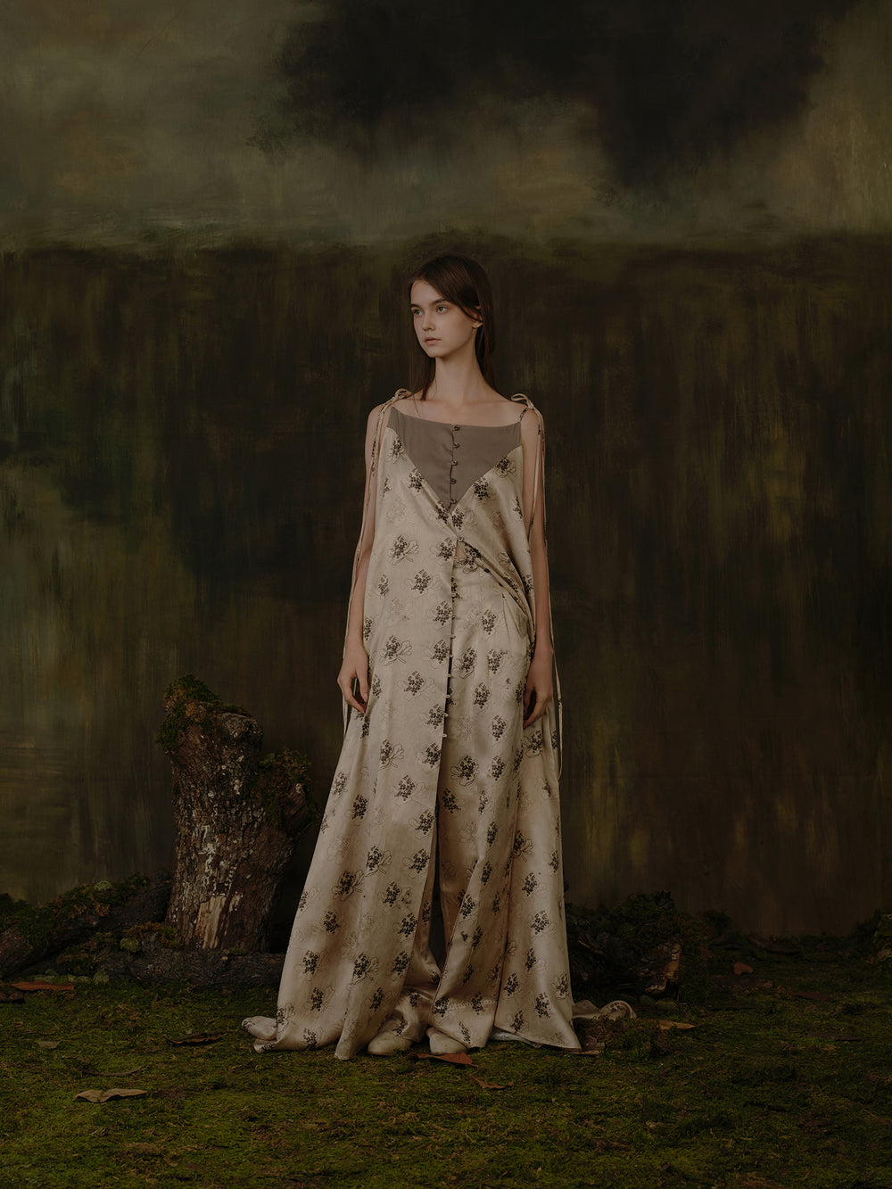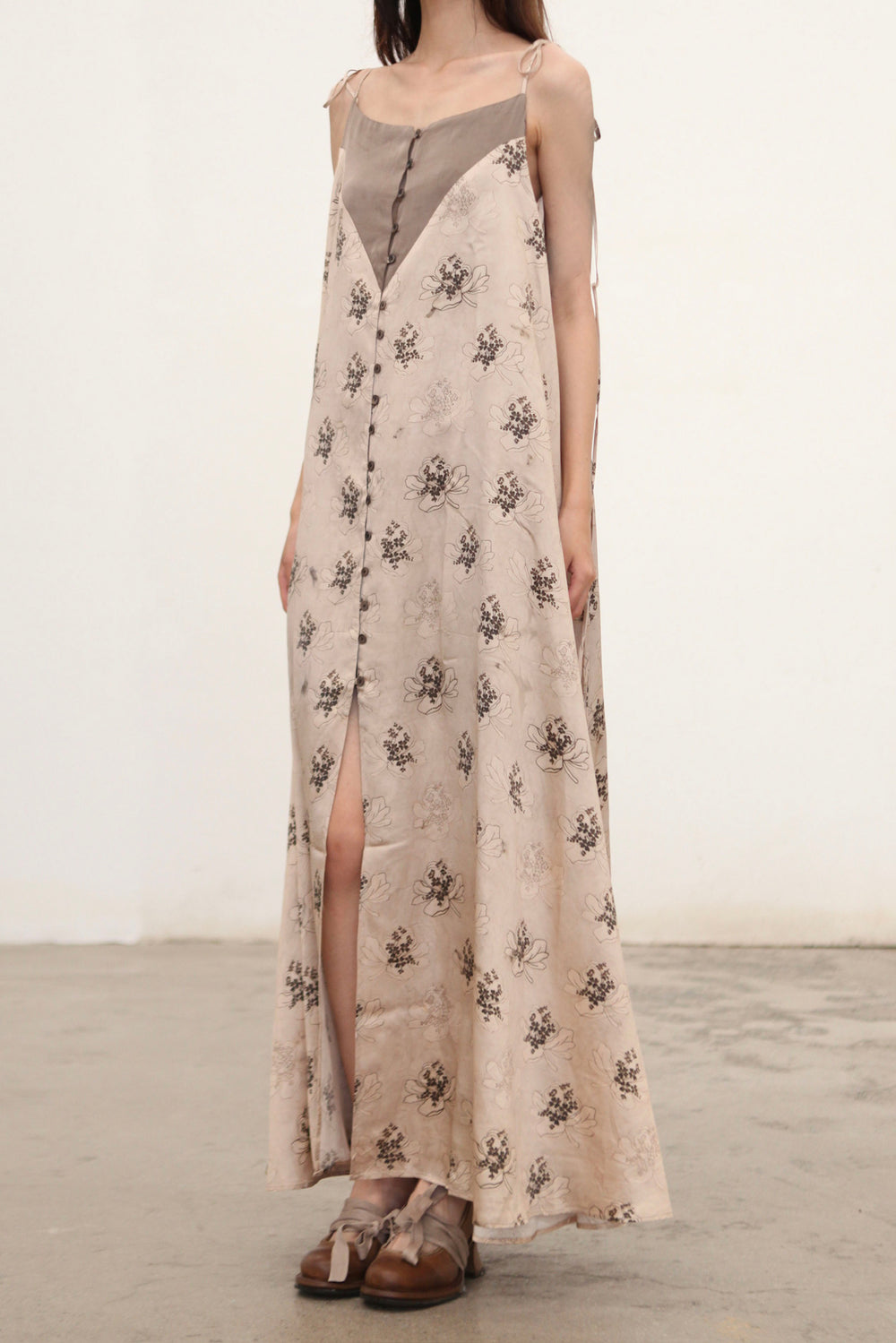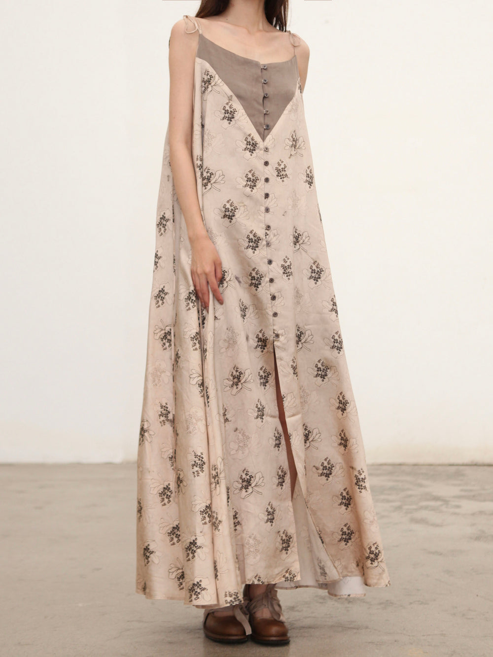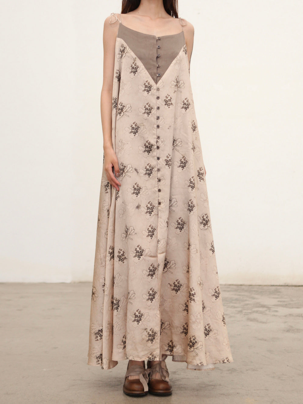 Mutedance 25 Autumn and Winter Splicing Suspender Dress Flower Dye MD-MD25FW118-khaki