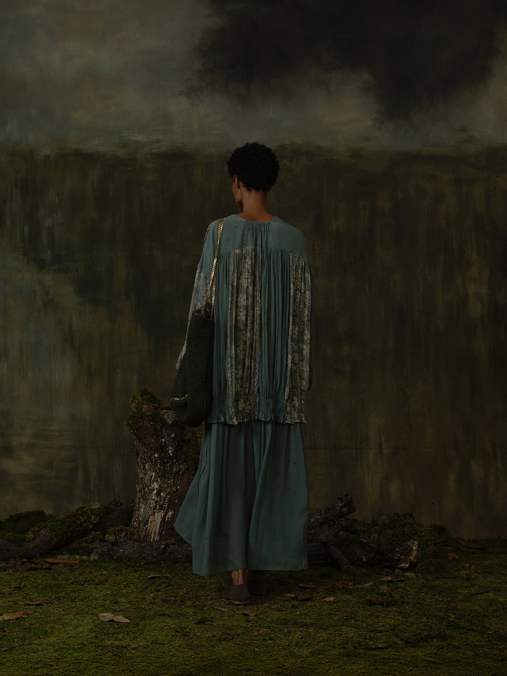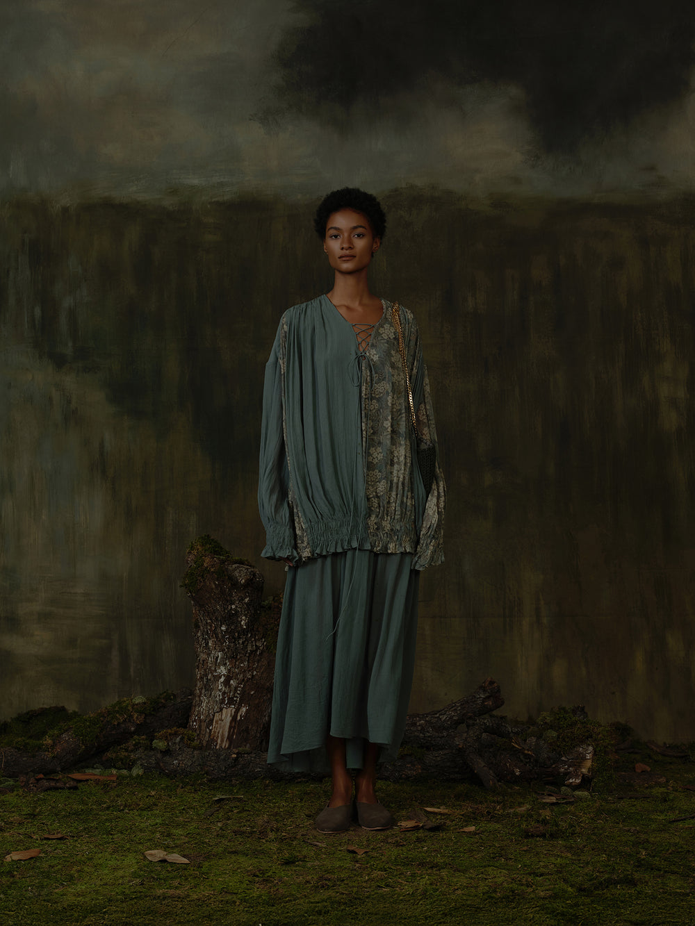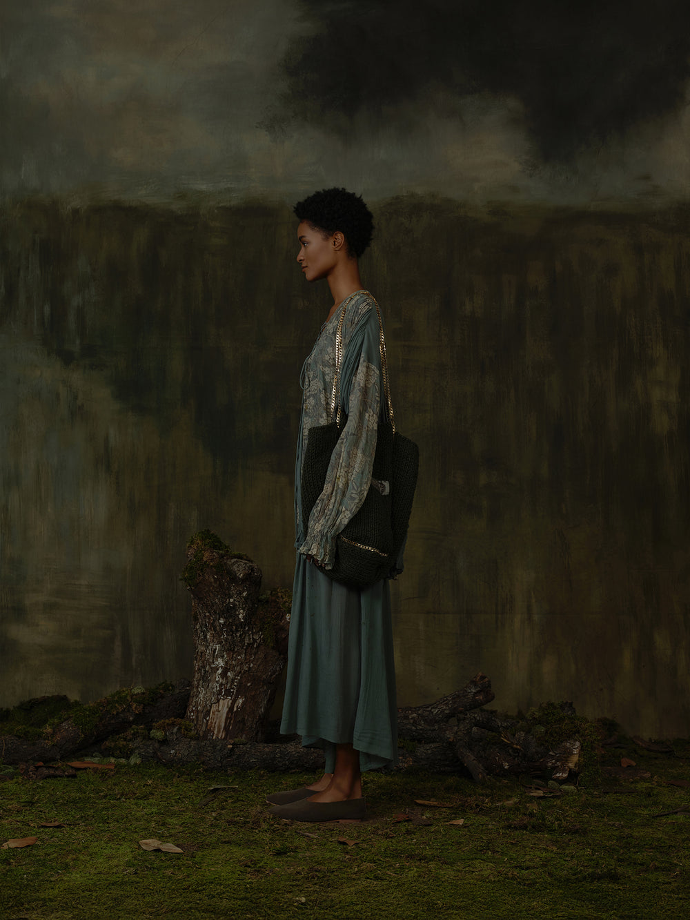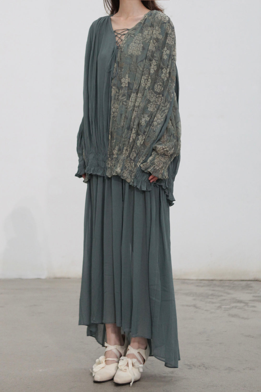 Mutedance 25 Autumn/Winter V-neck silk dress MD-MD25FW31-green (MD25FW30)