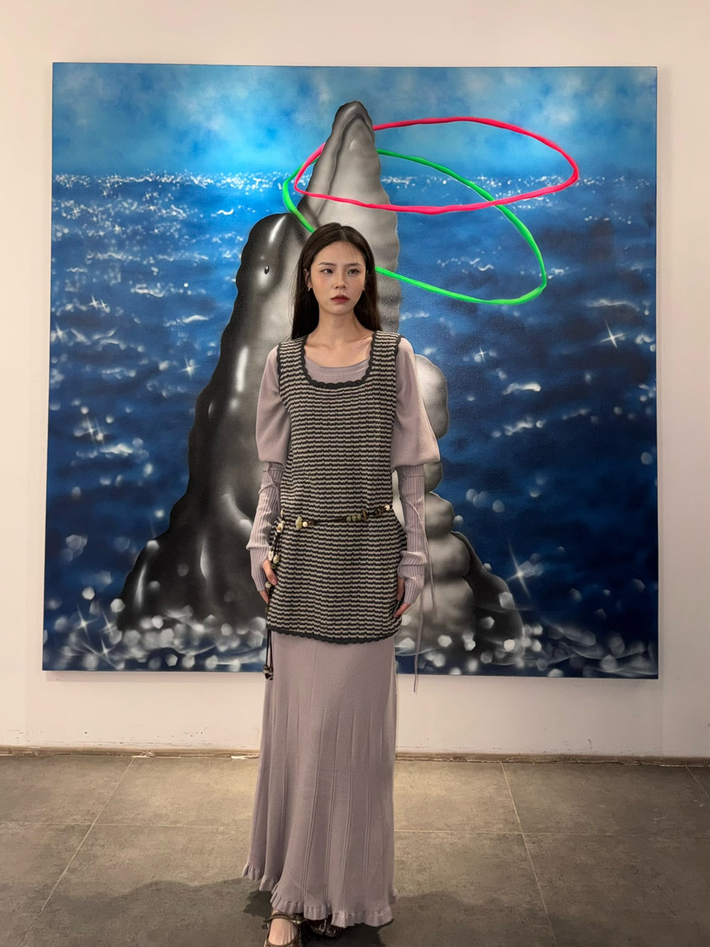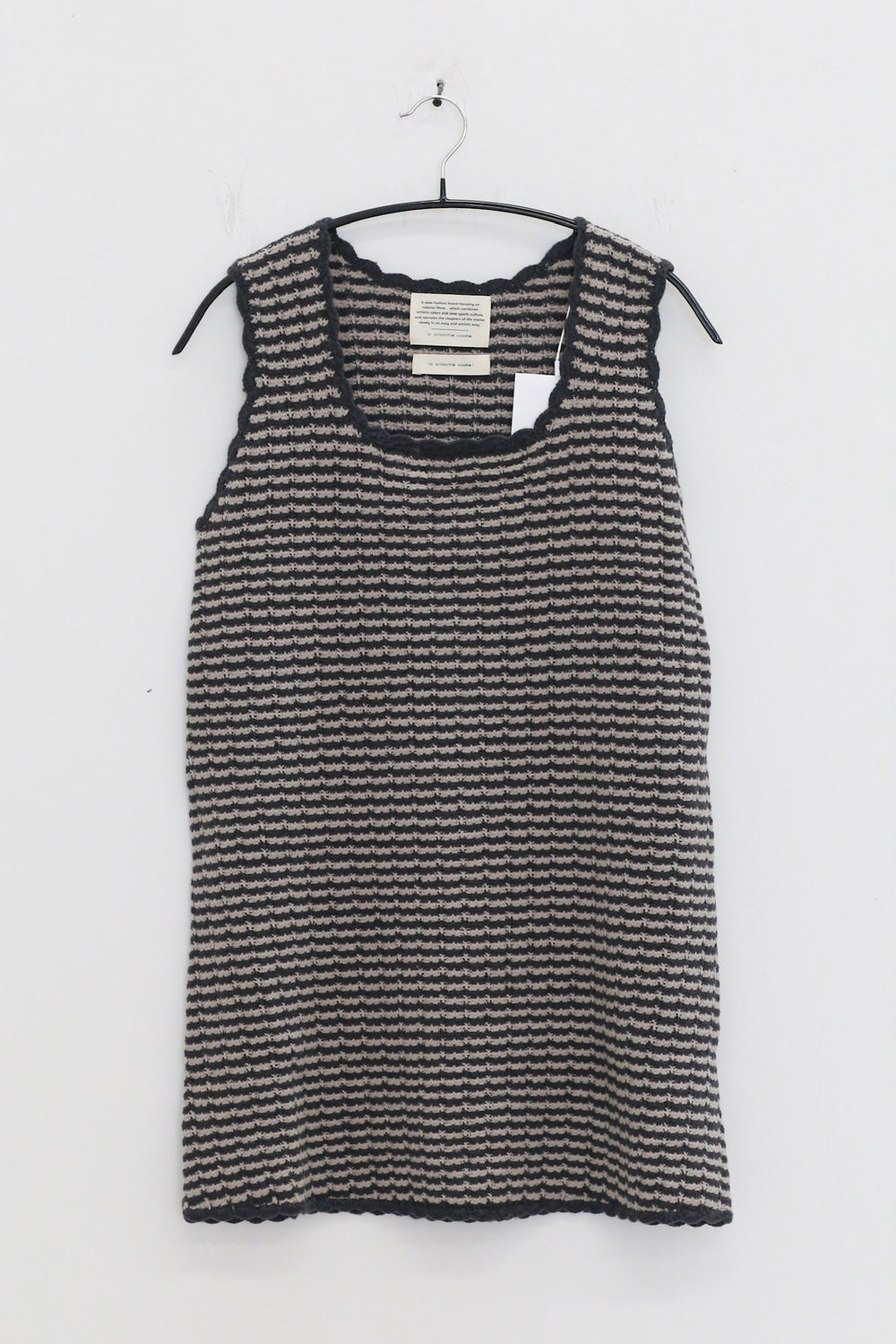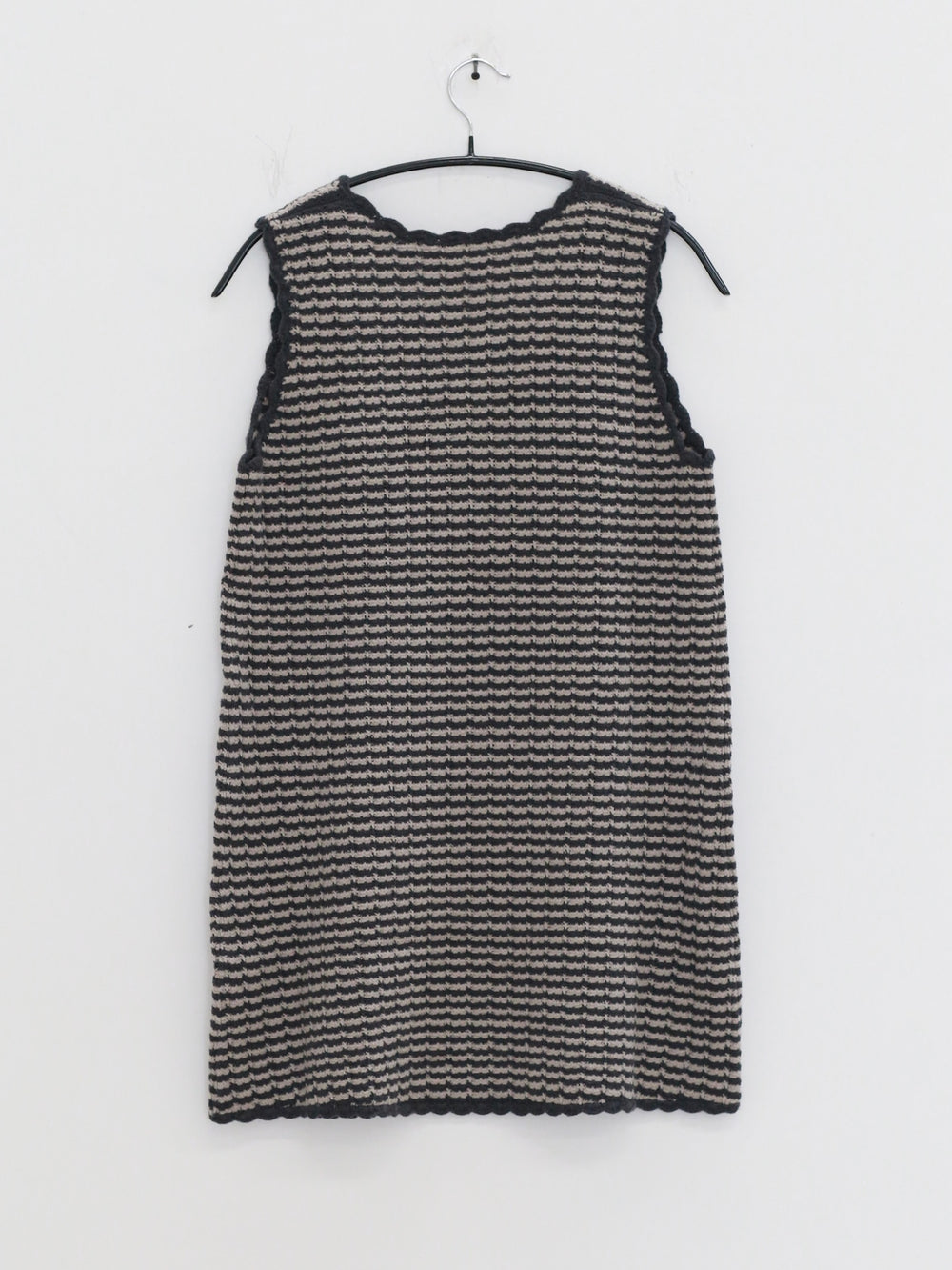 o cloche code 25 Fall/Winter Black and White Floral Knitted Vest Dress, Merino Wool Knit OCC-OH01Q864-WMHSH, Ebony Black/Grey Stone