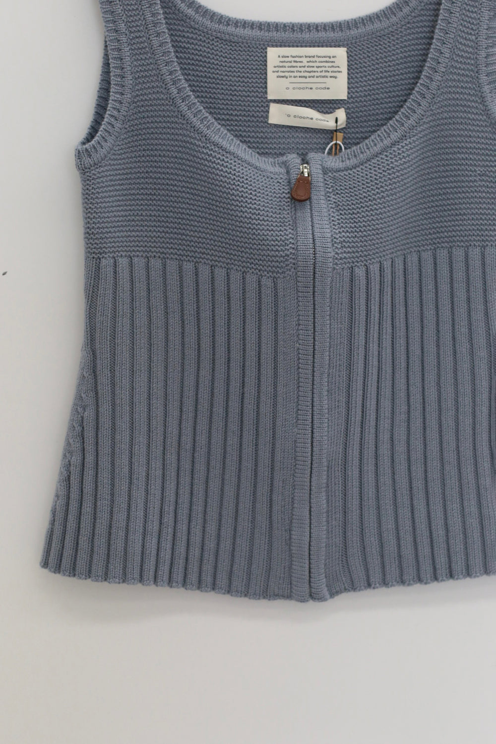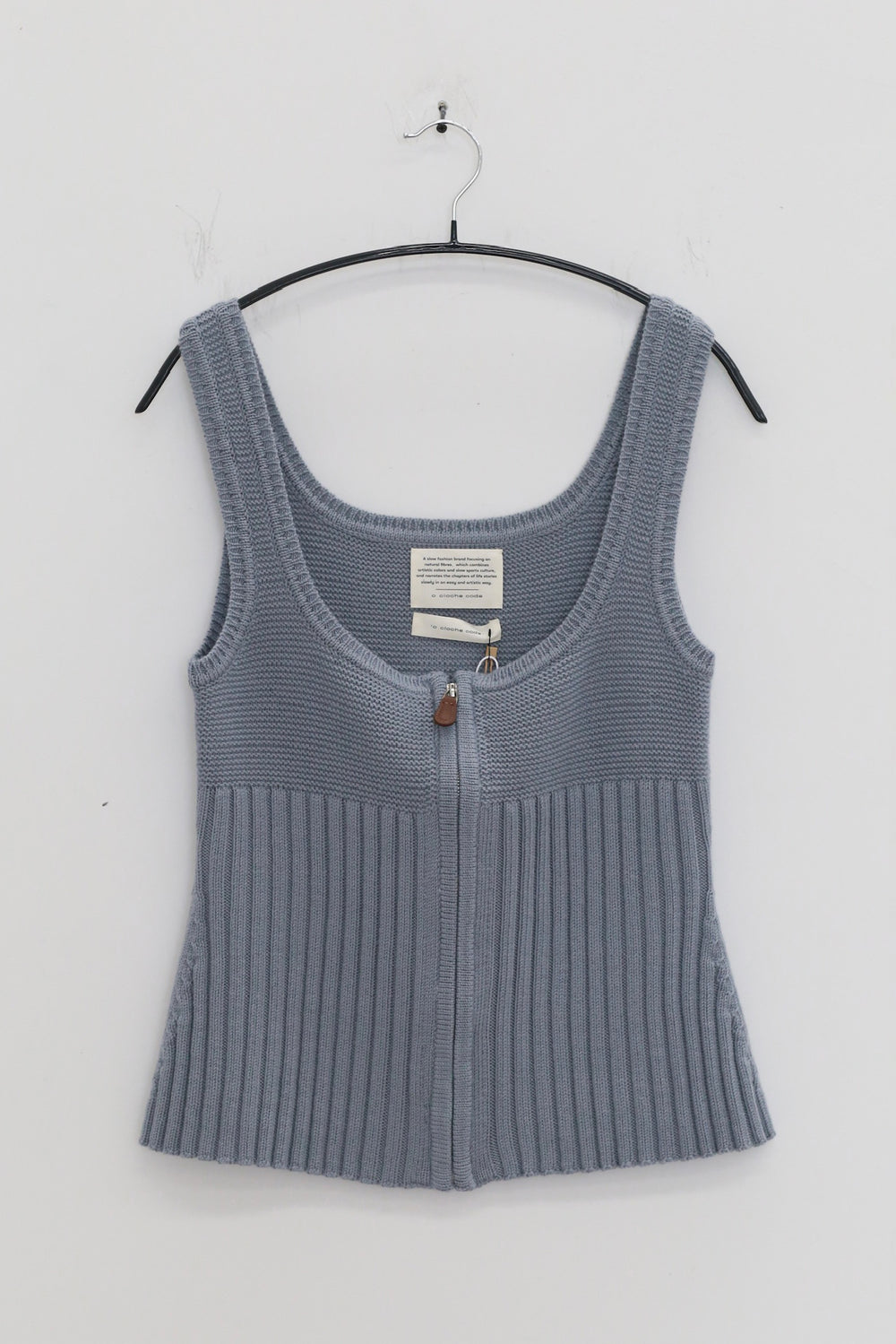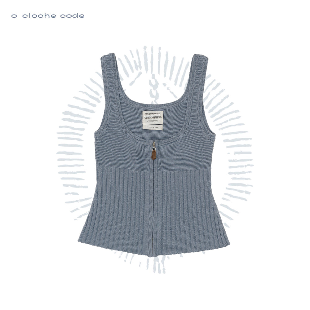 o cloche code 25 Fall/Winter Chunky Knit Low-Neck Vest, Merino Wool Knit OCC-OH01T890-HL Pastel Gray-Blue