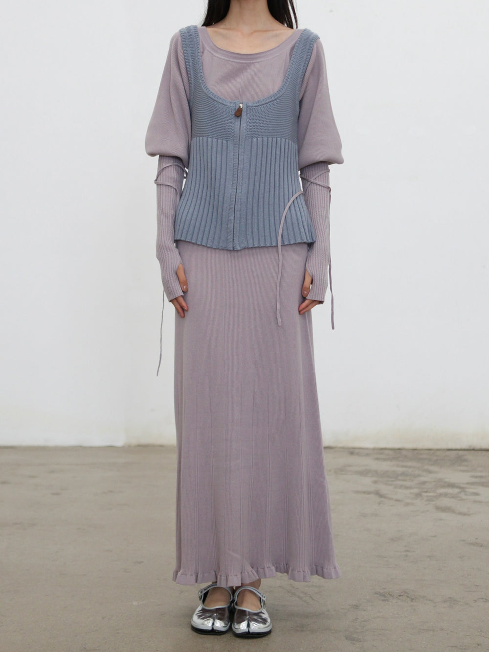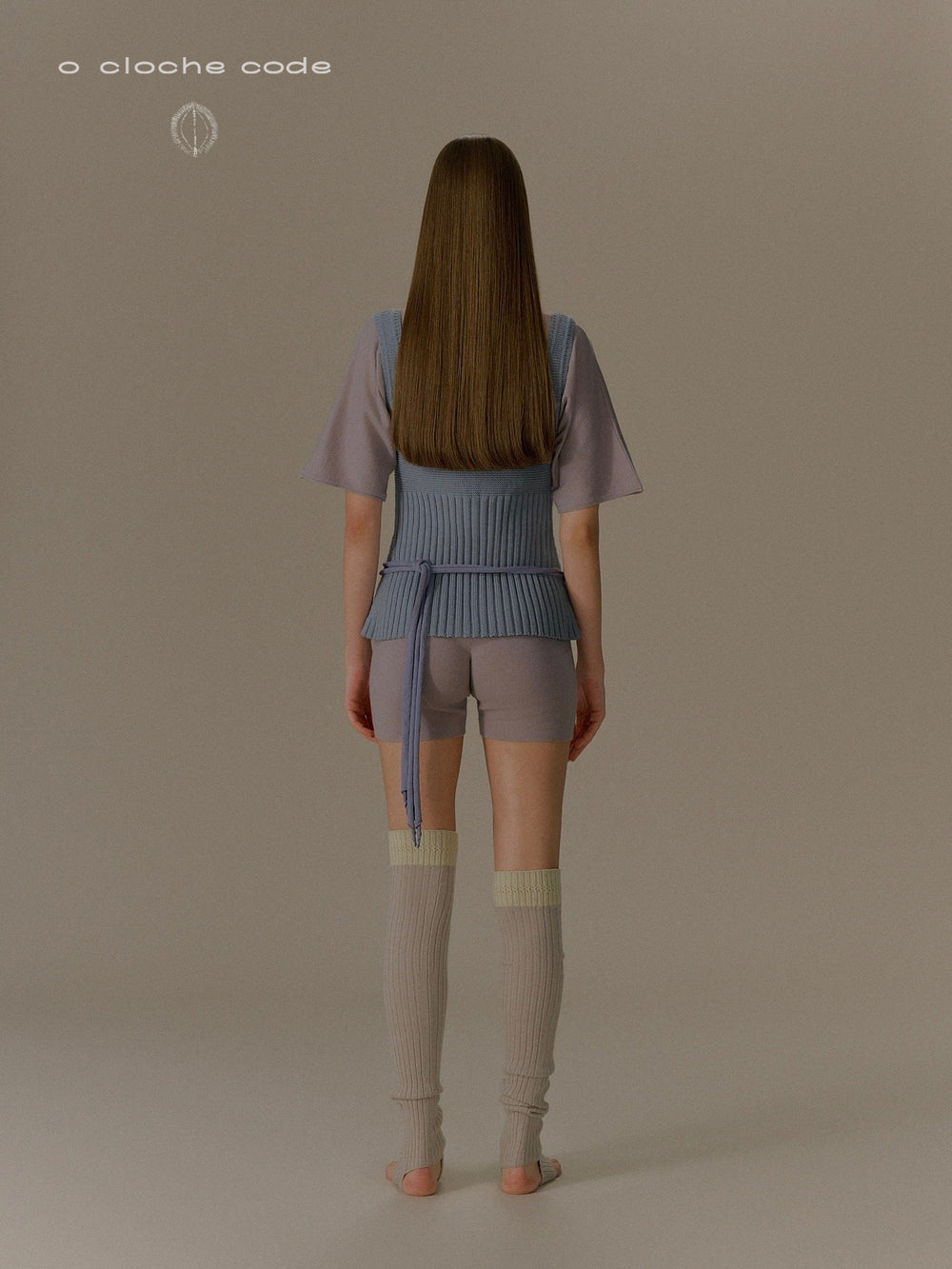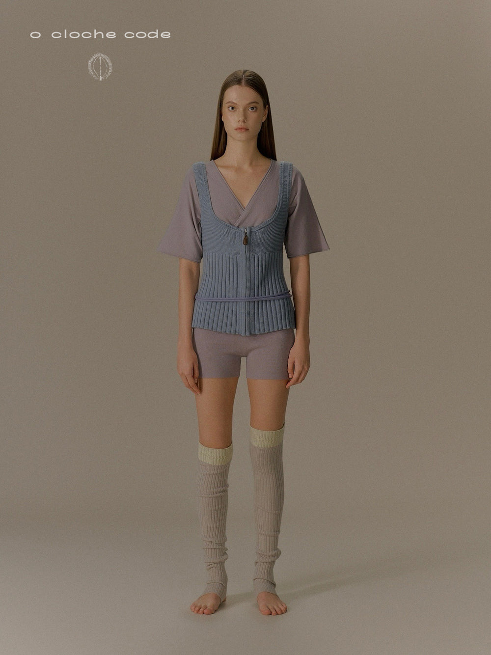 o cloche code 25 Fall/Winter Chunky Knit Low-Neck Vest, Merino Wool Knit OCC-OH01T890-HL Pastel Gray-Blue