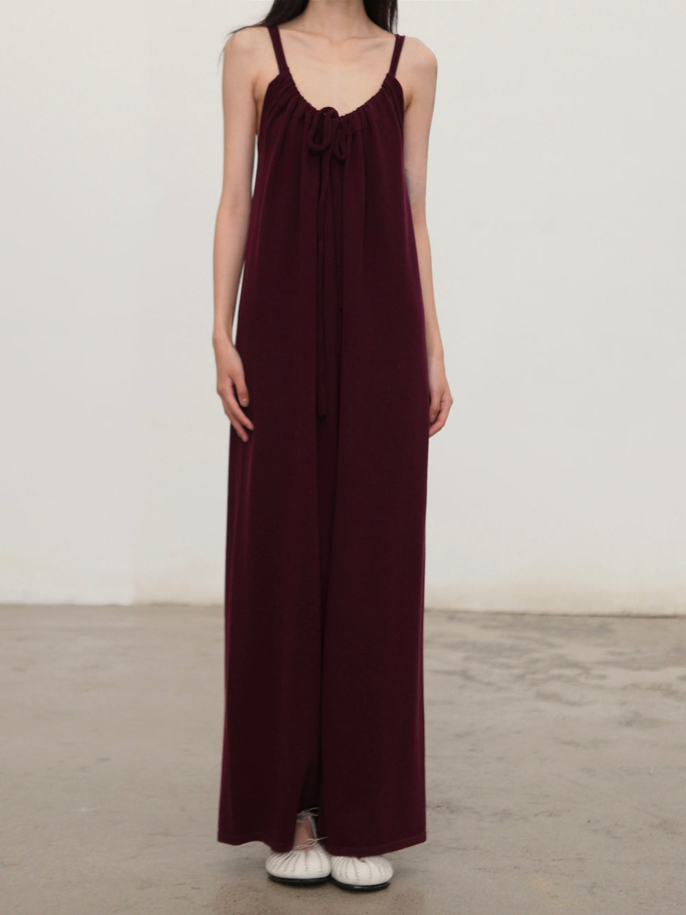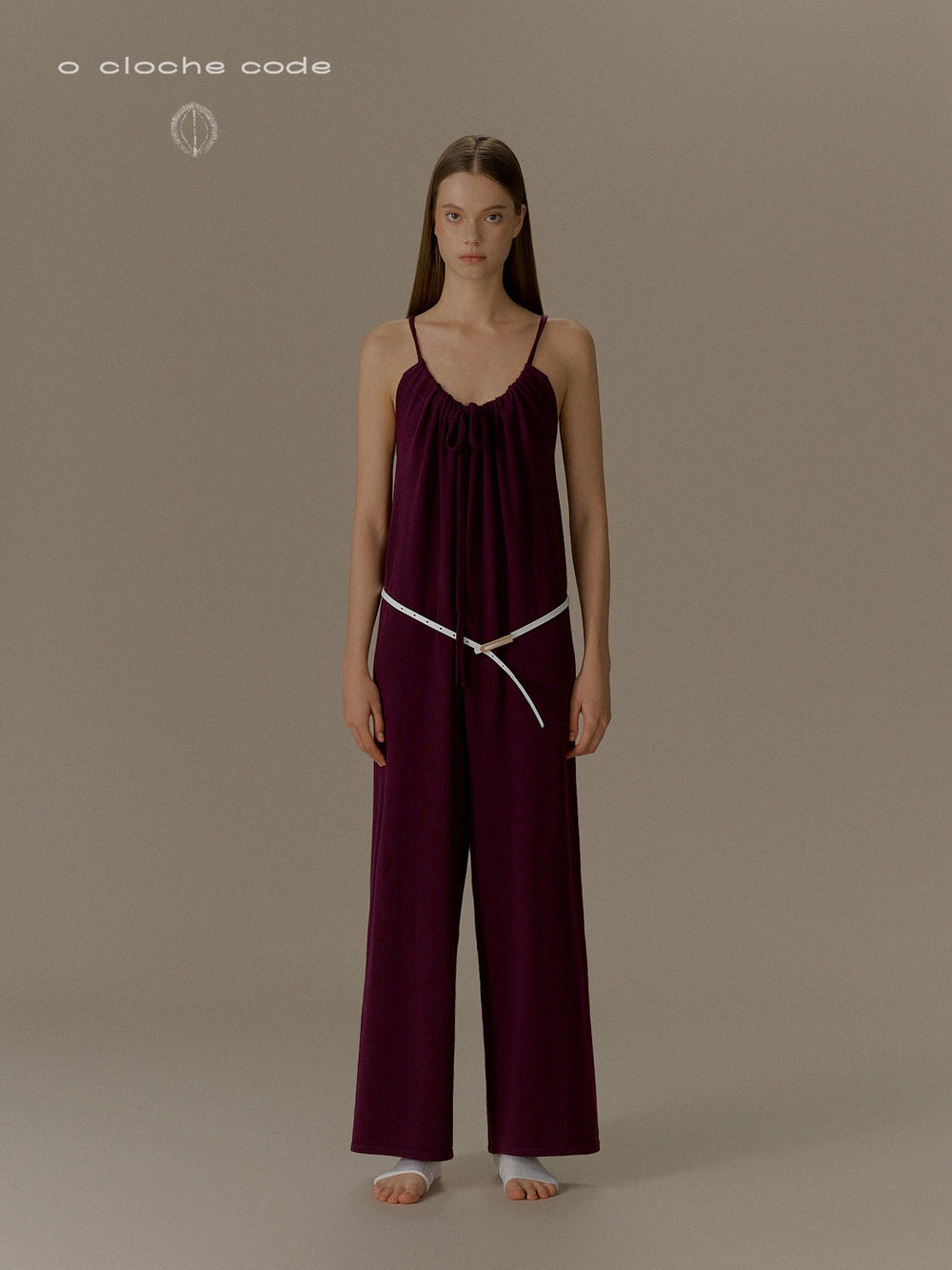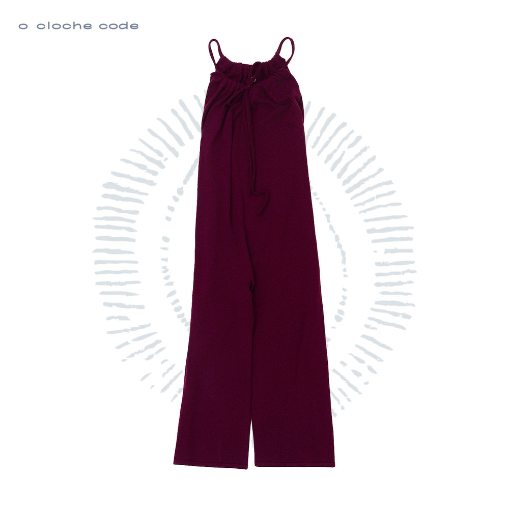 o cloche code 25 Fall/Winter drawstring jumpsuit, merino wool knit, OCC-OH01L896-JGZ, BERRY purple.