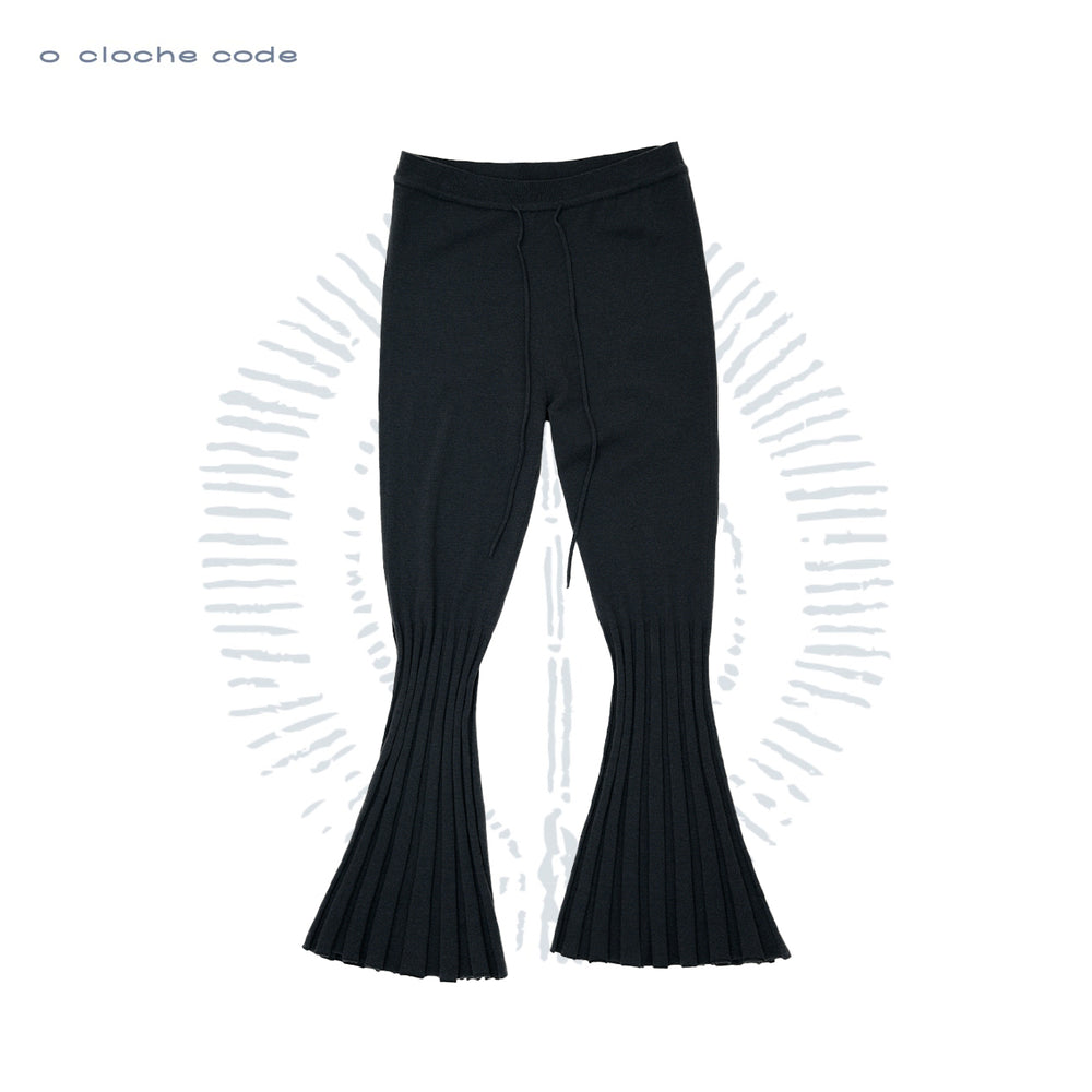 o cloche code 25 Fall/Winter Lace-up Flared Merino Wool Knit Trousers for Women OCC-OH01P867-WMH Ebony Black