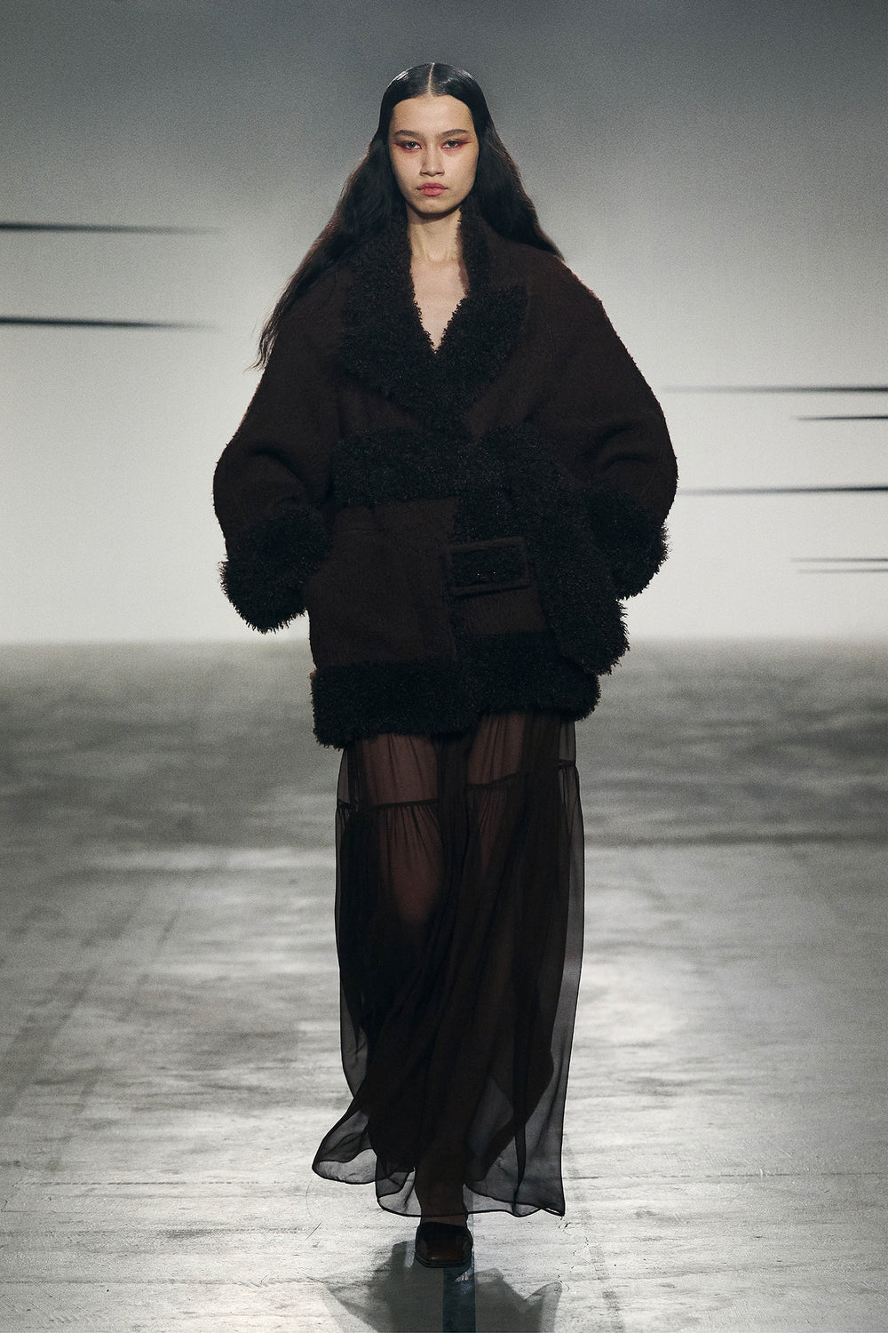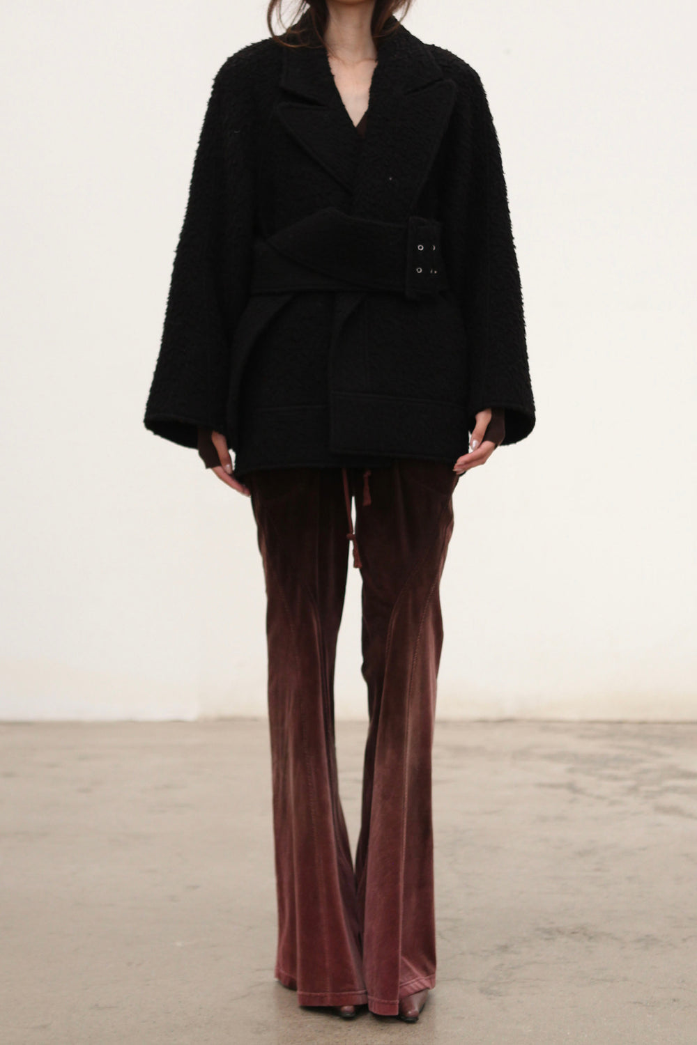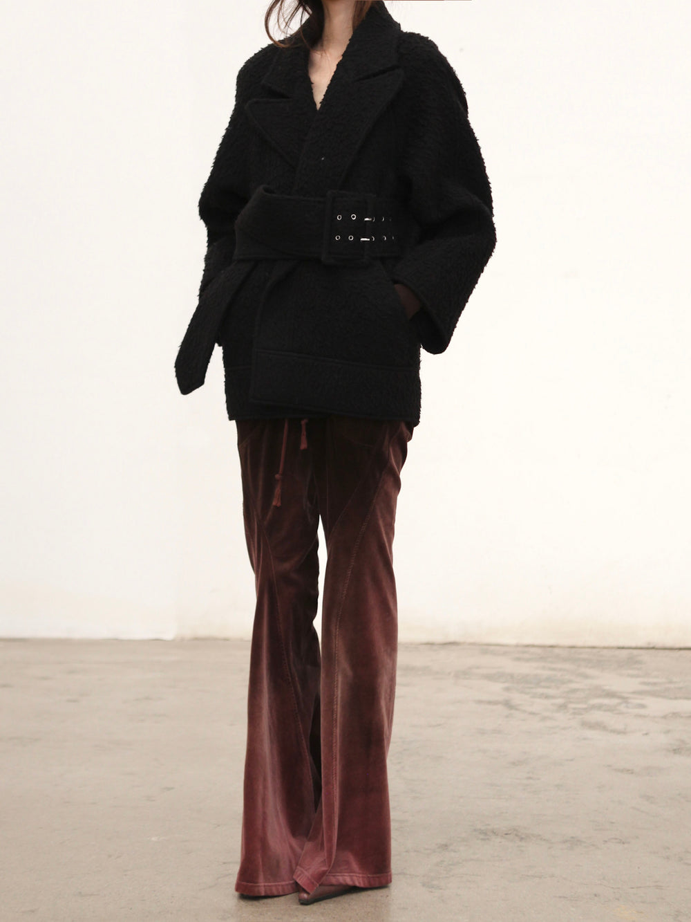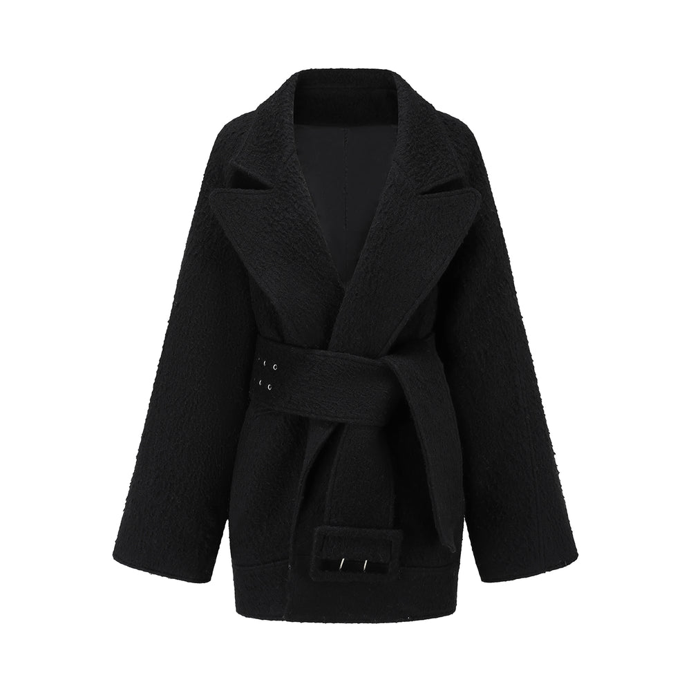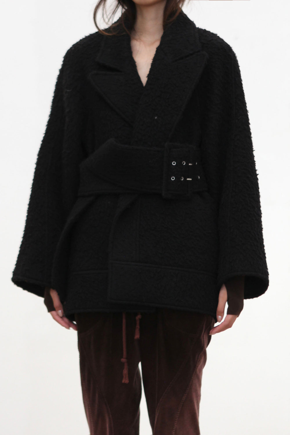 OUDE WAAG Fall/Winter 2025 Teddy/Wool Patchwork Oversized Coat OW-OW-25AW-CT08W1BL900-HEI Black (OW-25AW-CT07)