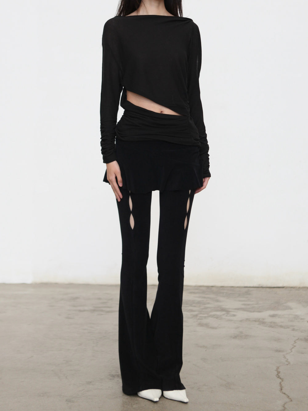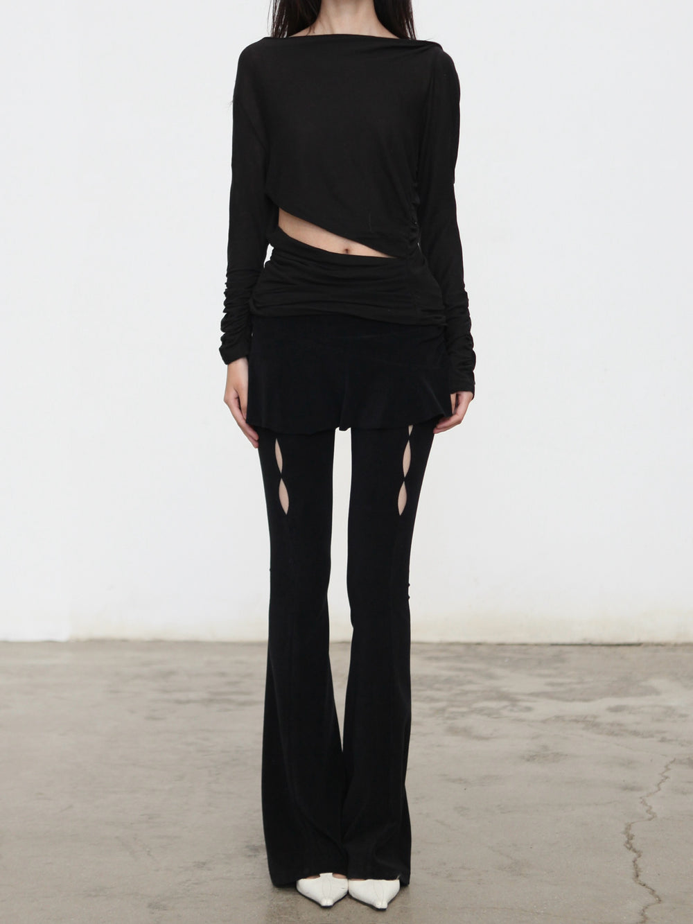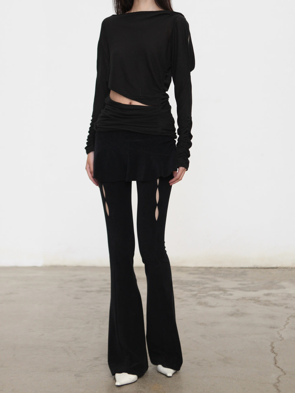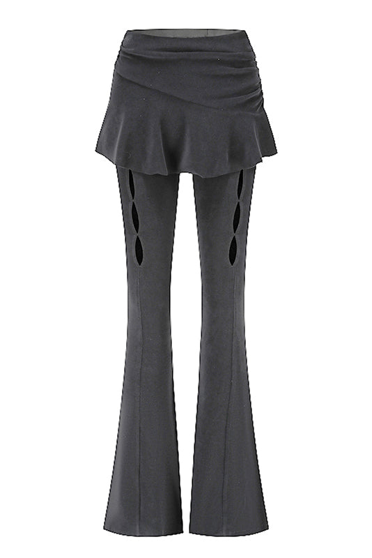 RUI built 26 Early Spring Terry Fabric Hollow-Out Flared Skirt Pants RUI-S26WV06-Onyx black