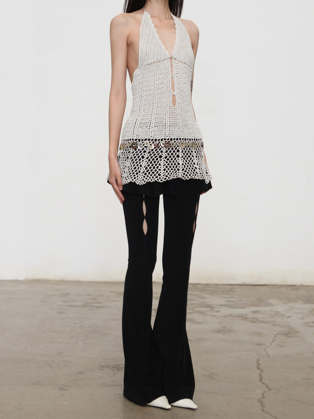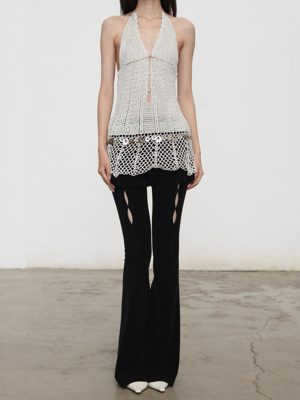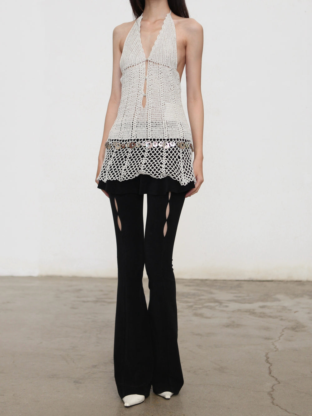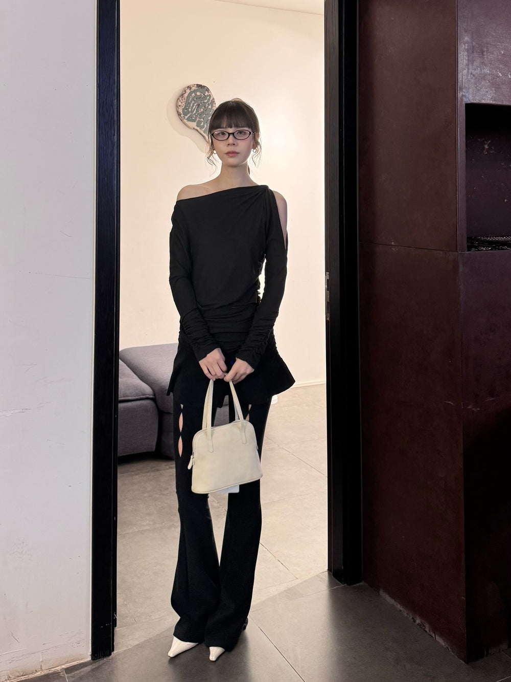 RUI built 26 Early Spring Terry Fabric Hollow-Out Flared Skirt Pants RUI-S26WV06-Onyx black