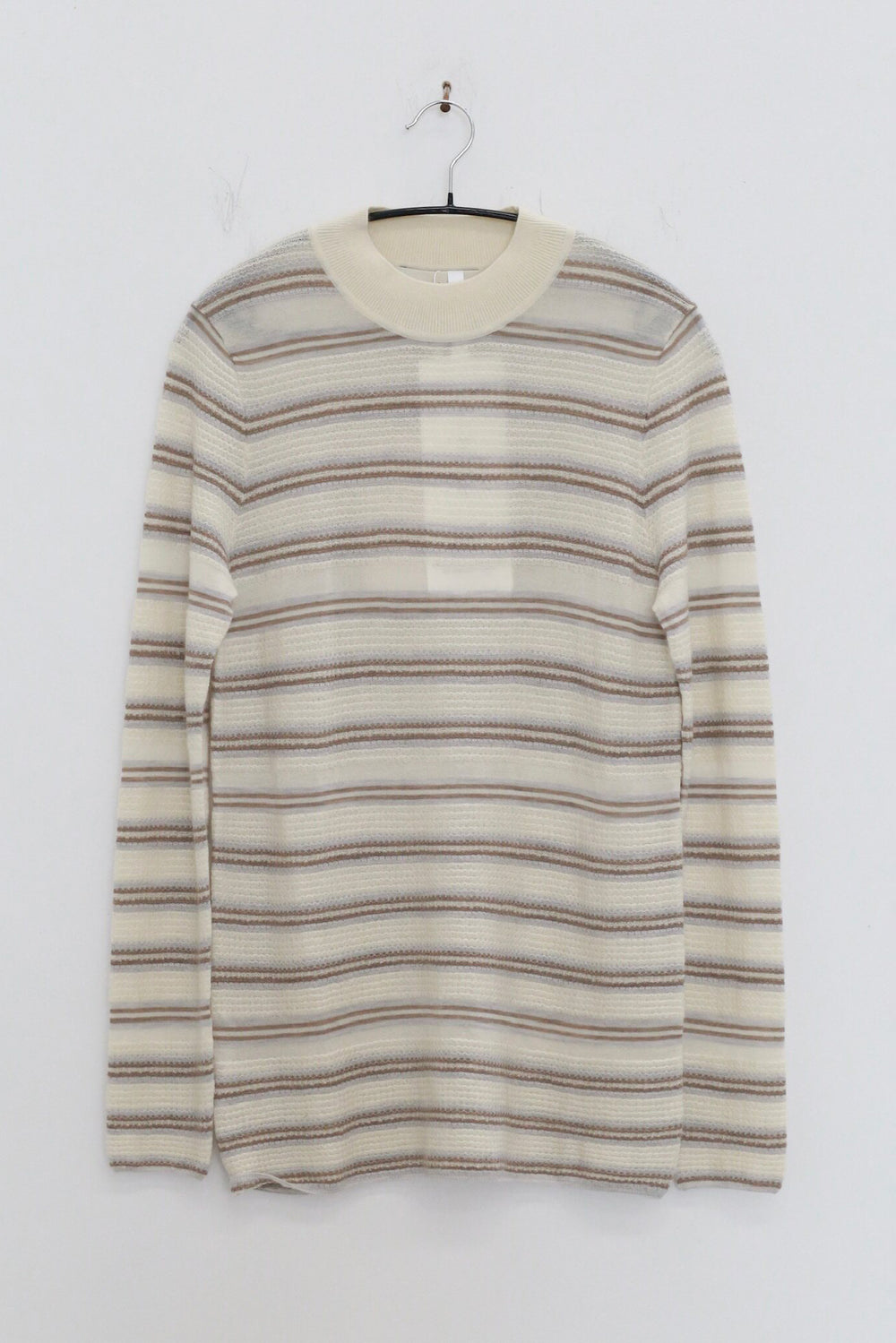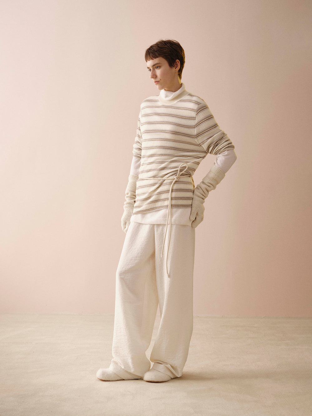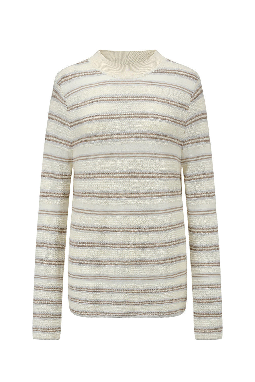 SWAYING 26 Early Spring Wool Striped Long-Sleeve T-Shirt SW-SW26PS1T14C1-BAI White