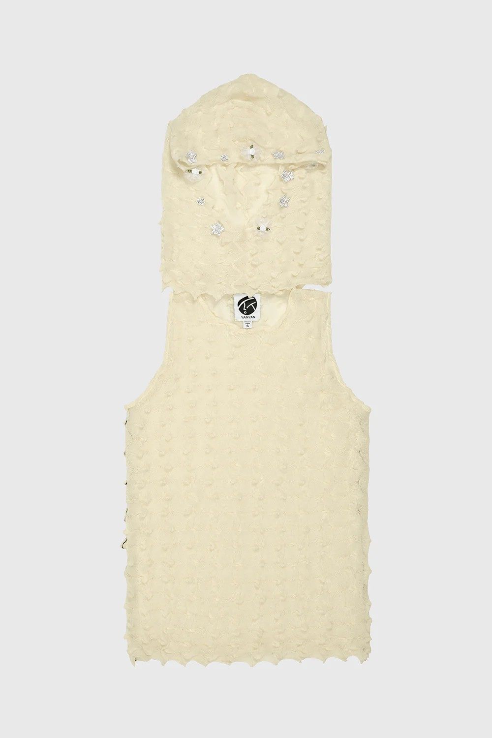 YANYAN KNITS BORLOR Sleeveless Hoodie YYK-YYW25-2311-BAI White