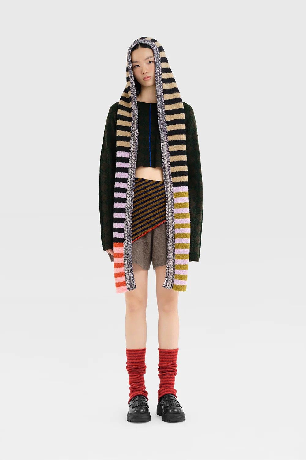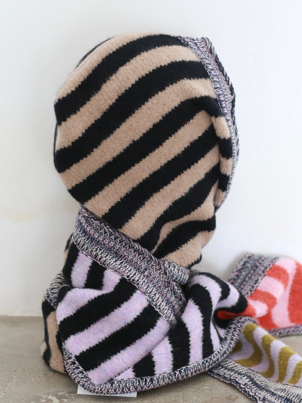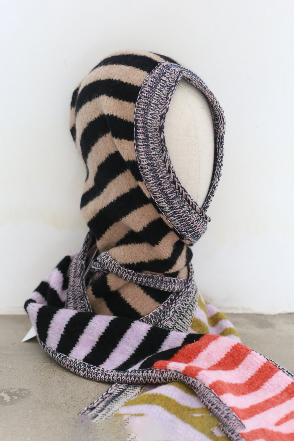 YANYAN KNITS Plush Hoodie Scarf YYK-YYW25-2991-BLACK CAMEL