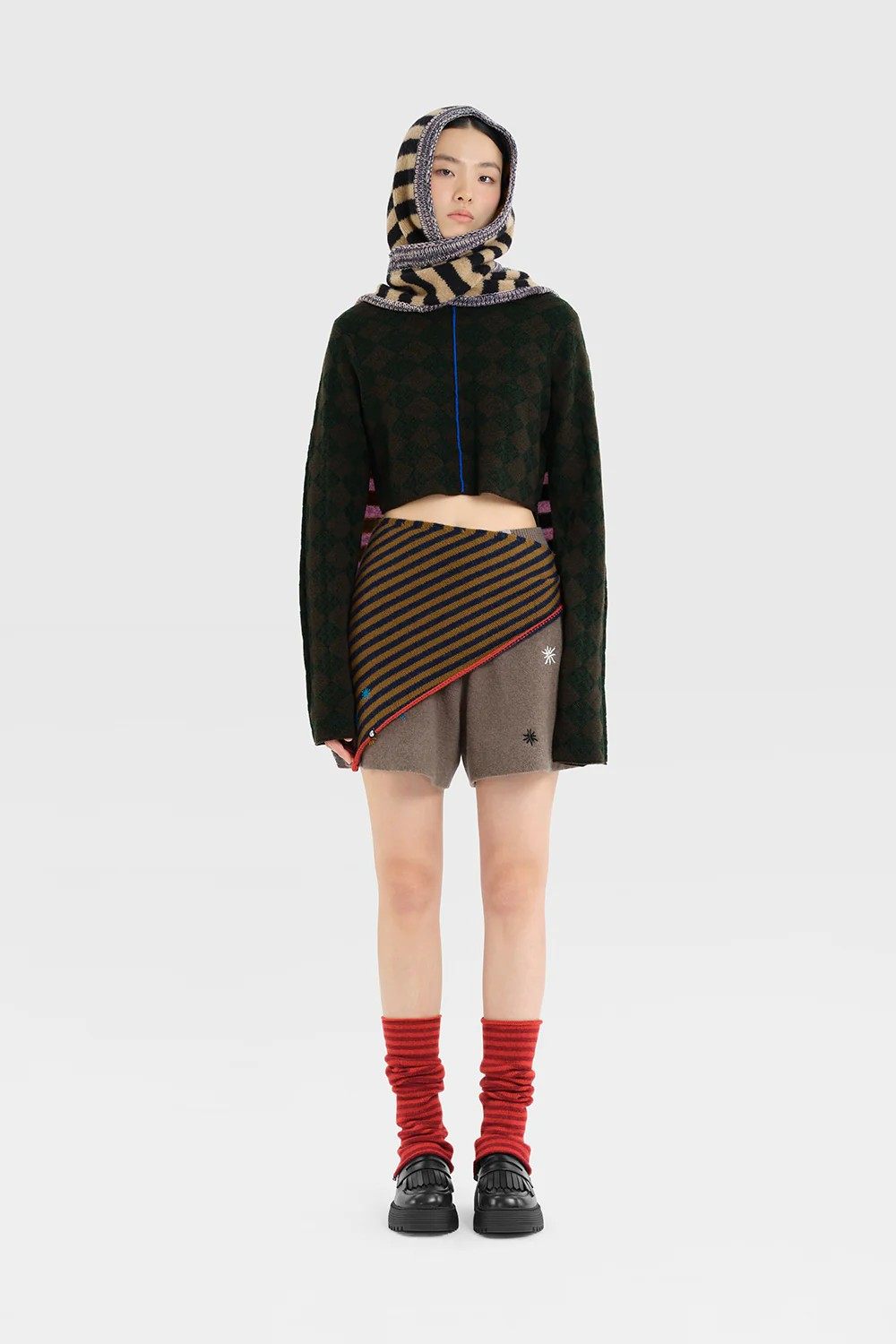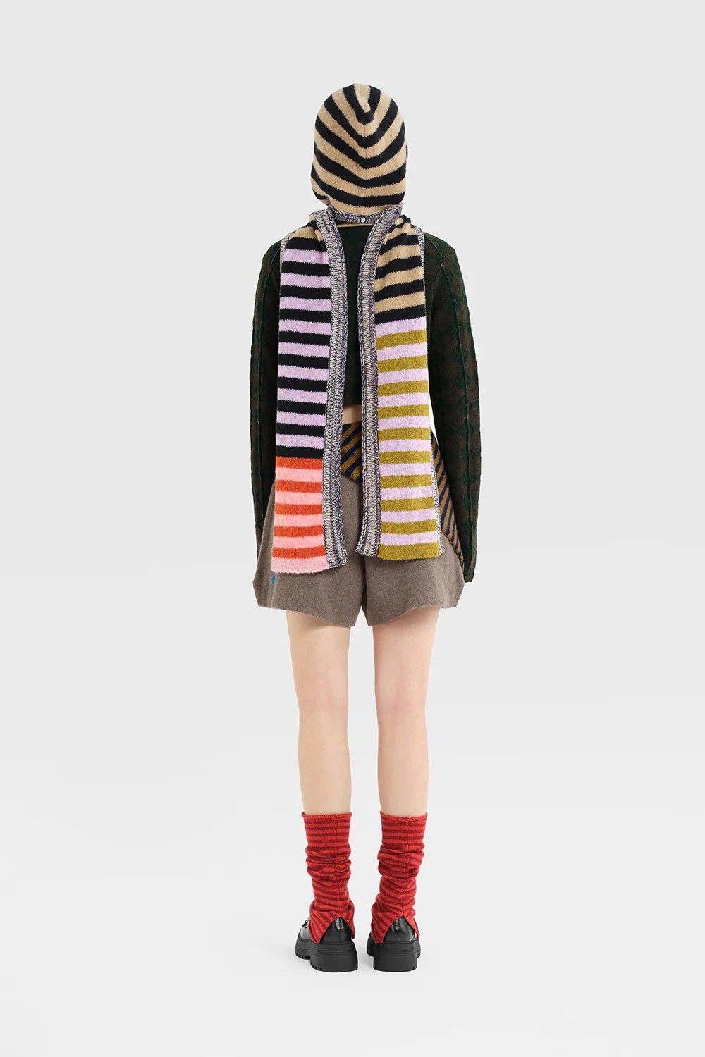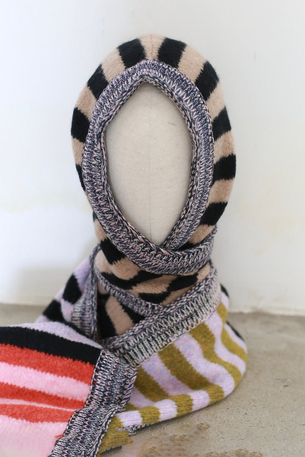YANYAN KNITS Plush Hoodie Scarf YYK-YYW25-2991-BLACK CAMEL