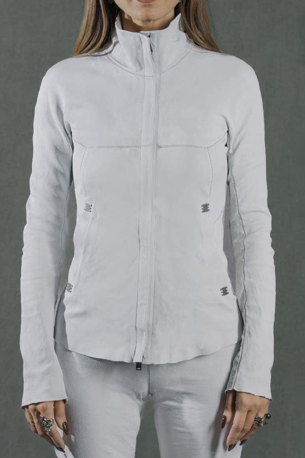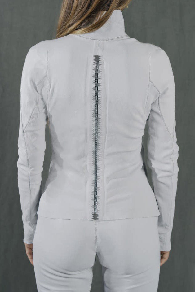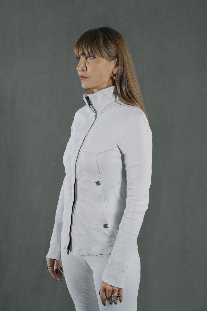 ISAAC Sellam Spring/Summer 2026 High-Neck Unlined Leather Raglan Zipper Jacket IS-ANDROIDE-NEO E26-BLANC