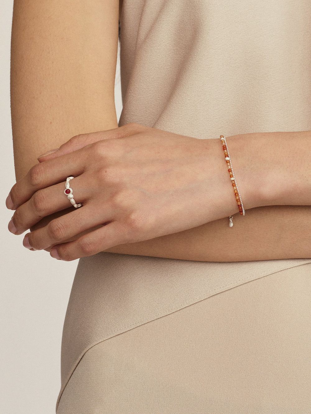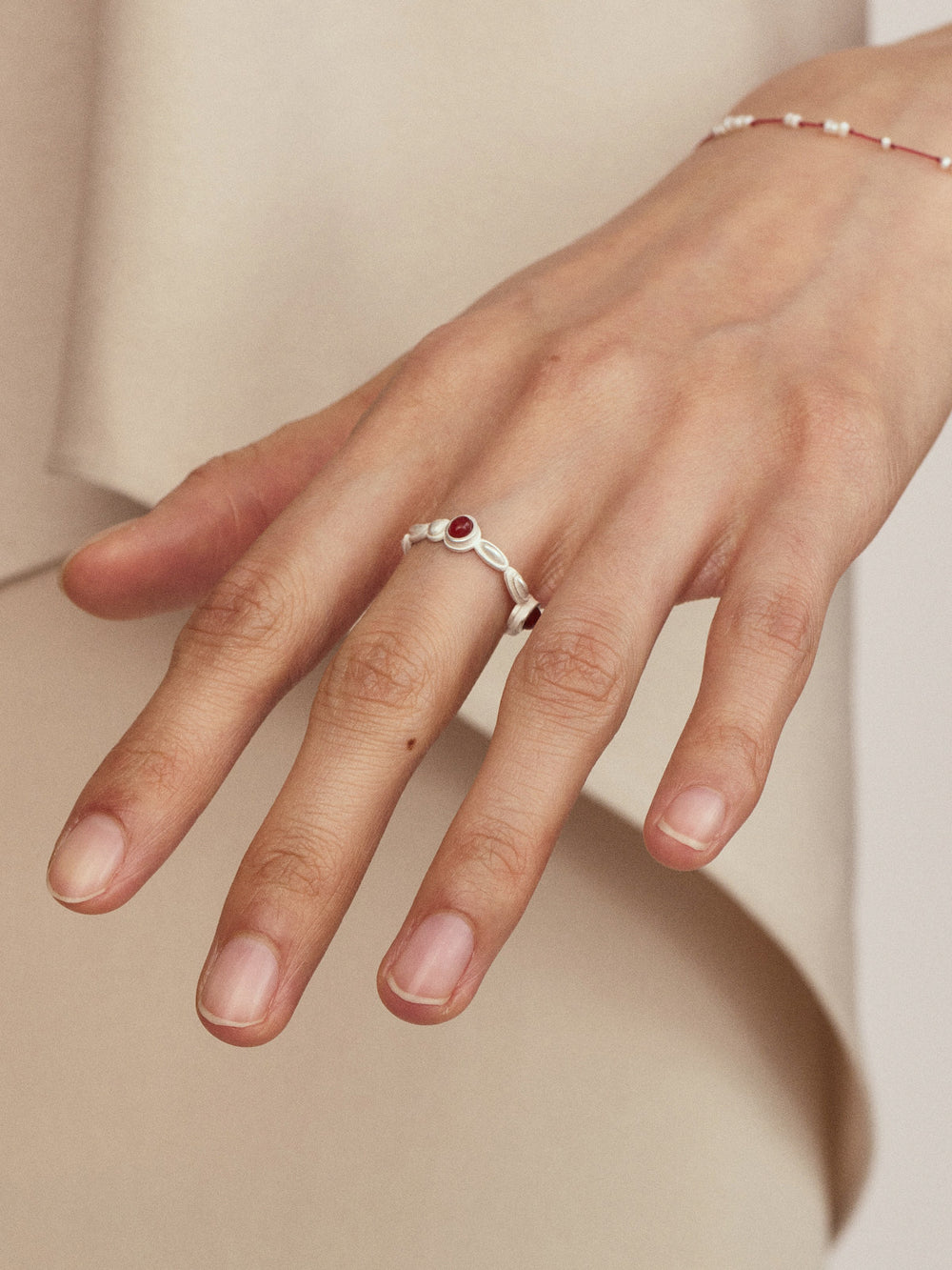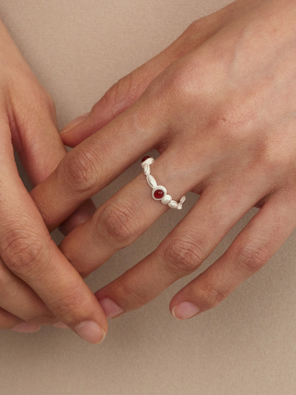 OLIO E ACETO New Year Collection Sterling Silver Red Agate Gemstone Ring OLIO-OA13F19-YH Silver/Red