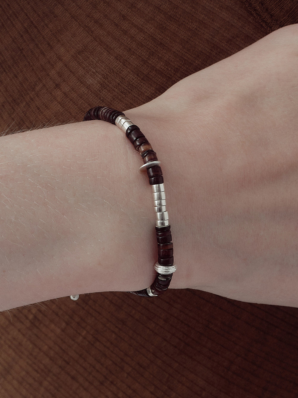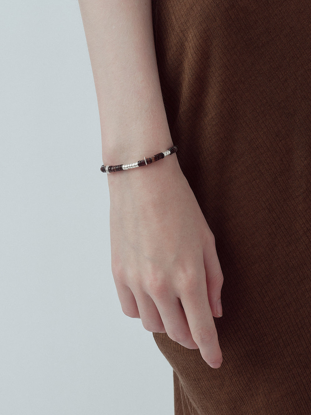 OLIO E ACETO Shell Silver Beaded Bracelet OLIO-OA14A04-YZ Silver/Brown