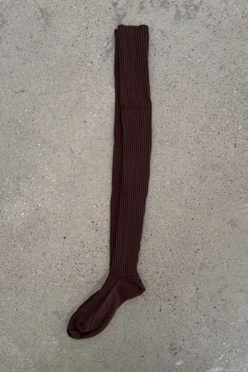 BASERANGE cotton long and mid-calf socks, KOK KTOK series, France. BAS-SOOK-CR-WI25-ORTA BROWN (KOK KTOK SOOK SOTOK).