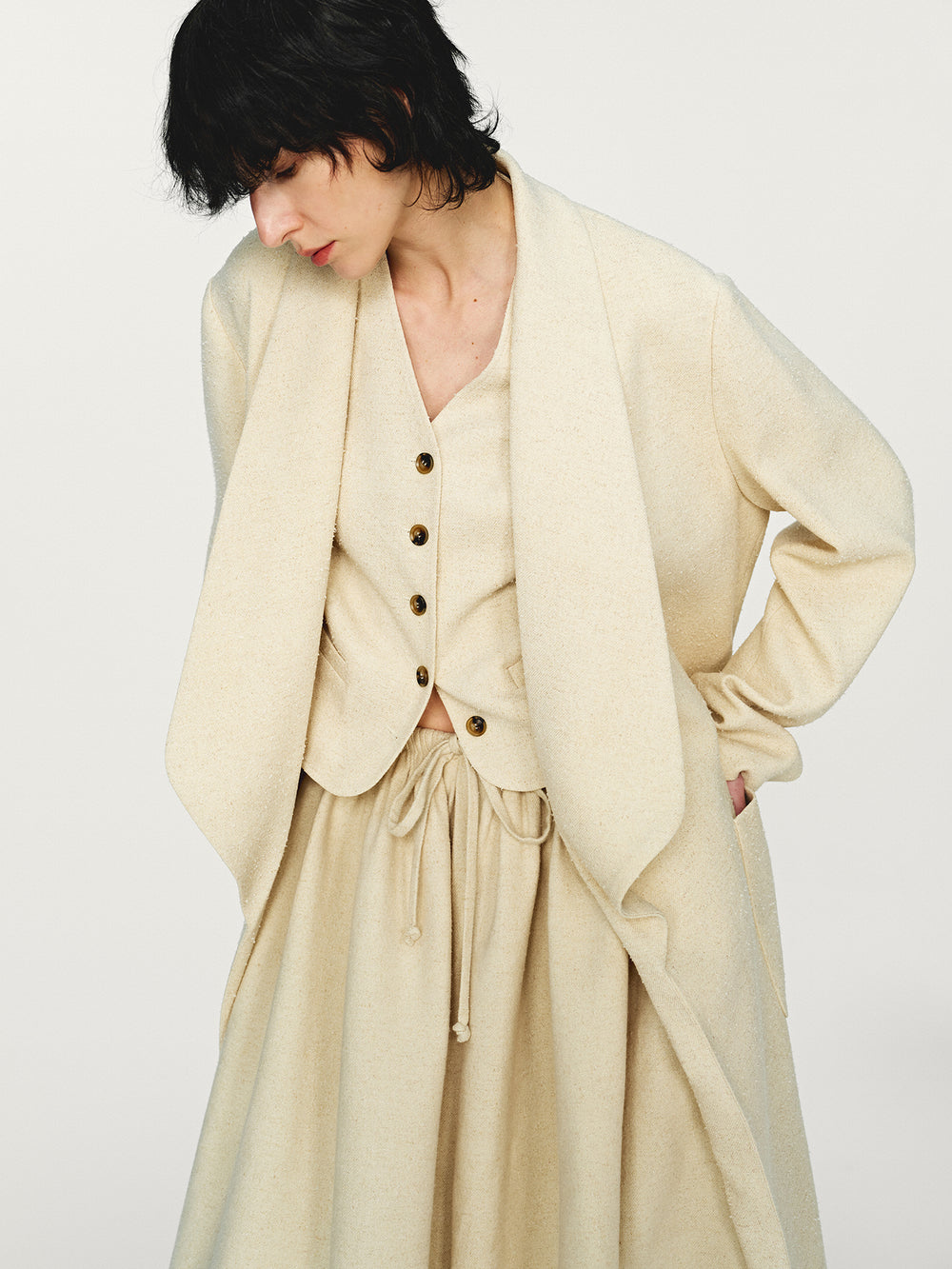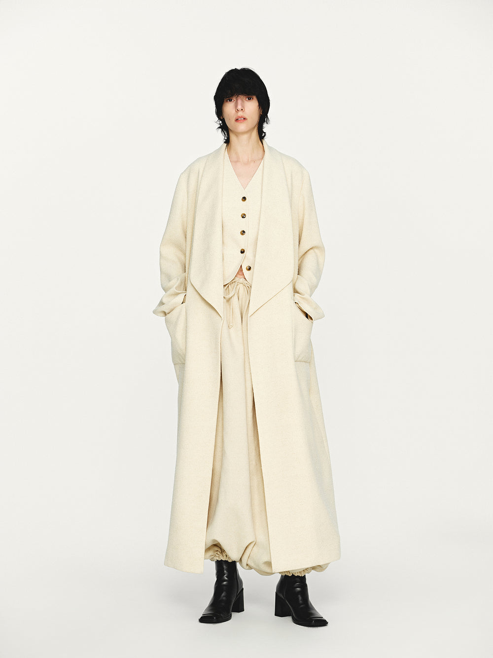 INTO THE EAST 2025 Autumn/Winter Ivory White Textured V-Neck Vest/Lantern Pants ITE-E1DGAW107IY20PT-XYB Pants (ITE-E1DGAW100IY20VE)