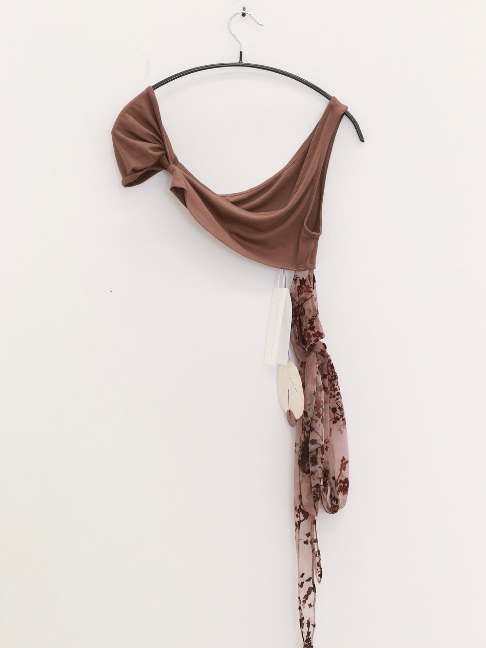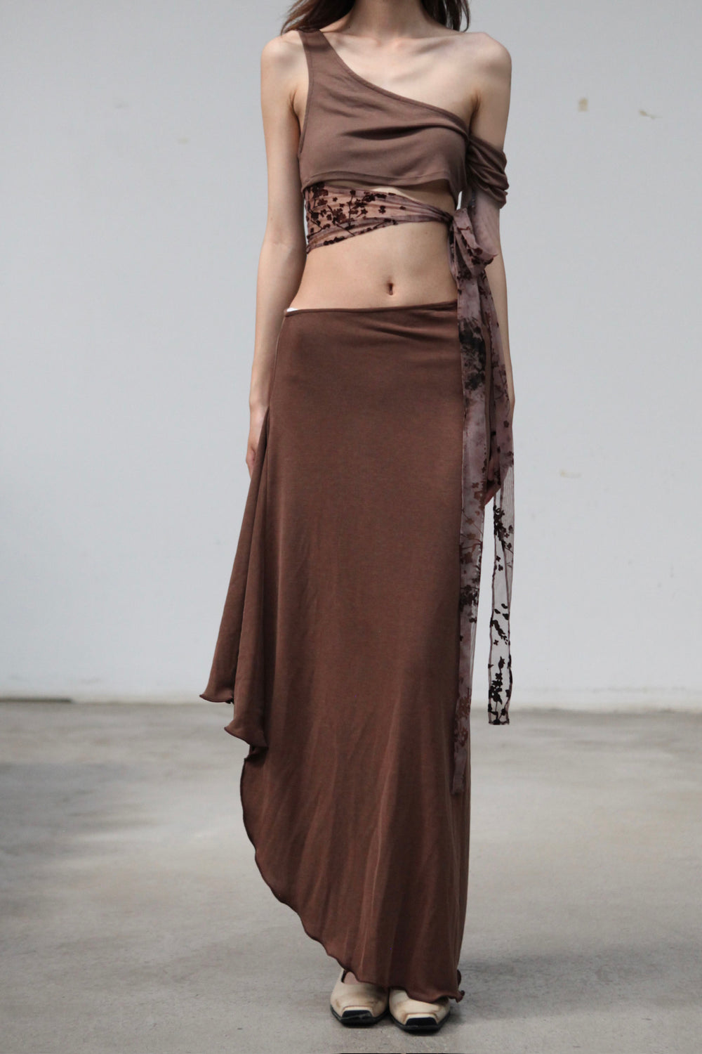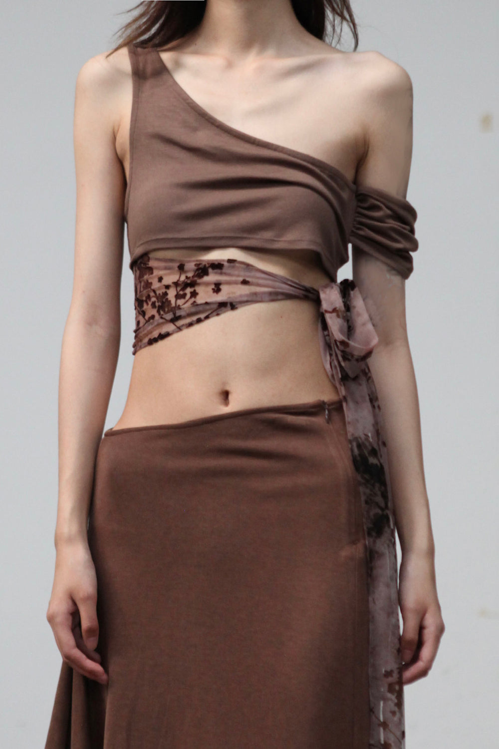 Maison Yiy Asymmetrical One-Shoulder Lace Cropped Top/Vest MY-MY26SA07-2-Brown