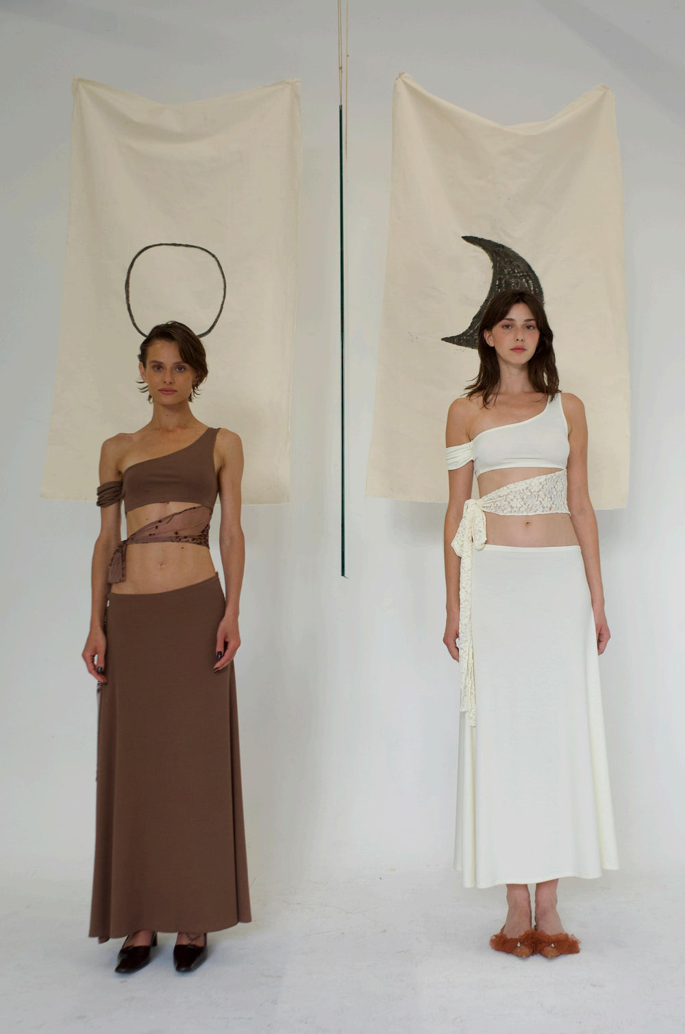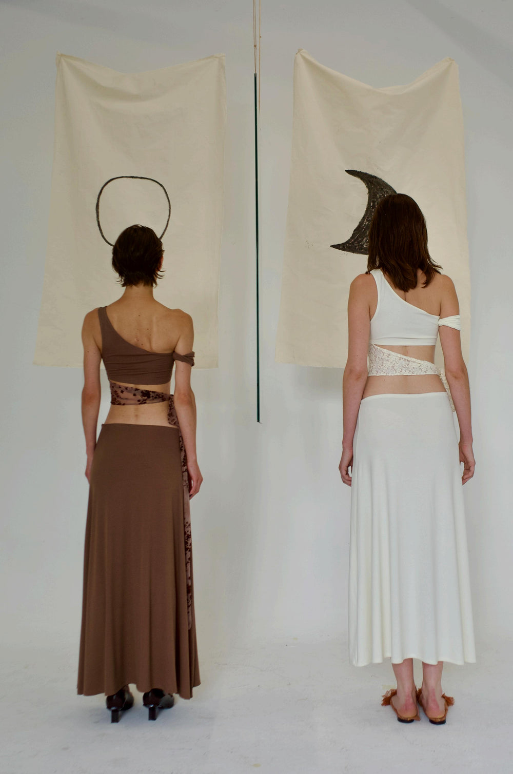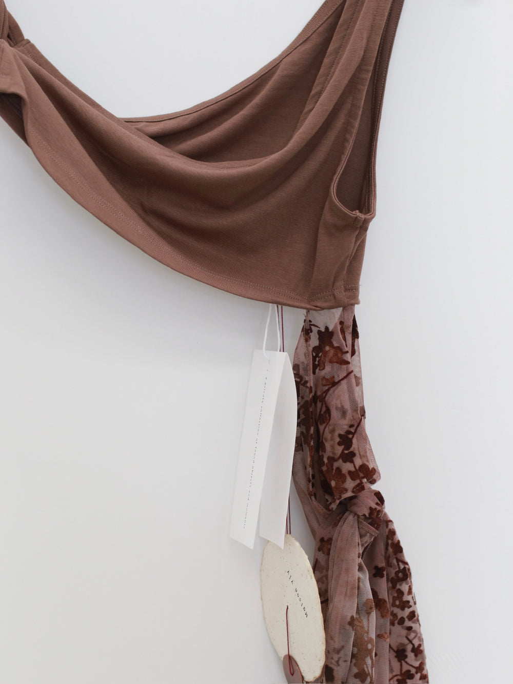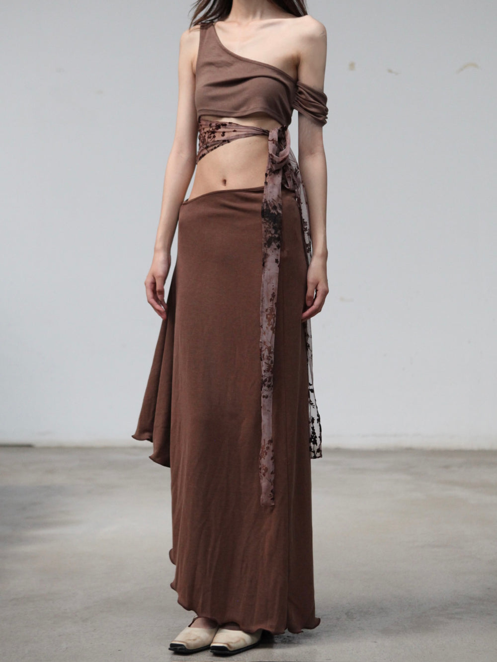 Maison Yiy Asymmetrical One-Shoulder Lace Cropped Top/Vest MY-MY26SA07-2-Brown
