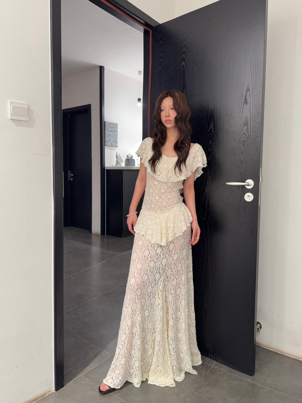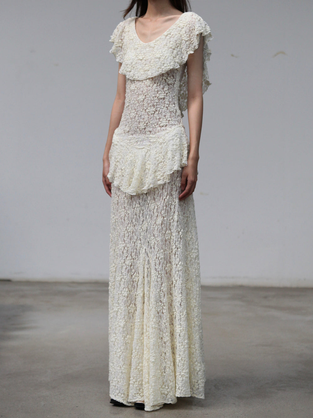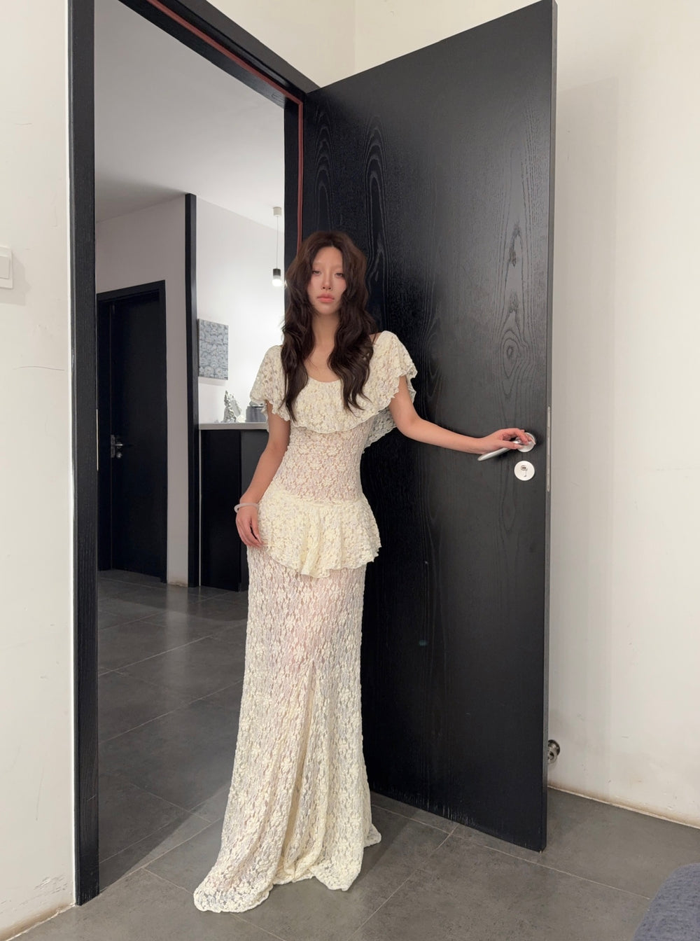 Maison Yiy Collared Ruffle Dress MY-MY26SC08-1-Ivory