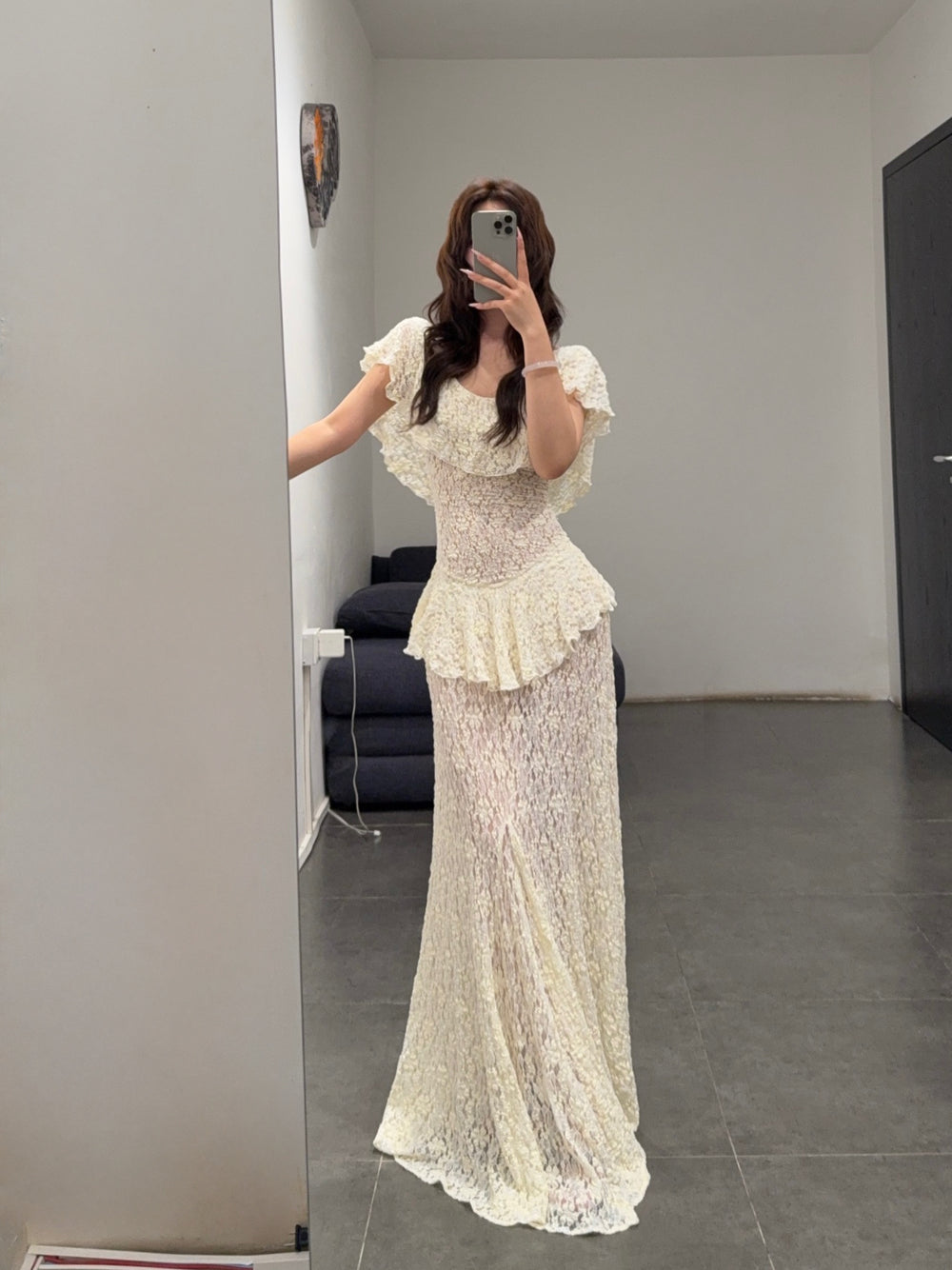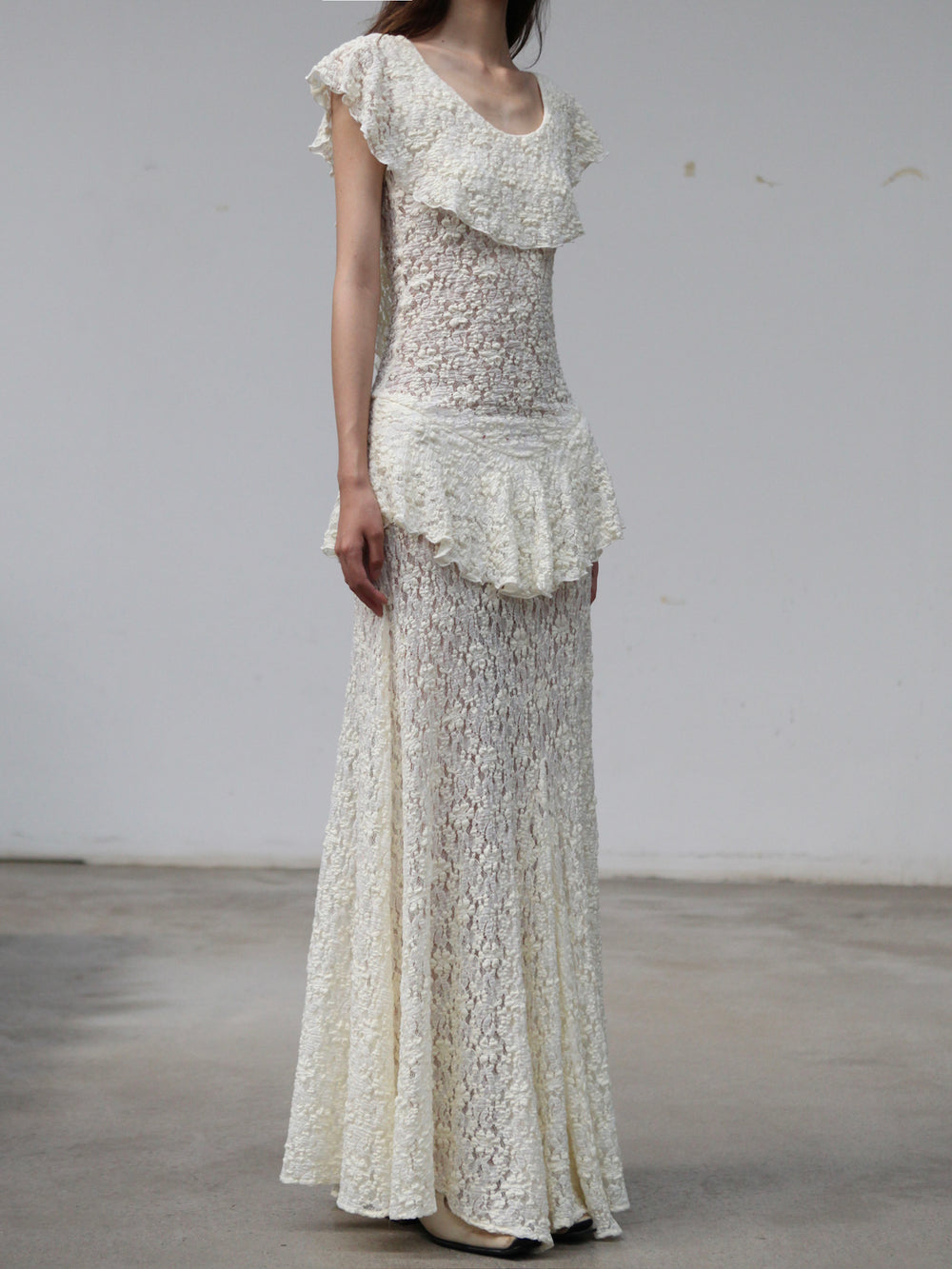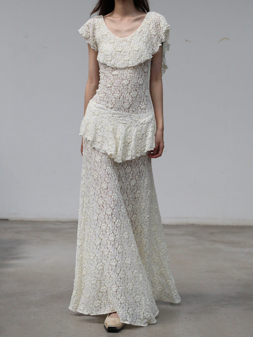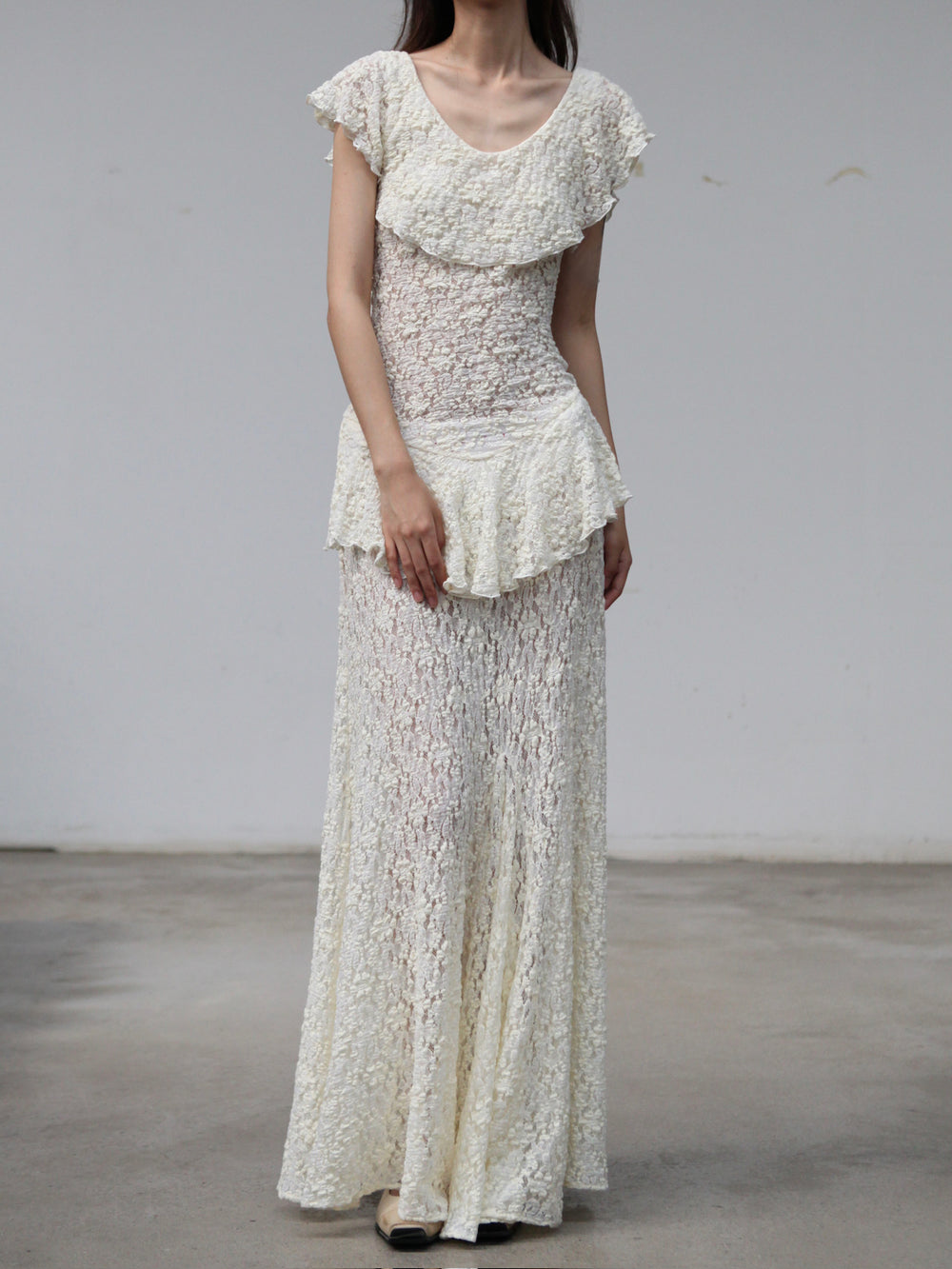 Maison Yiy Collared Ruffle Dress MY-MY26SC08-1-Ivory