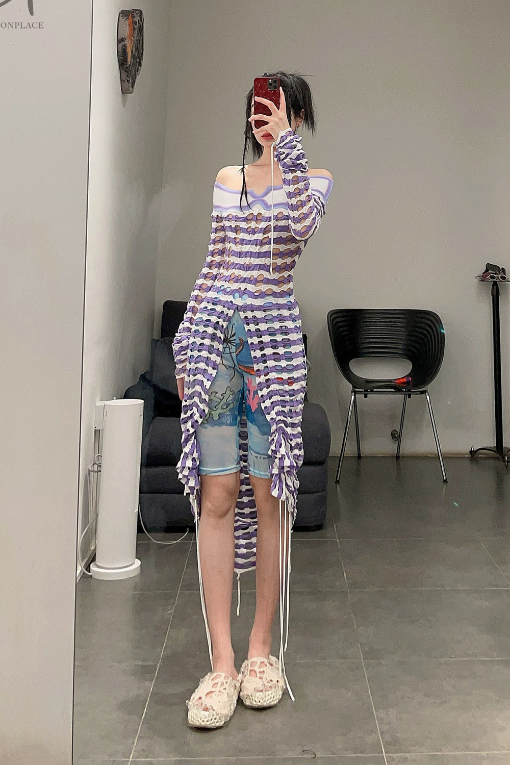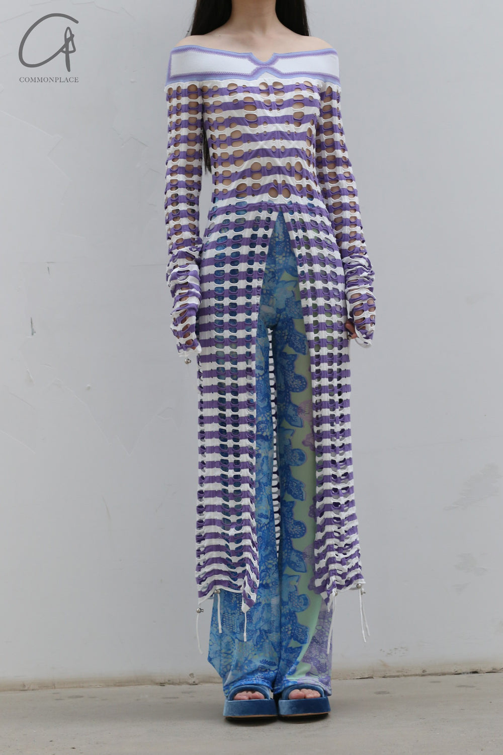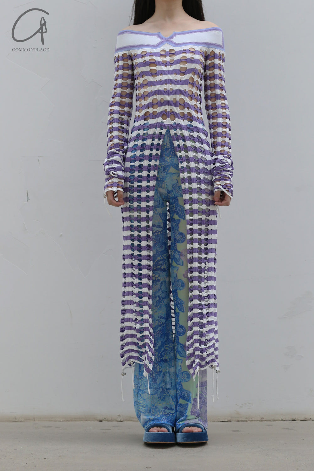 NAN KNITS drawing rope holy -eye collar dress (inner with) 22051709 purple