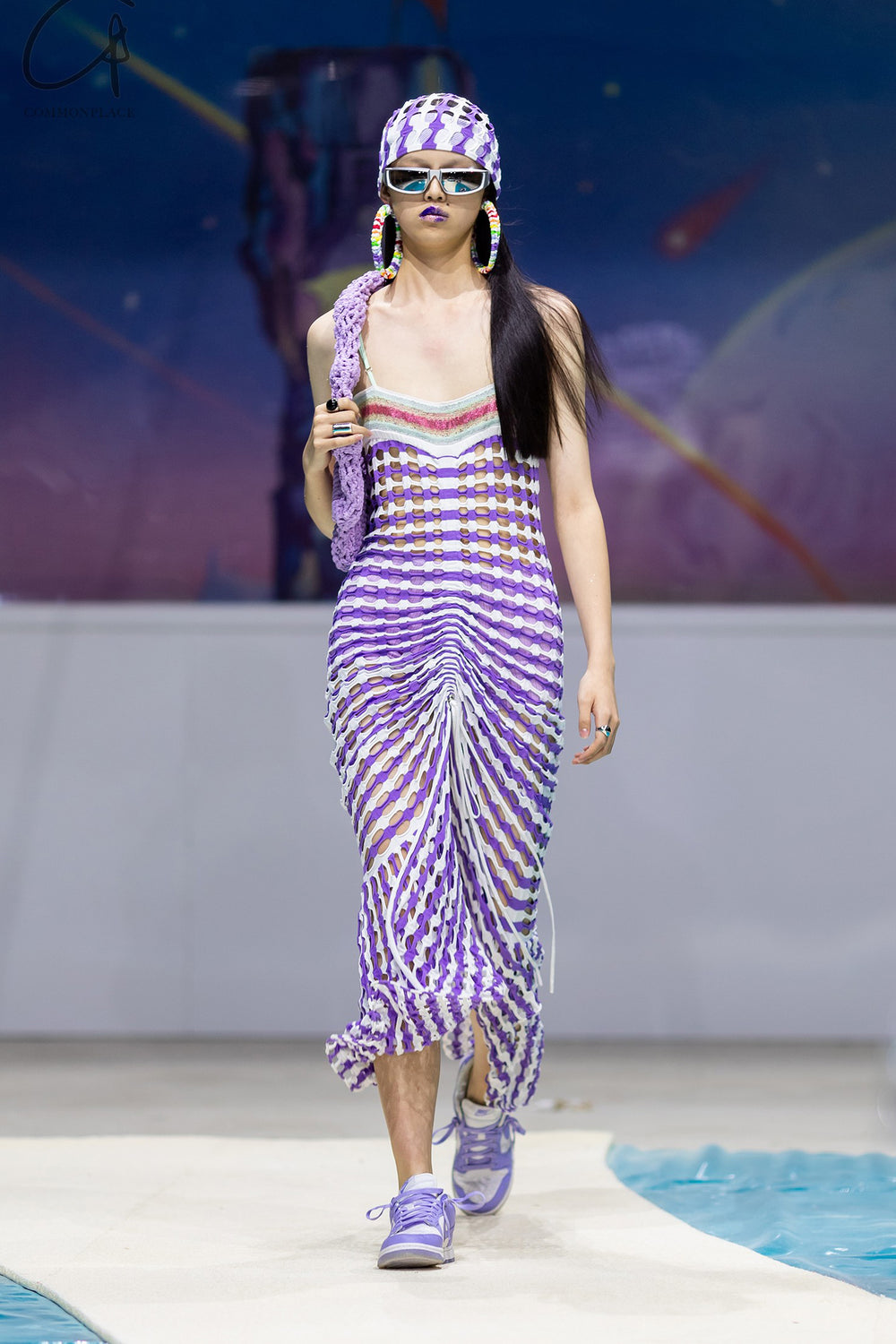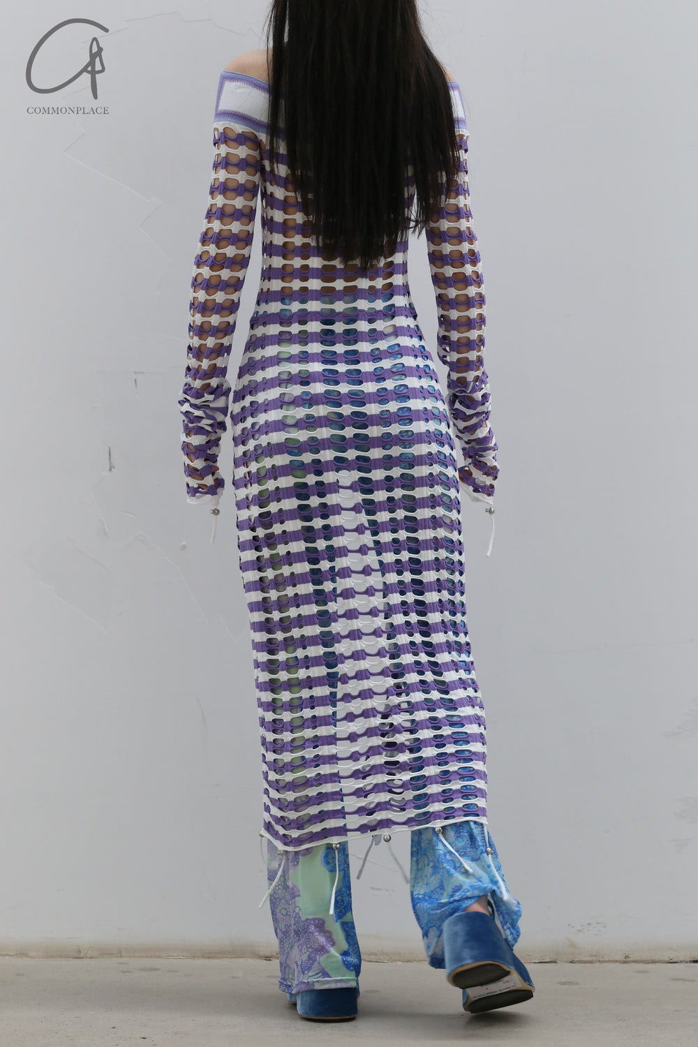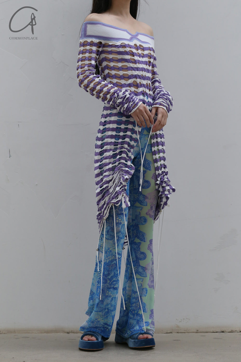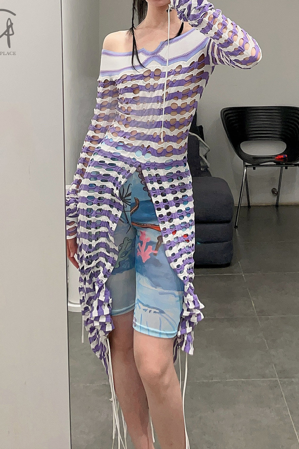 NAN KNITS drawing rope holy -eye collar dress (inner with) 22051709 purple