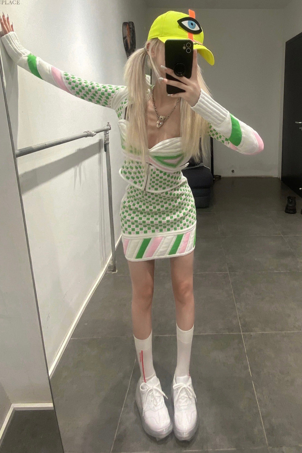 NAN KNITS mosaic jacket 22011033 green