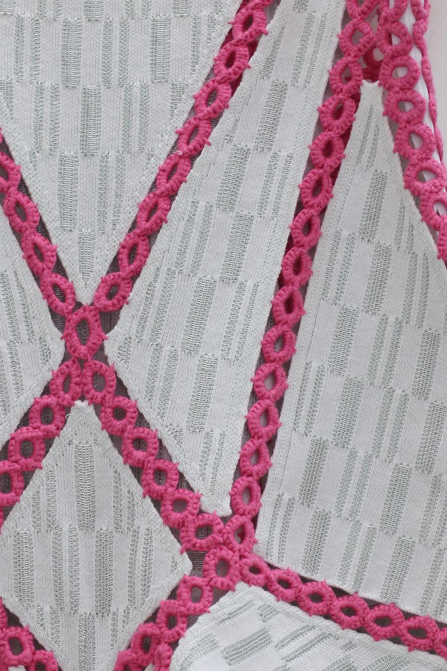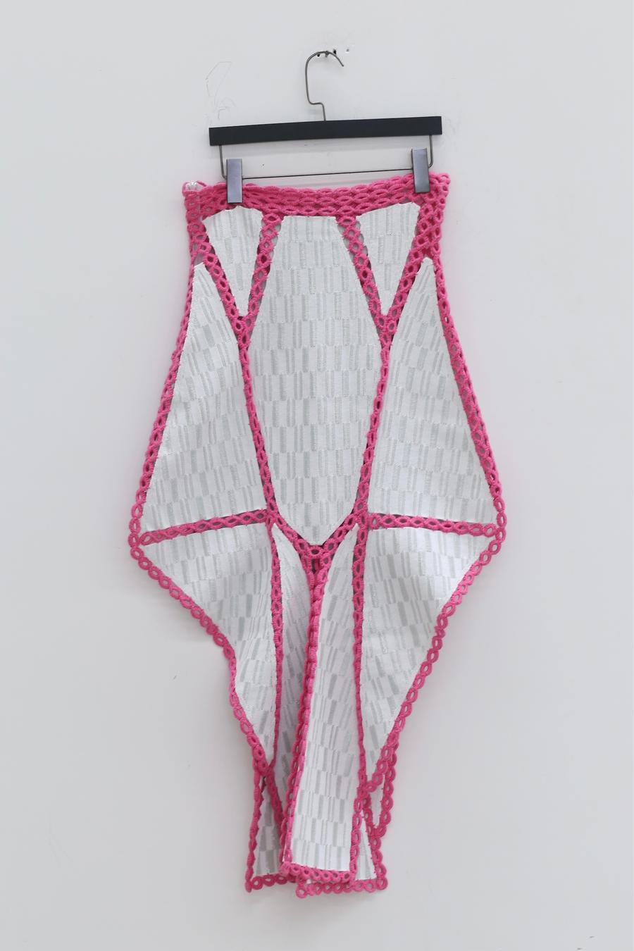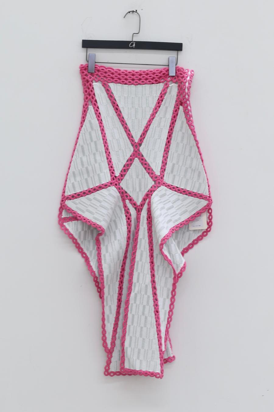 NAN KNITS Weave Check Hook Panel Skirt 21021909 White