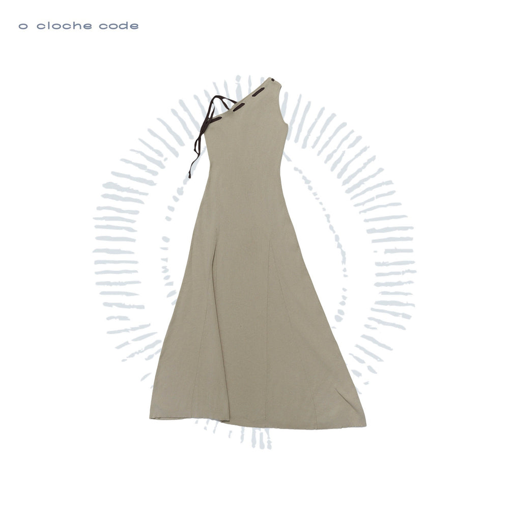 o cloche code 26SS drawstring off-shoulder maxi dress OCC-OH26SQ006P-DLH PEA pea green/grey