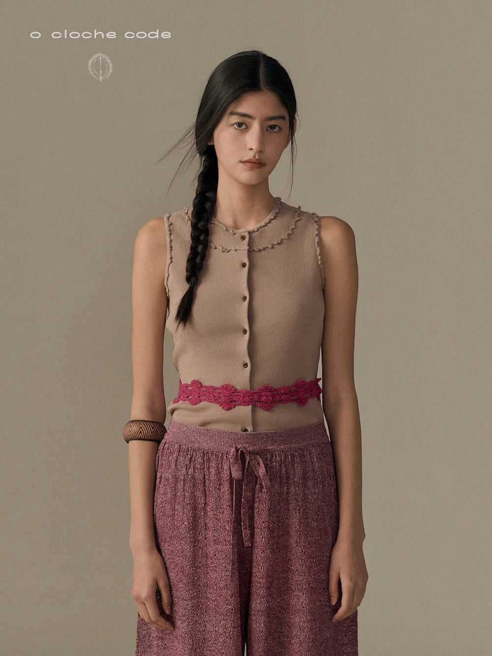 o cloche code 26SS Hollow-out drawstring wide-leg pants OCC-OH26SP028-SHF MAPLE Deep red maple