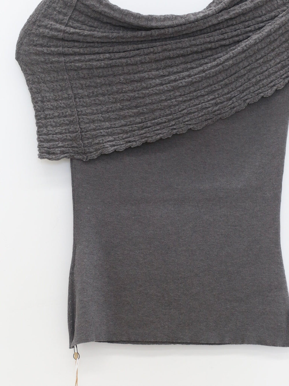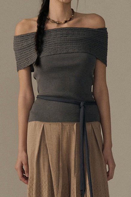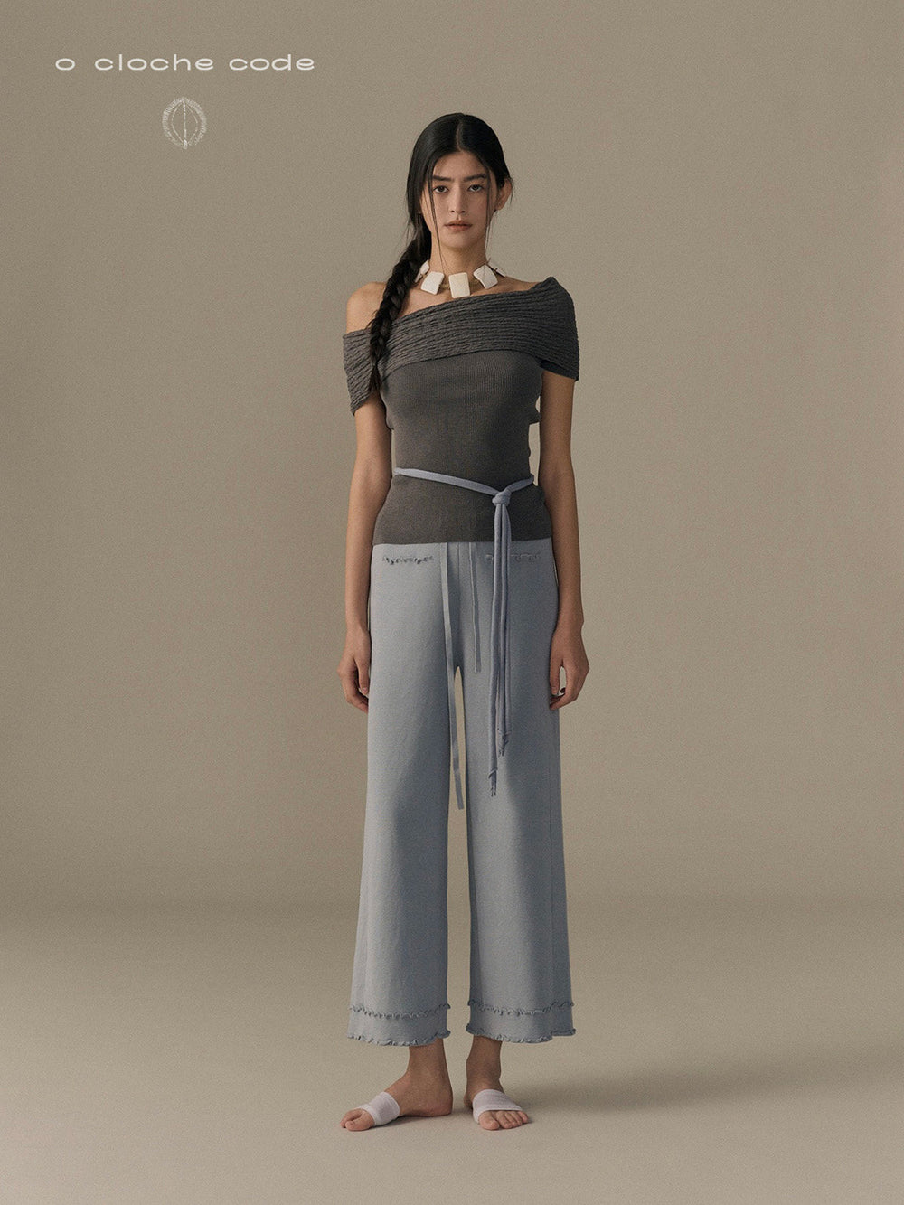 o cloche code 26SS Thin knit off-shoulder top OCC-OH26ST042S-SMH (STONE Graphite Grey)