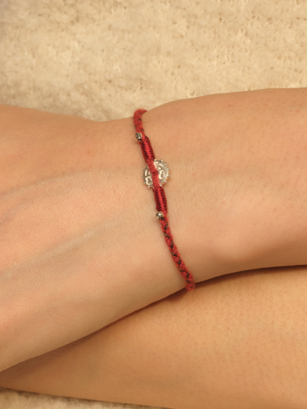 SALE E PEPE Sterling Silver Disc Red String Bracelet SEP-SP05A14-HY Red/Silver