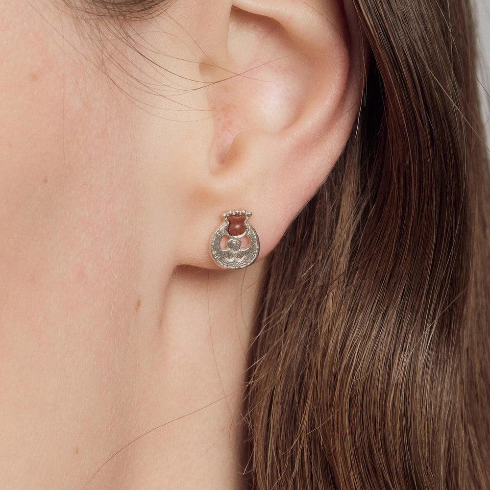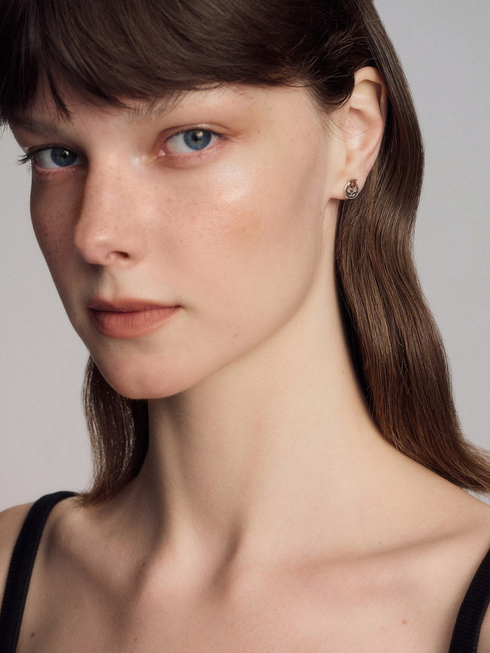 SALE E PEPE Sterling Silver Pebble Toasting Earrings SEP-SP05E04-YH Silver/Red