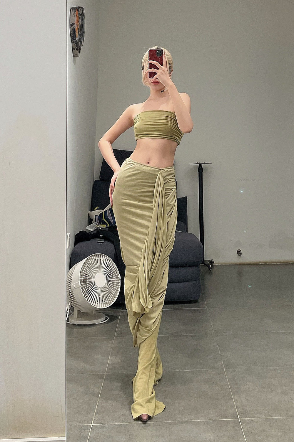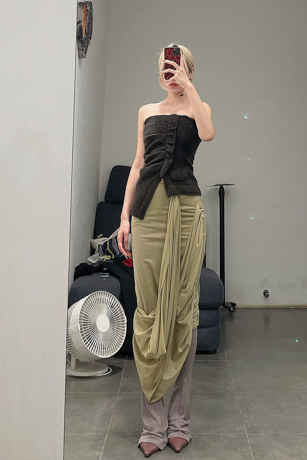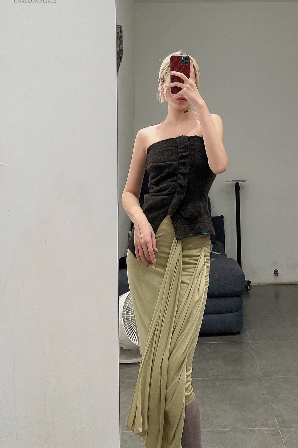Un Morceau Knit Wrap Cut Skirt AW22 UM222XZ15 Green PUM32