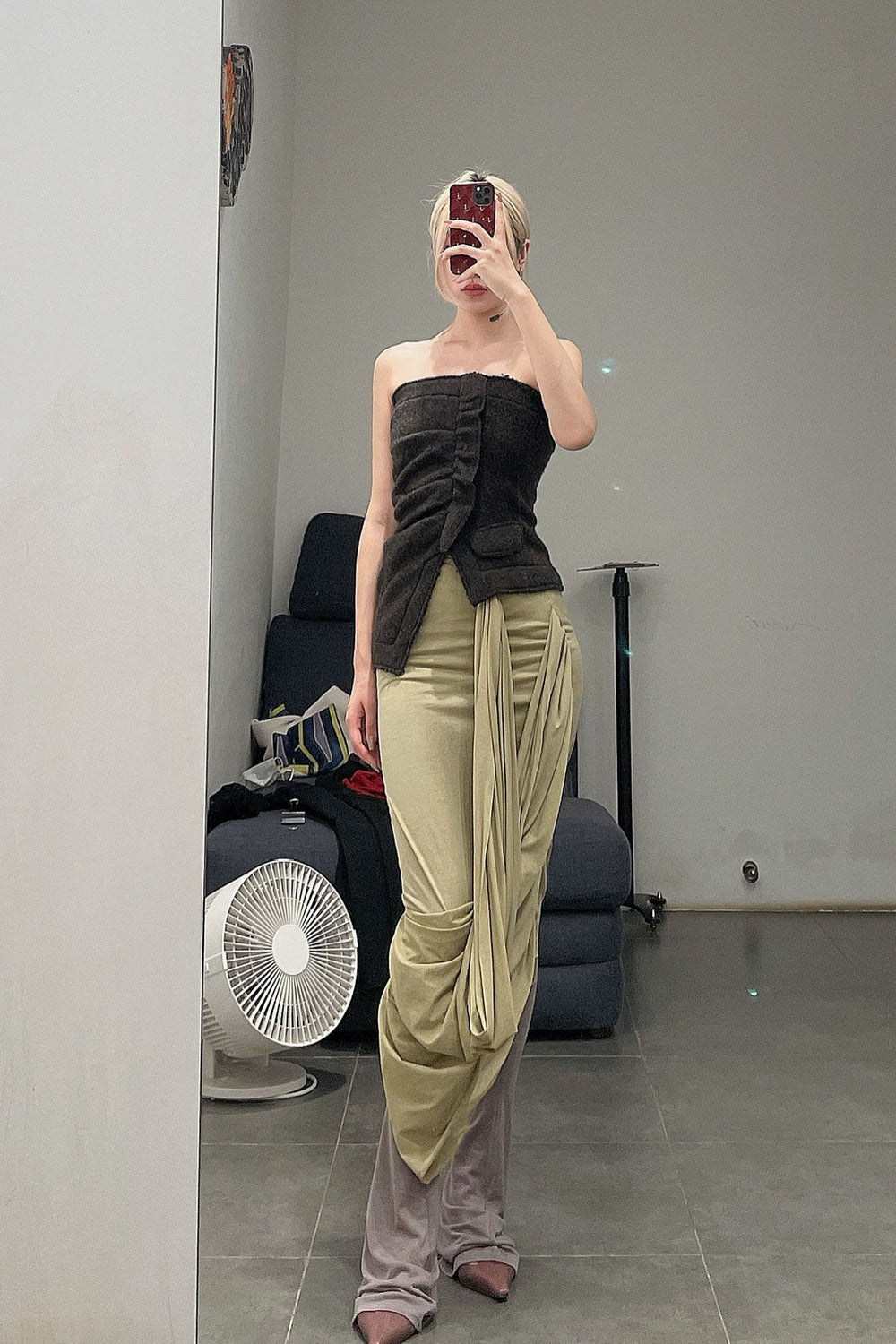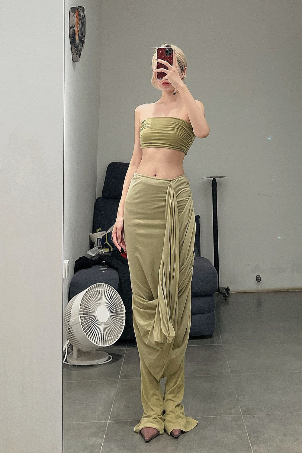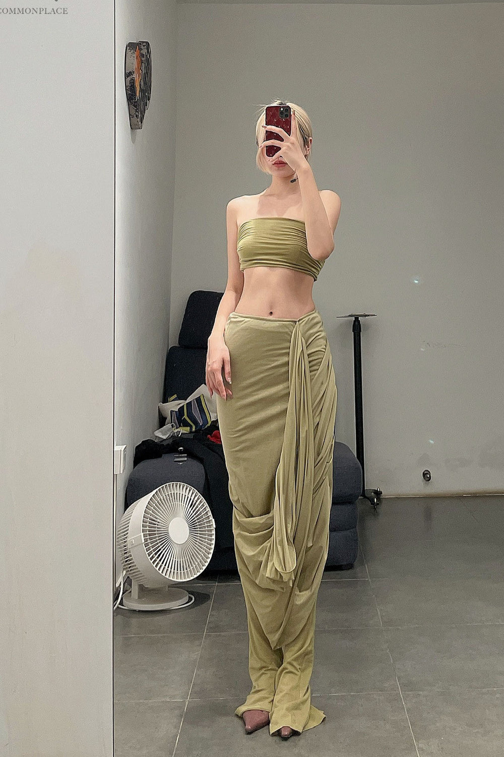 Un Morceau Knit Wrap Cut Skirt AW22 UM222XZ15 Green PUM32