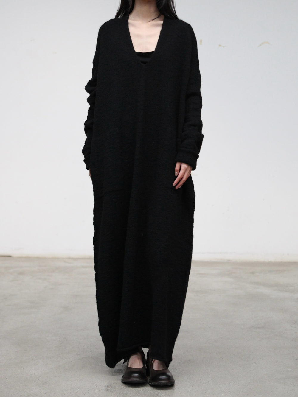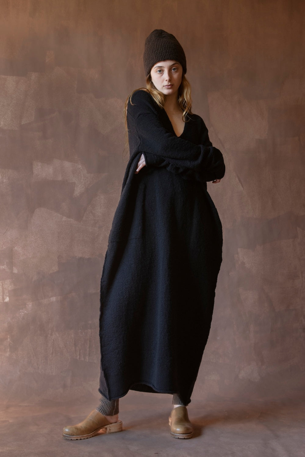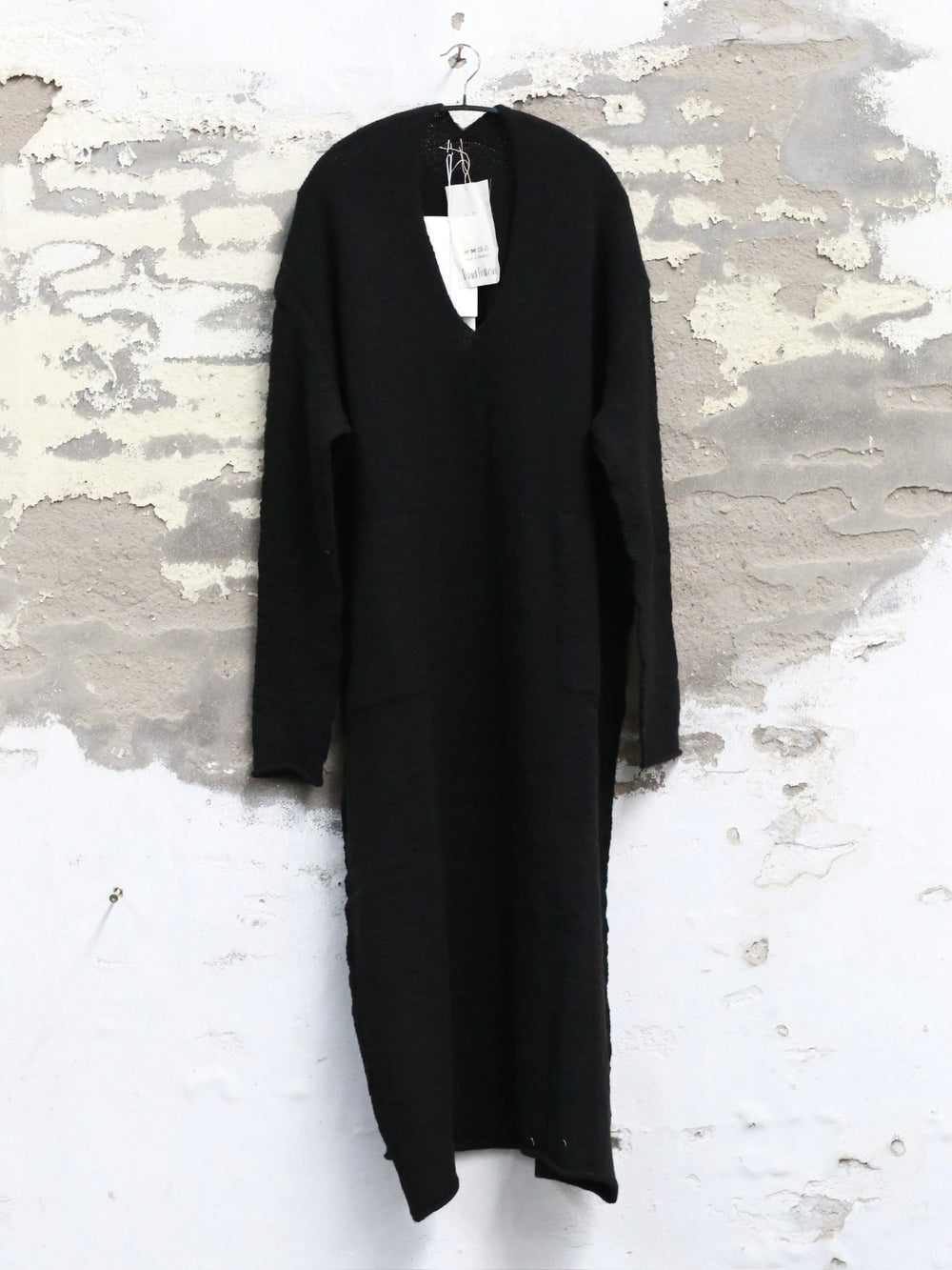 Daniel Andresen Fall/Winter 2025 Yak Wool Long V-Neck Dress DA-tapioca-black