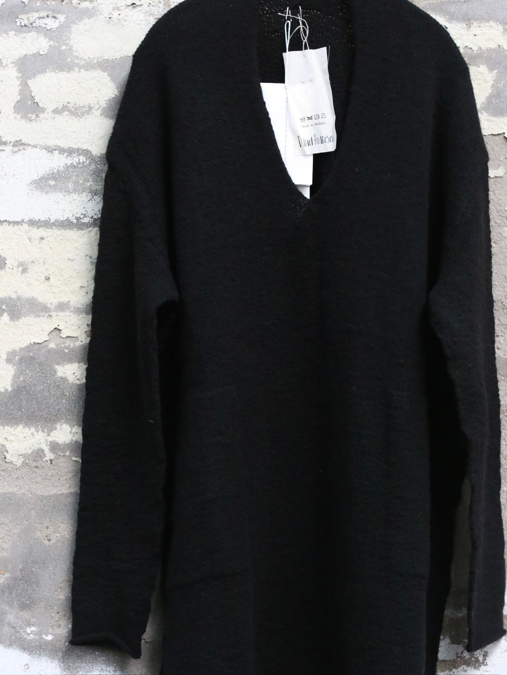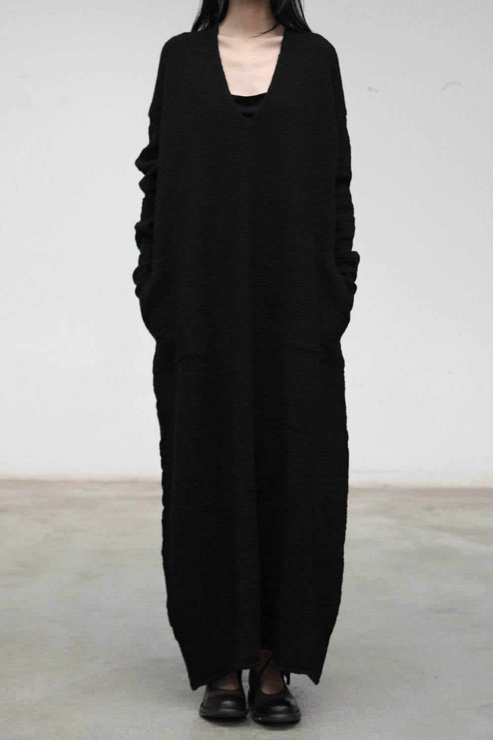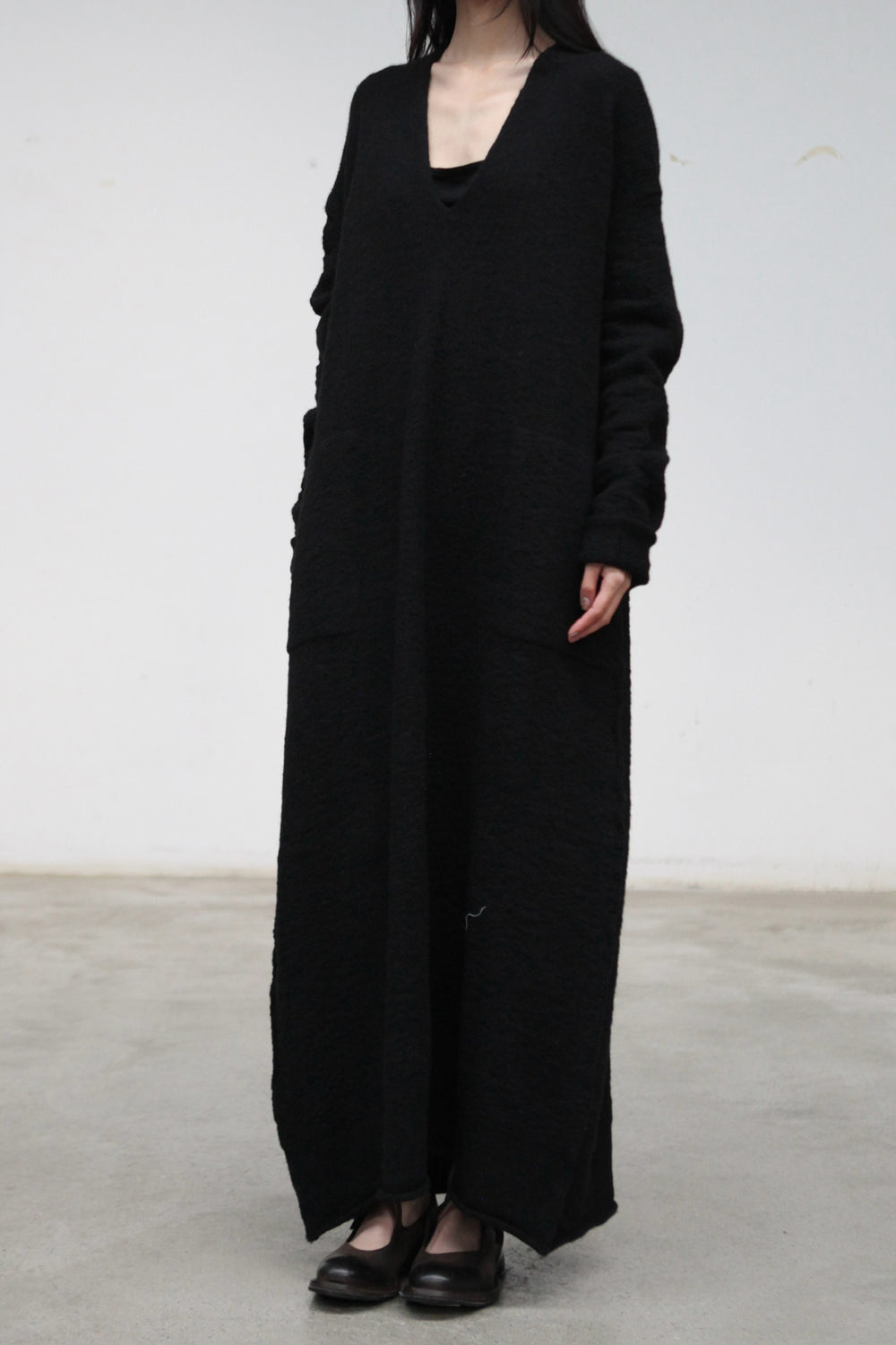 Daniel Andresen Fall/Winter 2025 Yak Wool Long V-Neck Dress DA-tapioca-black
