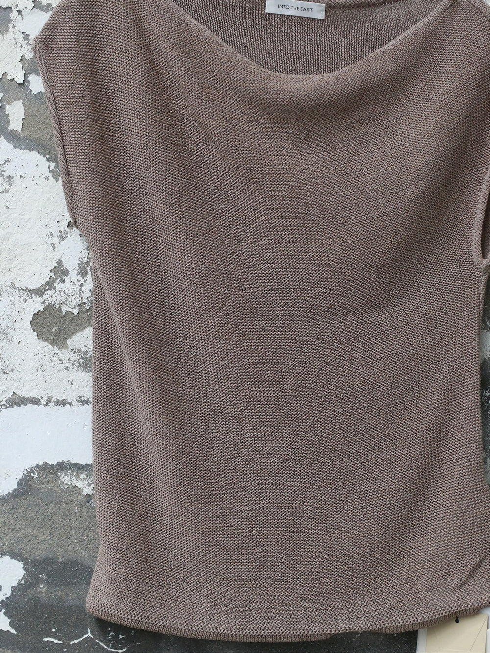 INTO THE EAST 25 Spring/Summer Black/Khaki Gray One-shoulder Drop Shoulder Knit Top ITE-E1DGSS006GY20KT-KQH Khaki Gray