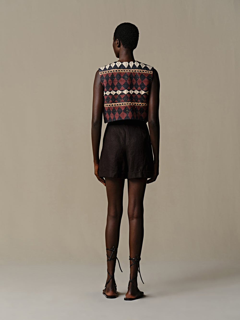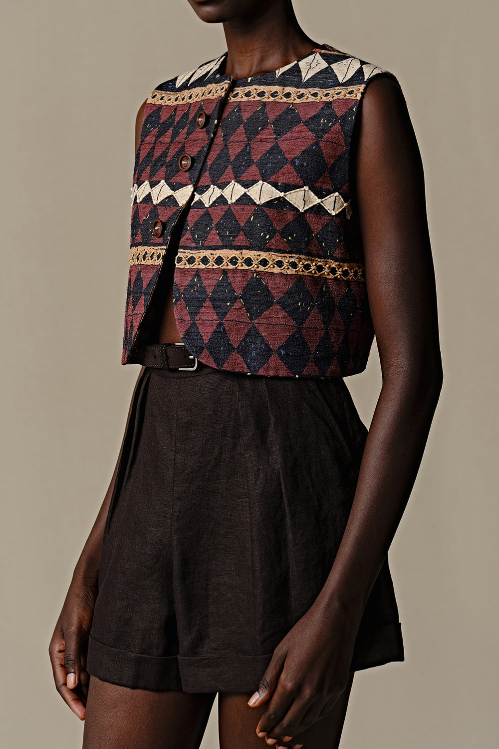 INTO THE EAST 25 Spring/Summer Round Neck Vest ITE-E1DGSS004BR23VE-HZ Reddish Brown