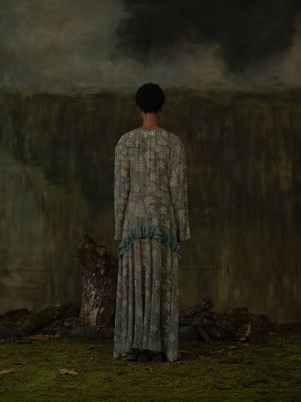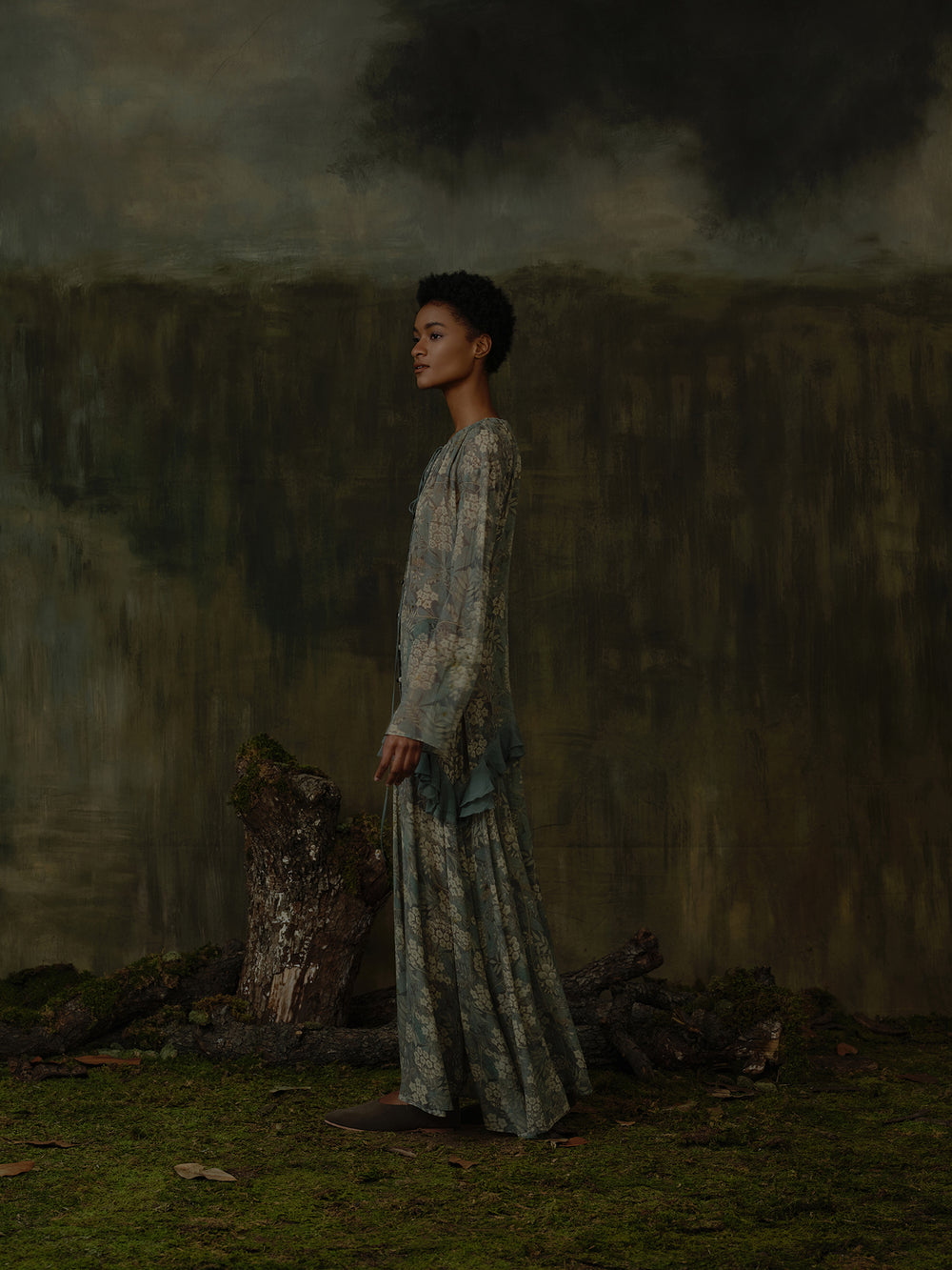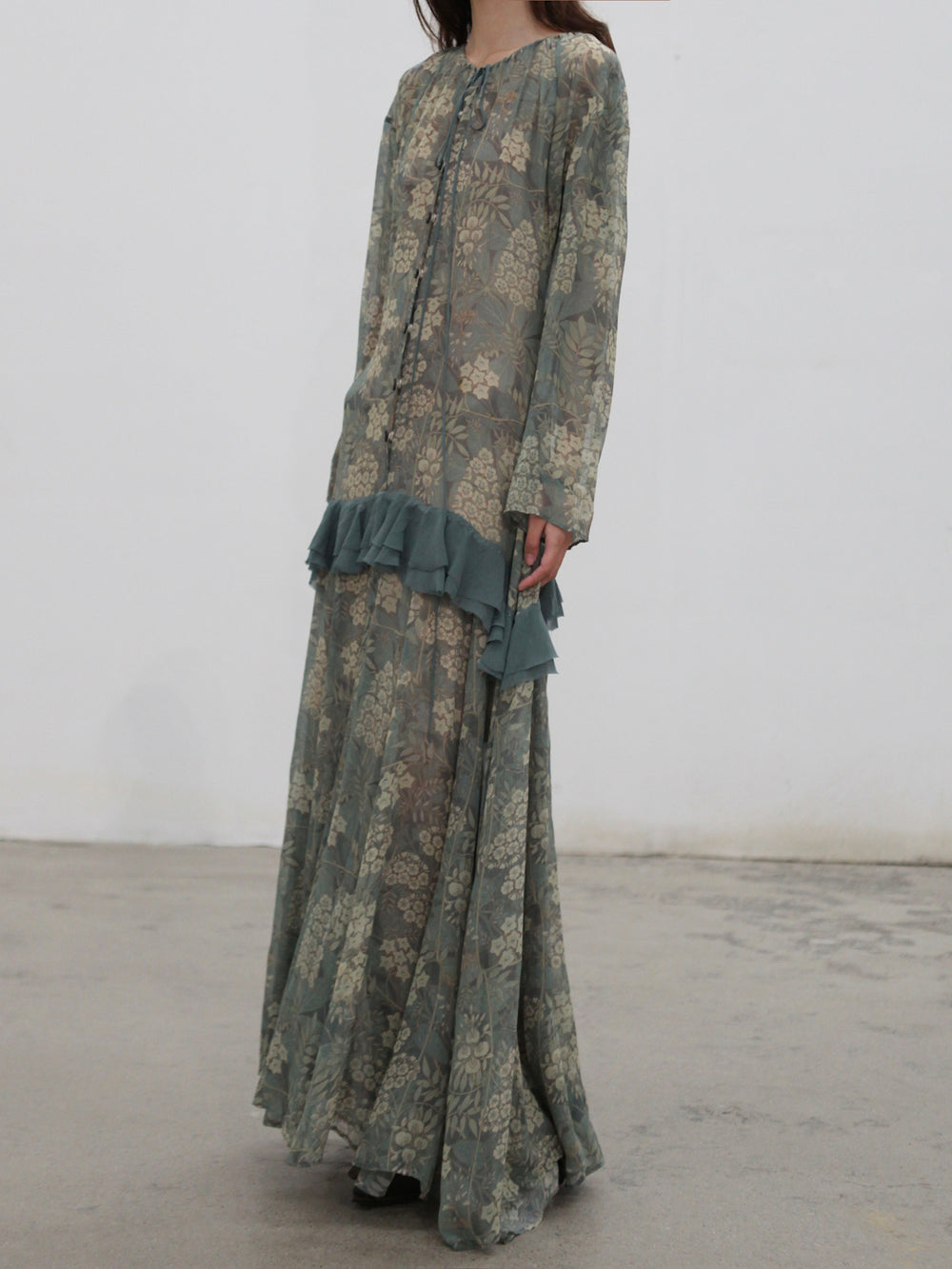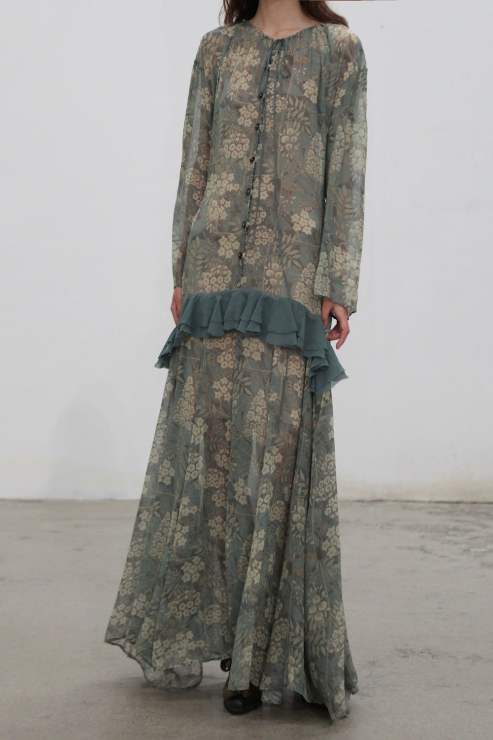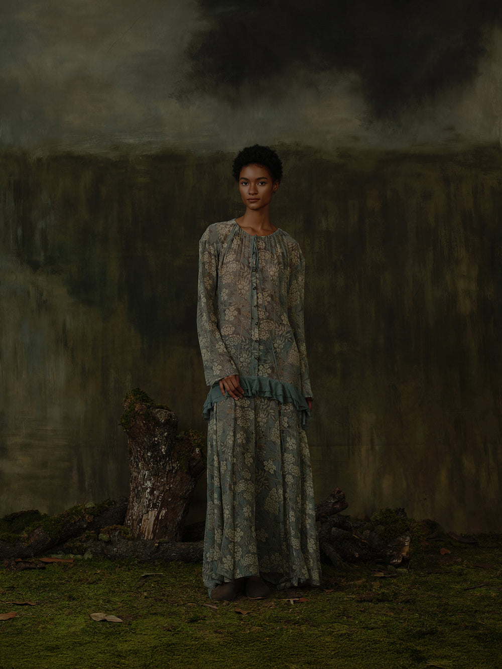 Mutedance 25 Autumn/Winter Printed Long Sleeve Dress MD-MD25FW27-green (MD25FW26)