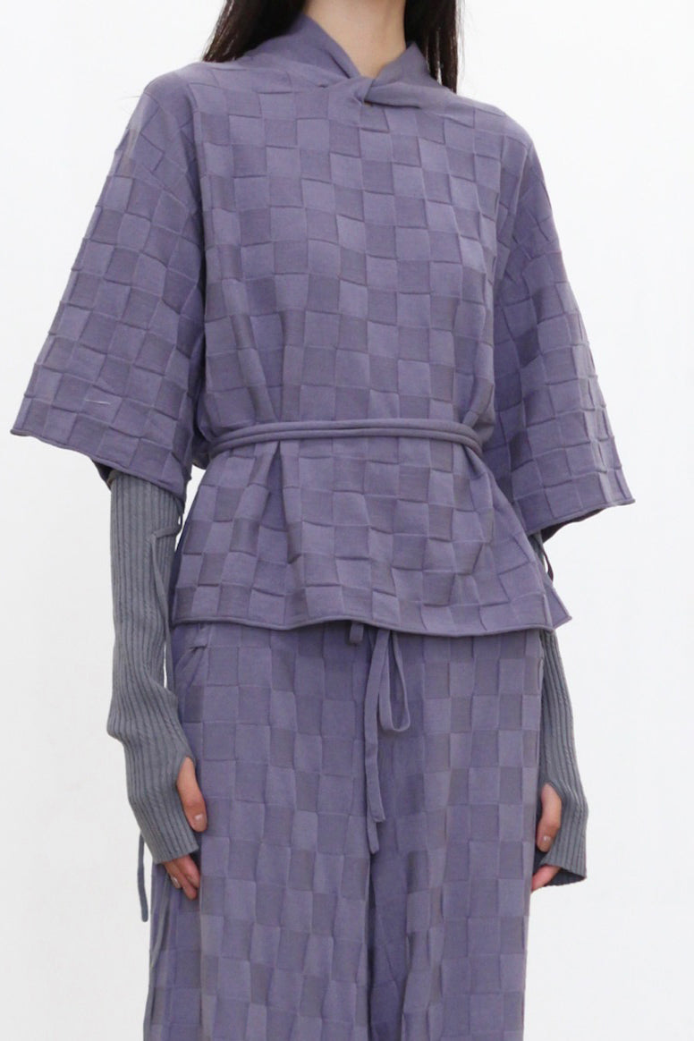 o cloche code 25 Fall/Winter checkered knotted top/wide-leg trousers Merino wool knit OCC-OH01T865-FGL French blue top (OH01P866 OH01T865)