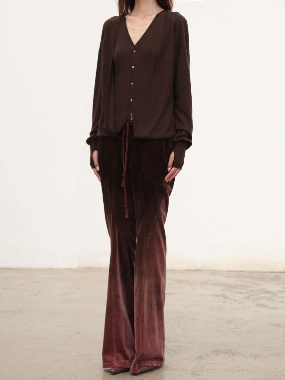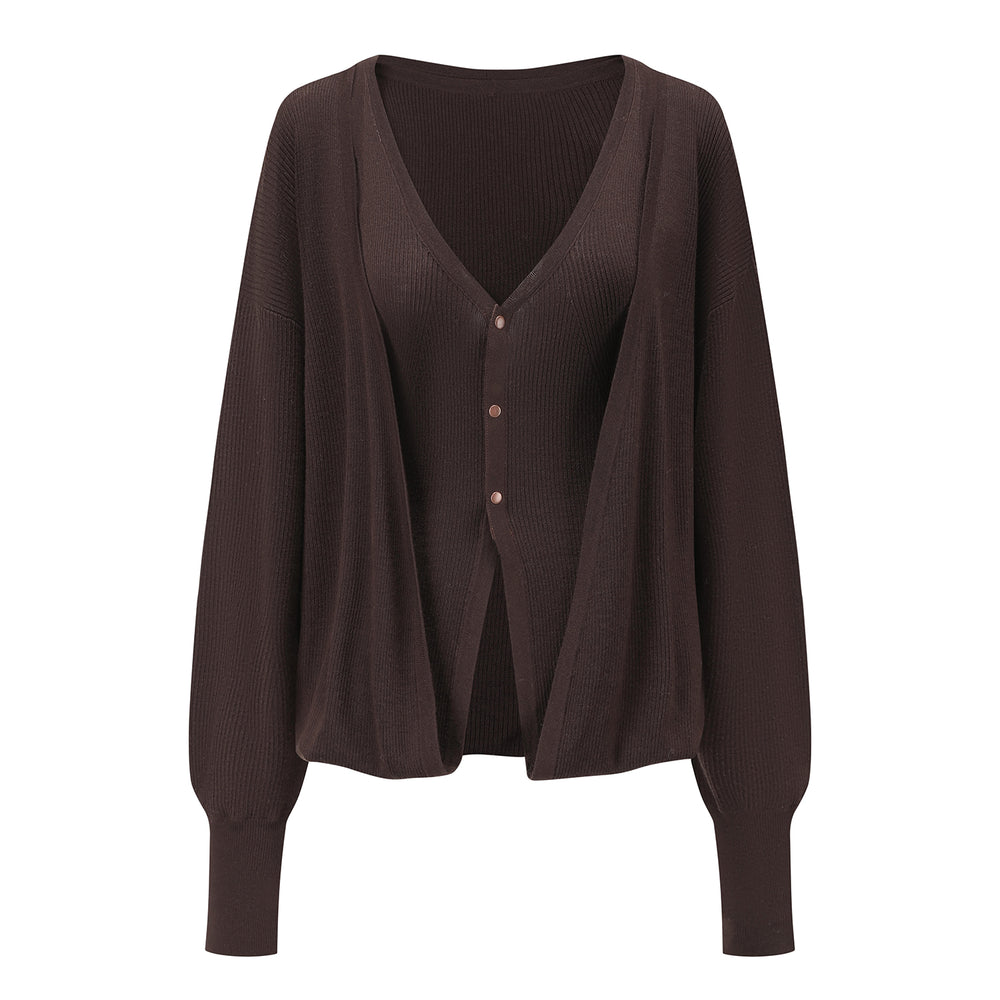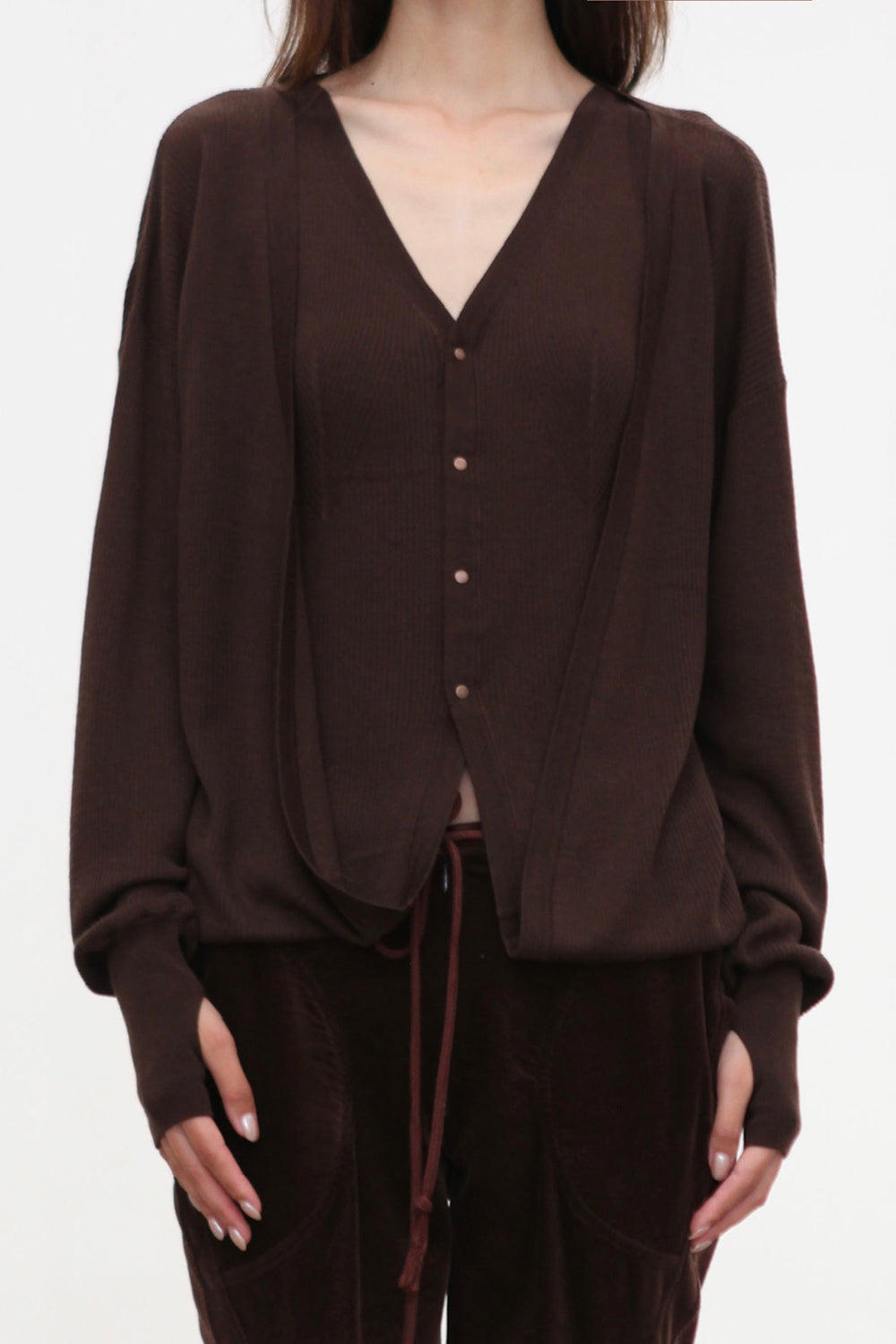 OUDE WAAG 25 Fall/Winter Faux Two-Piece Wool Knit Cardigan OW-OW-25AW-KT16W1BR440-KF Coffee Brown