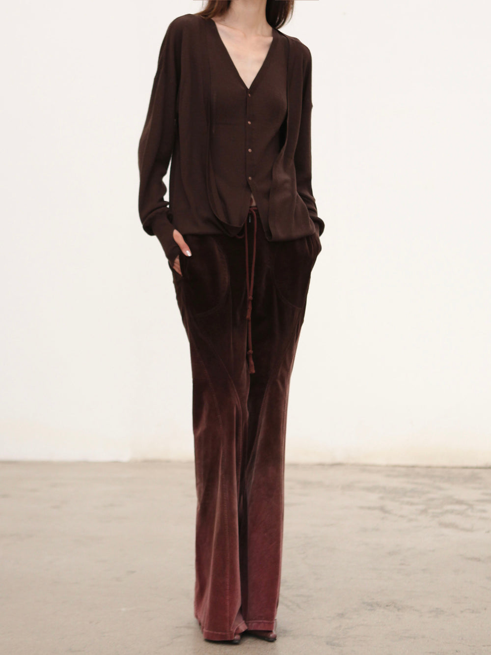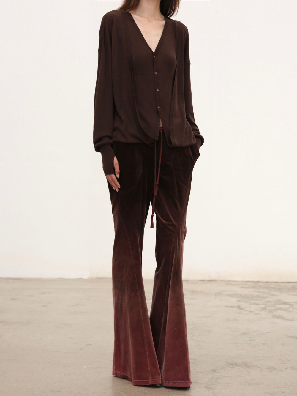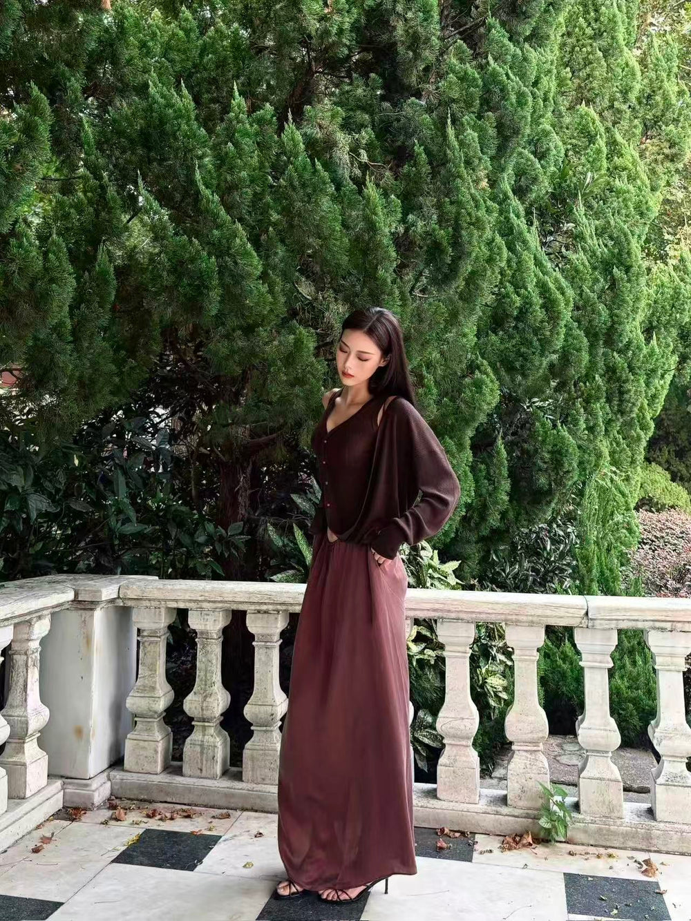 OUDE WAAG 25 Fall/Winter Faux Two-Piece Wool Knit Cardigan OW-OW-25AW-KT16W1BR440-KF Coffee Brown